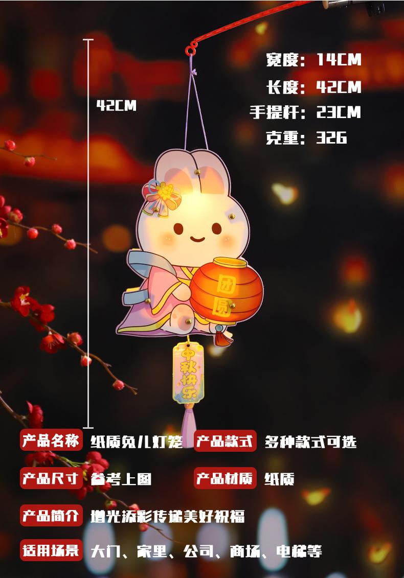 Cartoon Rabbit Paper Lantern H-Random Style, Cartoon Rabbit Paper Lantern H-[Green Chang'e Rabbit Fan], Cartoo...