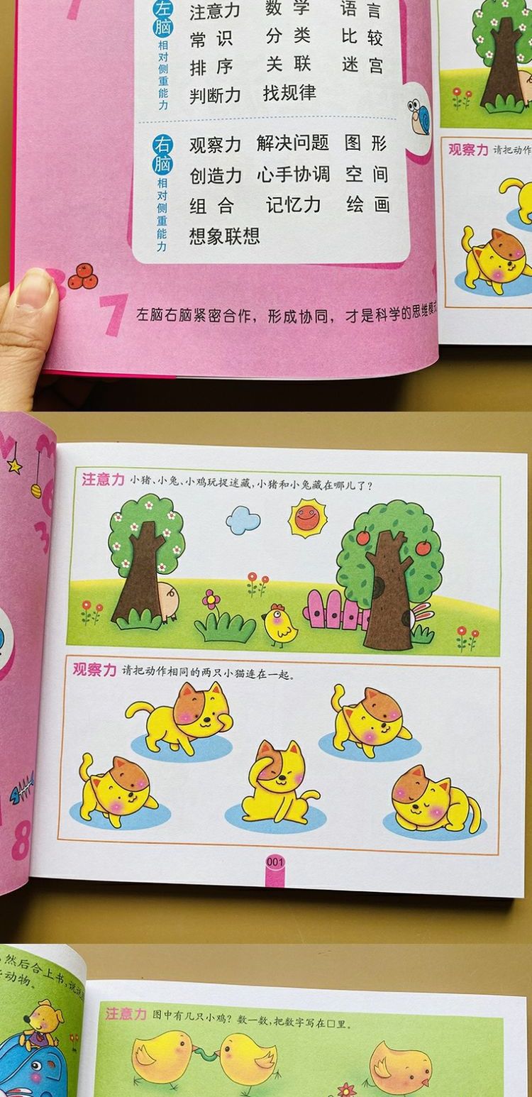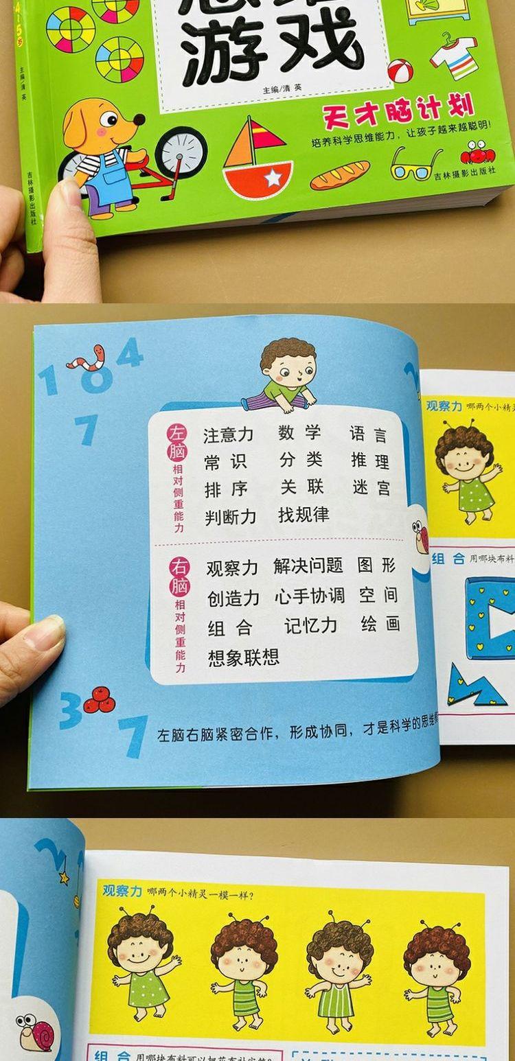 Libro infantil 365 juegos de pensamiento Desarrollo cerebral integral Entrenamiento del pensamiento Rompecabezas para niños de 2, 3, 4, 5 y 6 años Iluminación