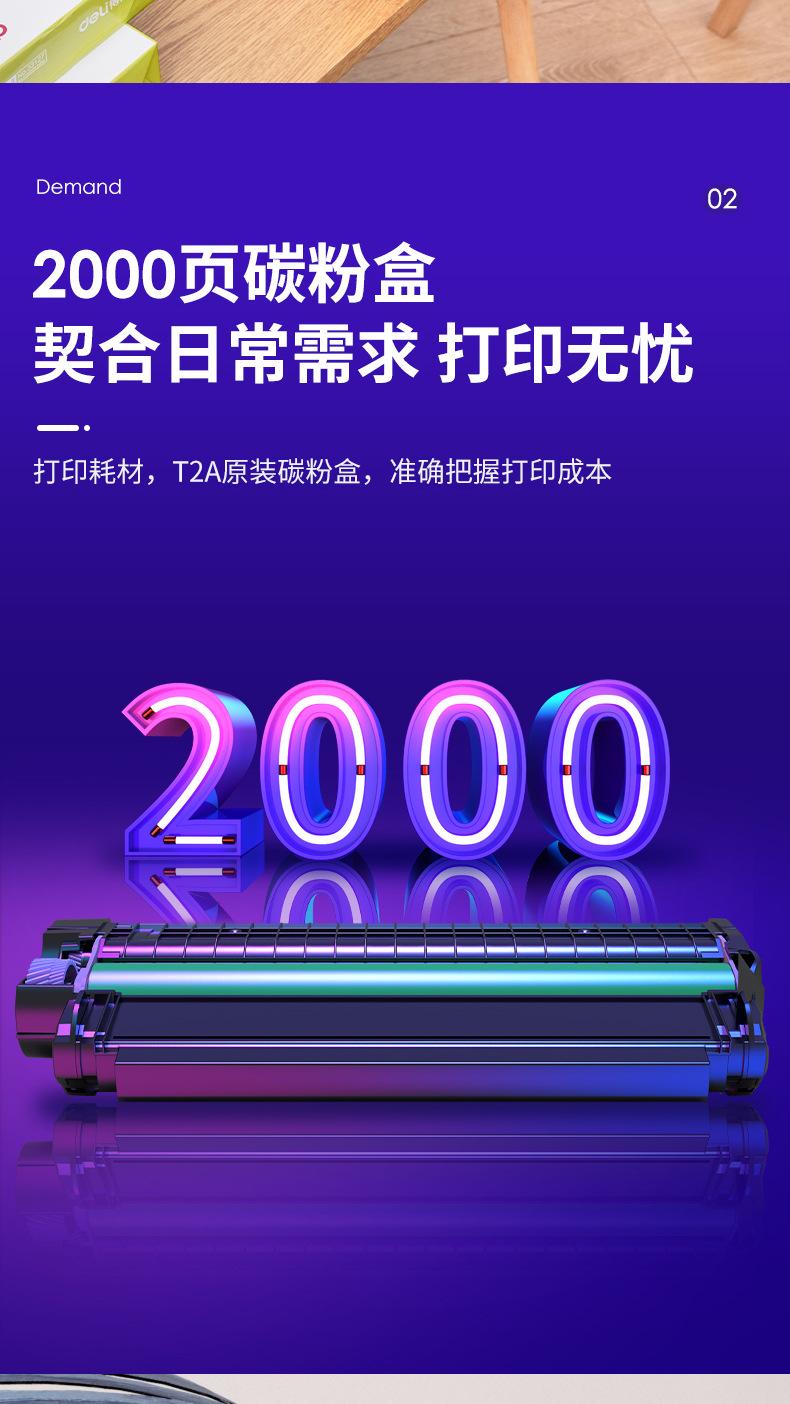 Cartucho de tóner negro Deli T2A, cartucho de tóner original, paquete individual, 2000 páginas (Compatible con deli 2000