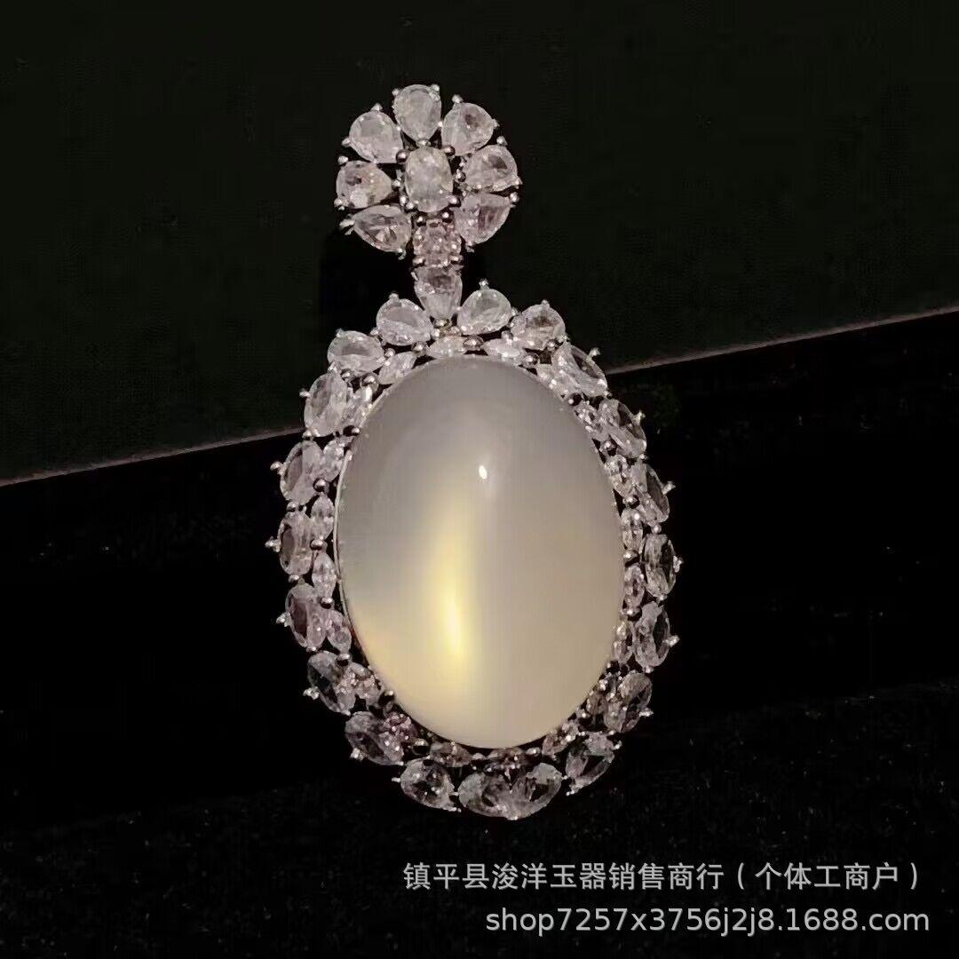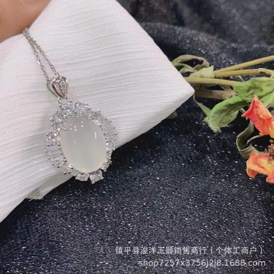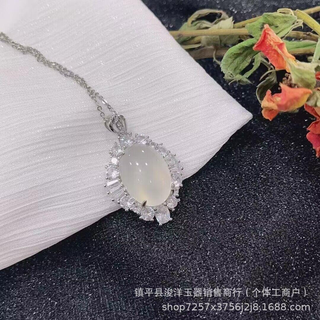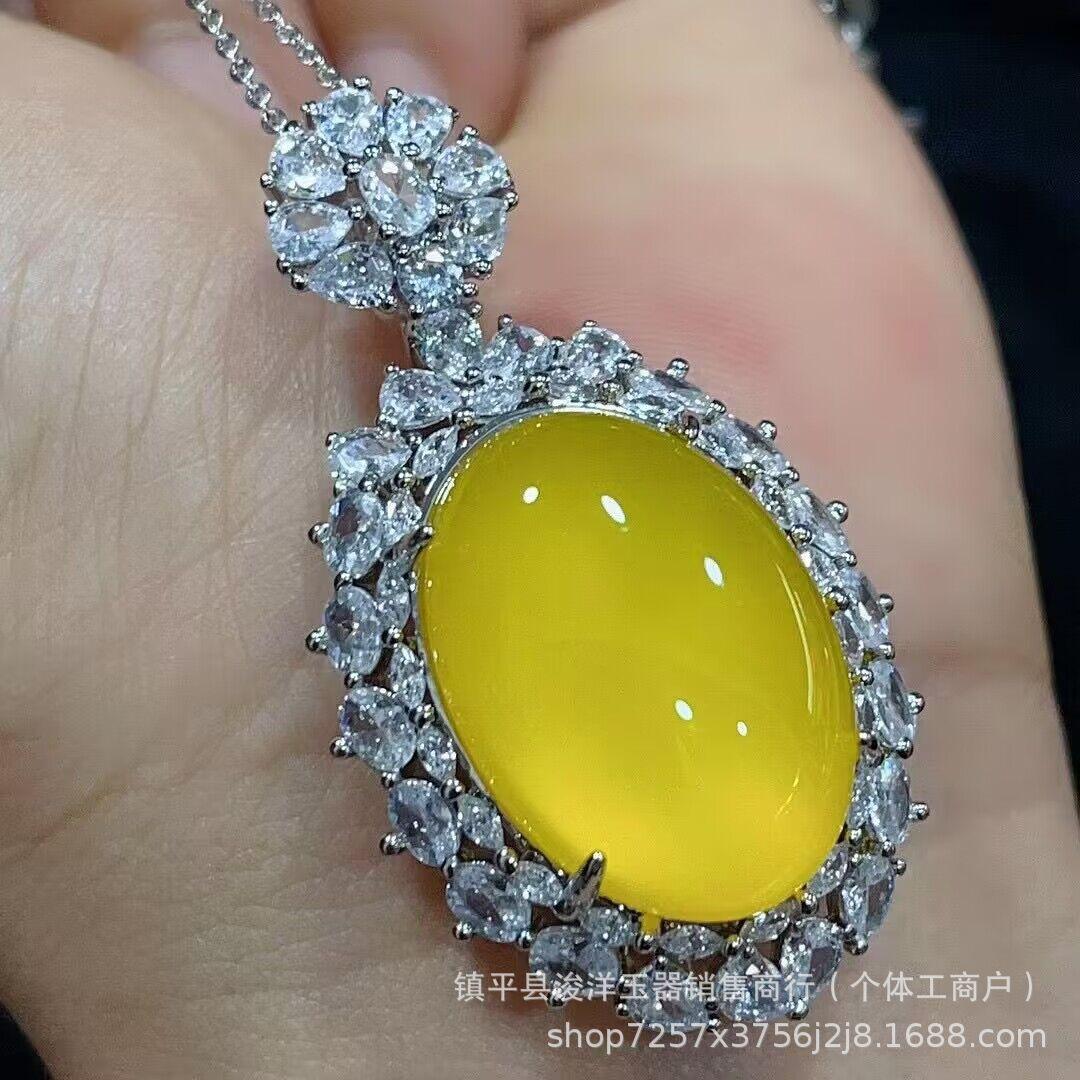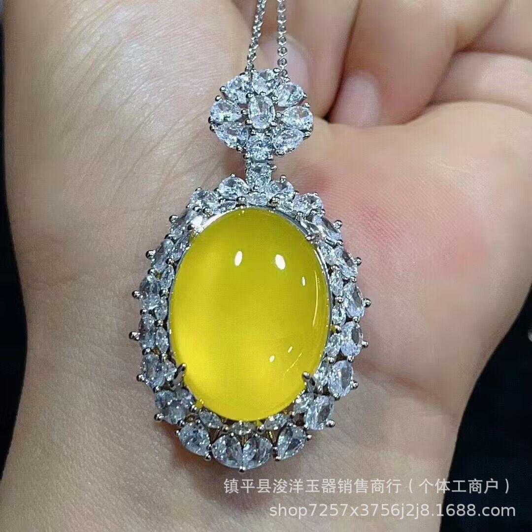 Colgante de huevo de paloma de calcedonia amarilla bañado en plata al por mayor, ágata de hielo blanca, collar de jade para mujer, suministro en vivo