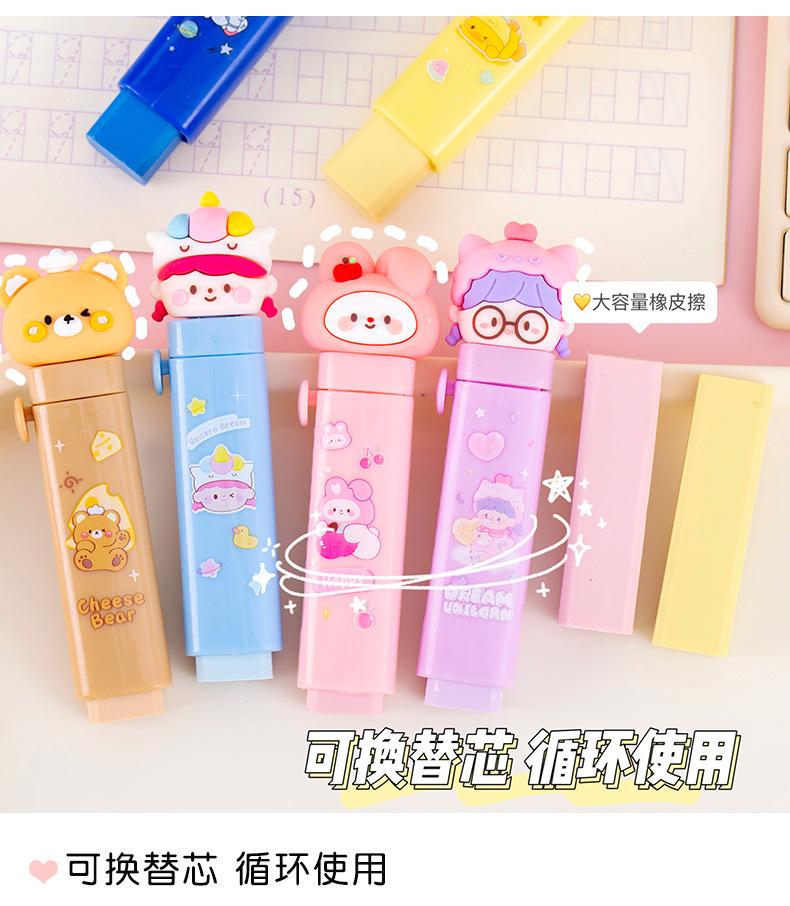 Nueva goma de borrar retráctil creativa para niños, linda goma de borrar para lápiz, estudiantes aprenden a escribir, corrección de errores, goma de borrar push-pull