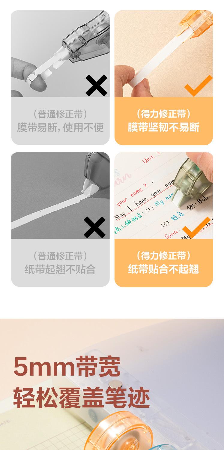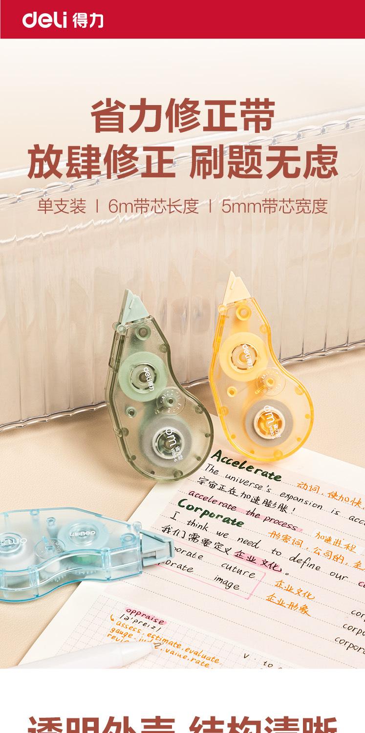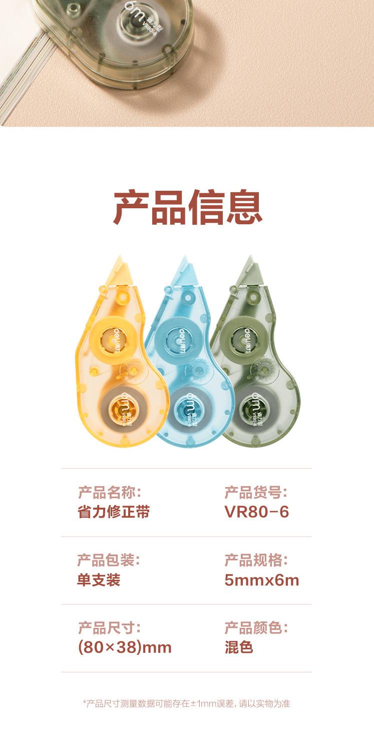 Deli VR80-6 Cinta Correctora de Ahorro de Trabajo_5mm*6m Cinta Correctora Gran Capacidad Cinta Correctora Estudiantil