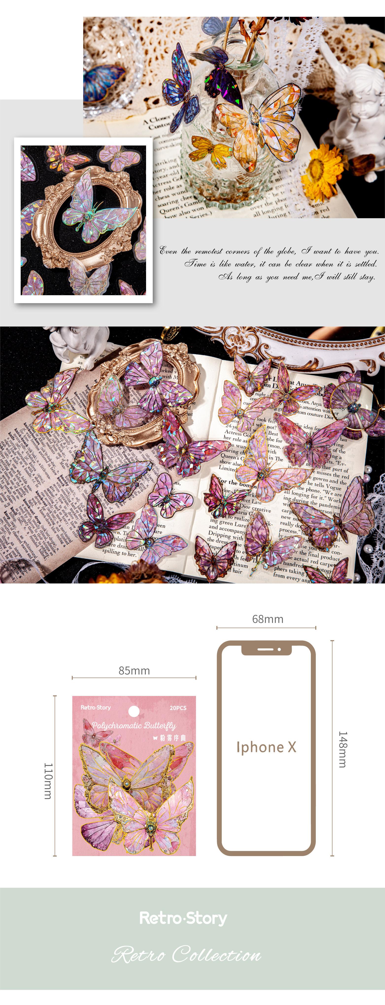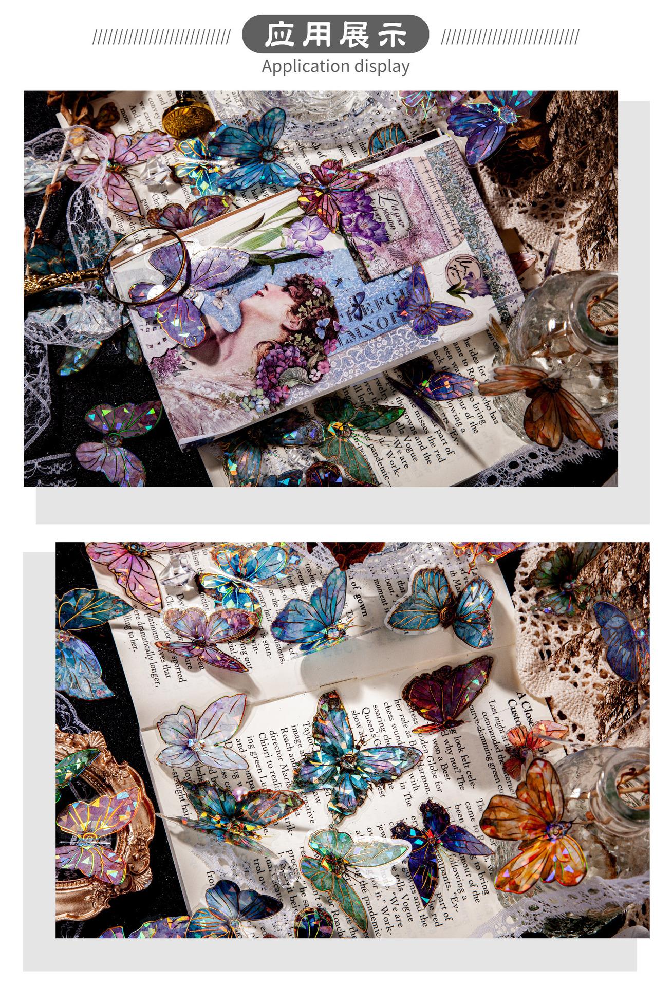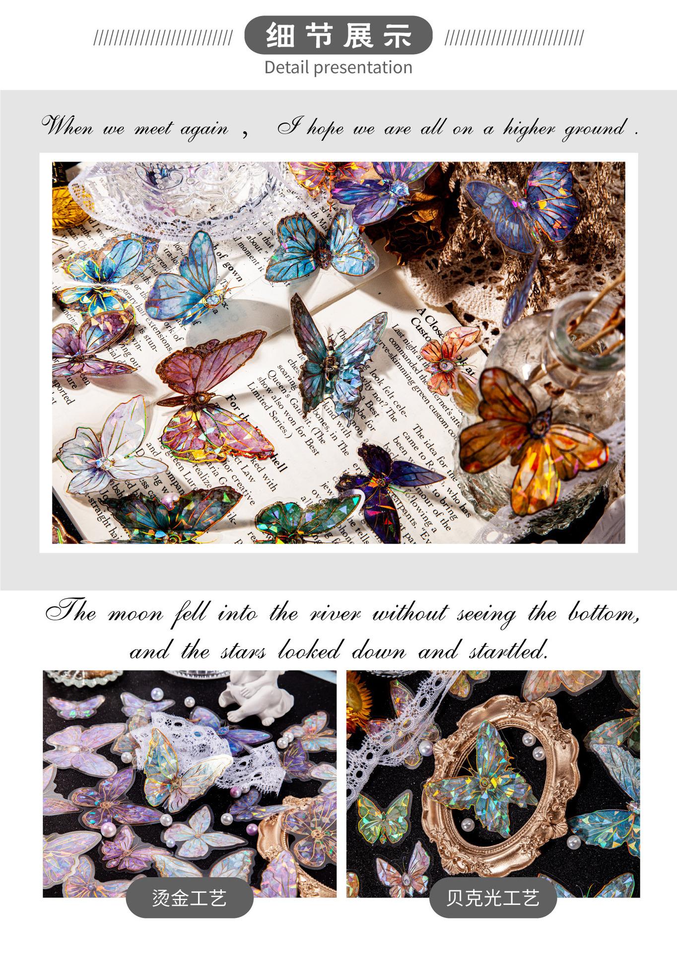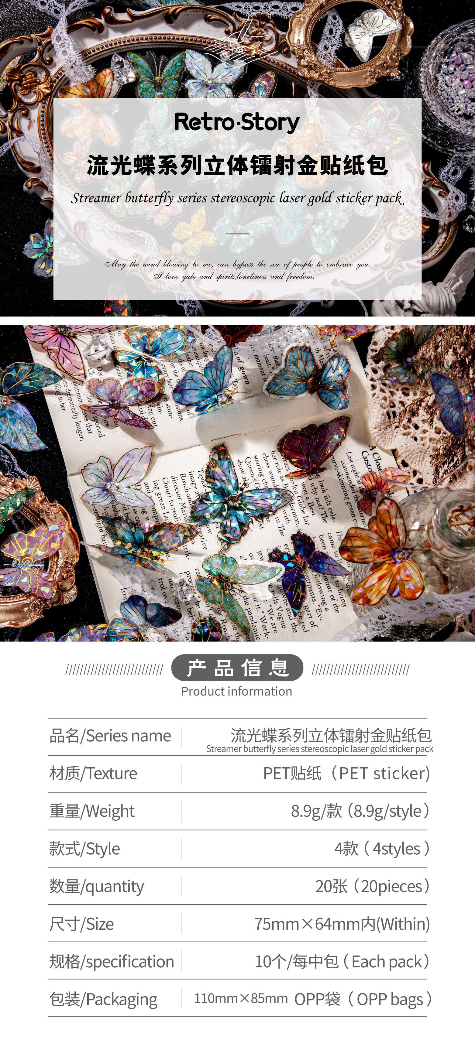 RetroStory streamer serie mariposa pegatinas PET doradas láser tridimensionales pegatinas creativas de material para decoración de cuentas de mano de mariposa