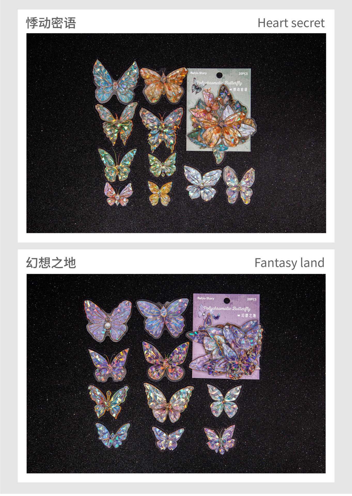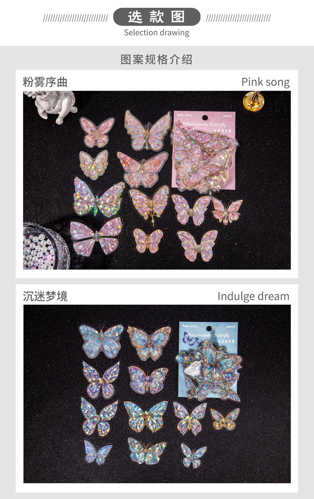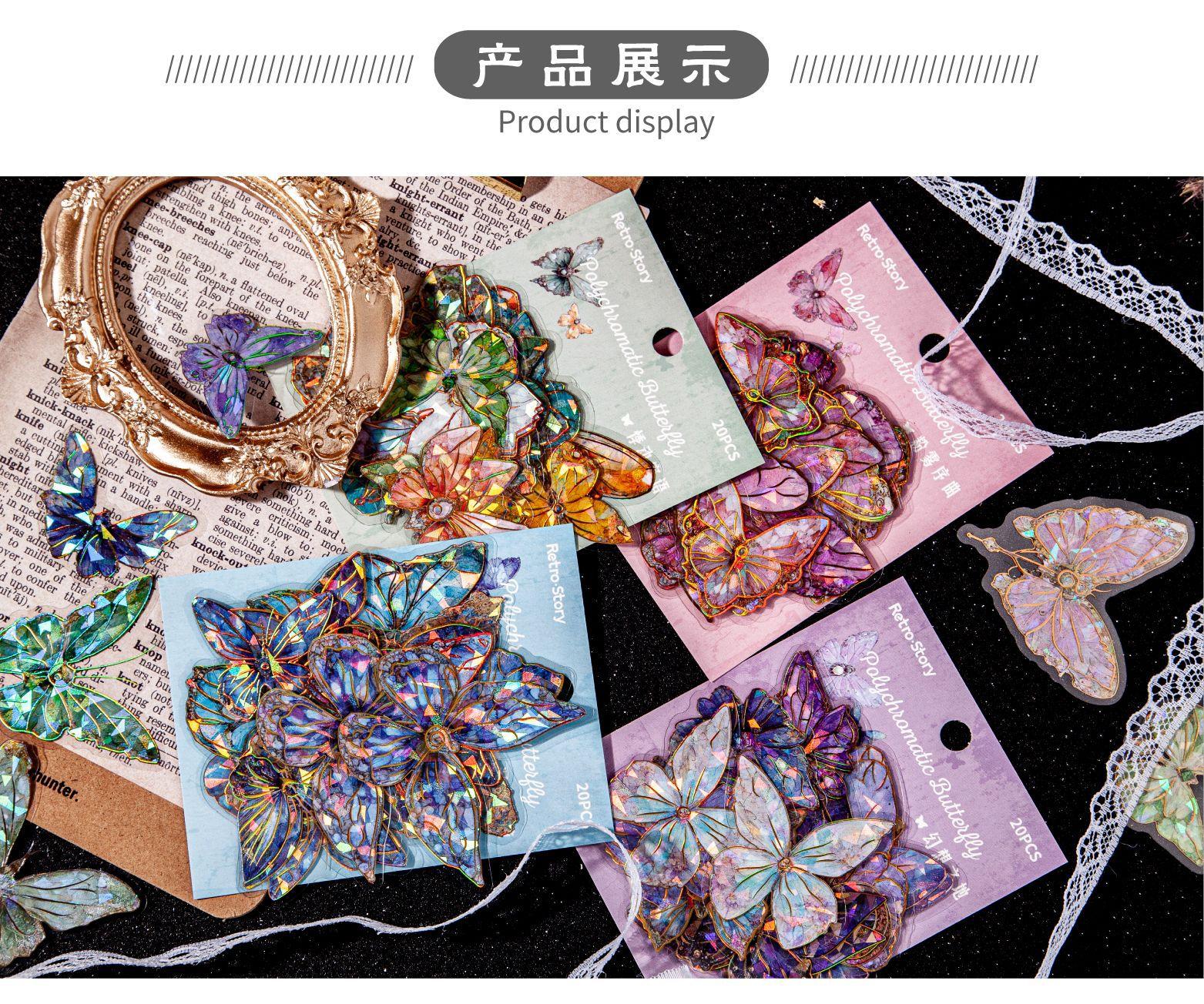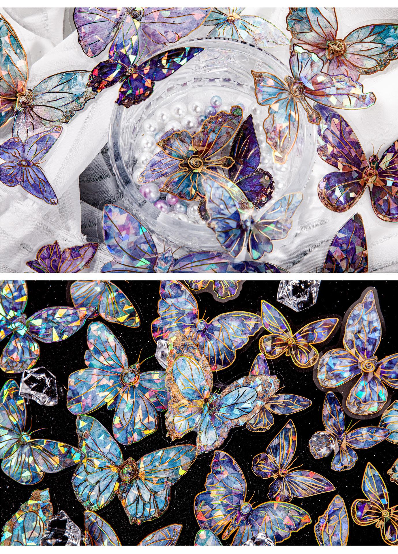 RetroStory streamer serie mariposa pegatinas PET doradas láser tridimensionales pegatinas creativas de material para decoración de cuentas de mano de mariposa