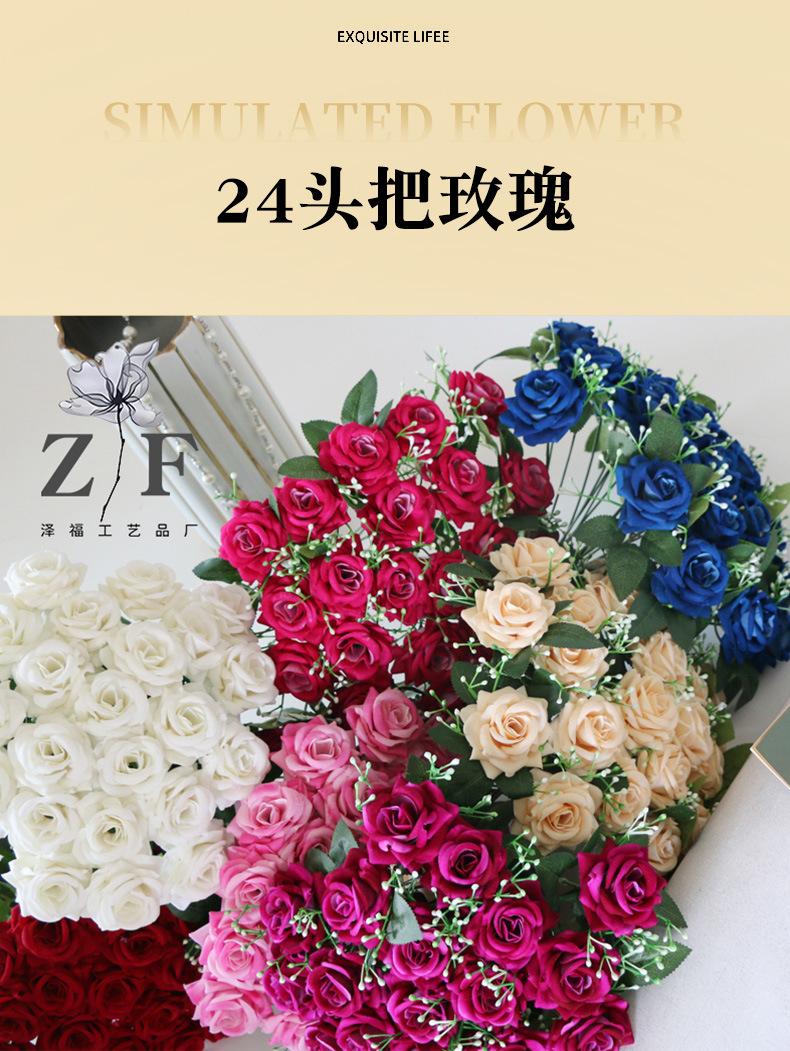 Ramo de 24 rosas transfronterizo, flores decorativas para el hogar, accesorios de fotografía, ramo de rosas rojas, flores de simulación al por mayor