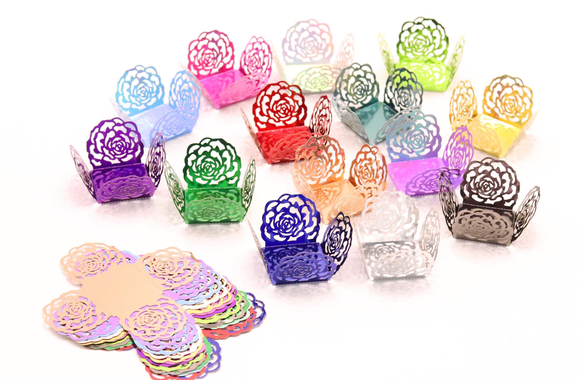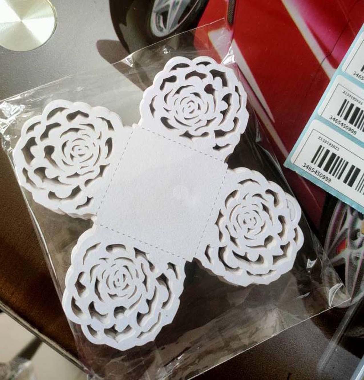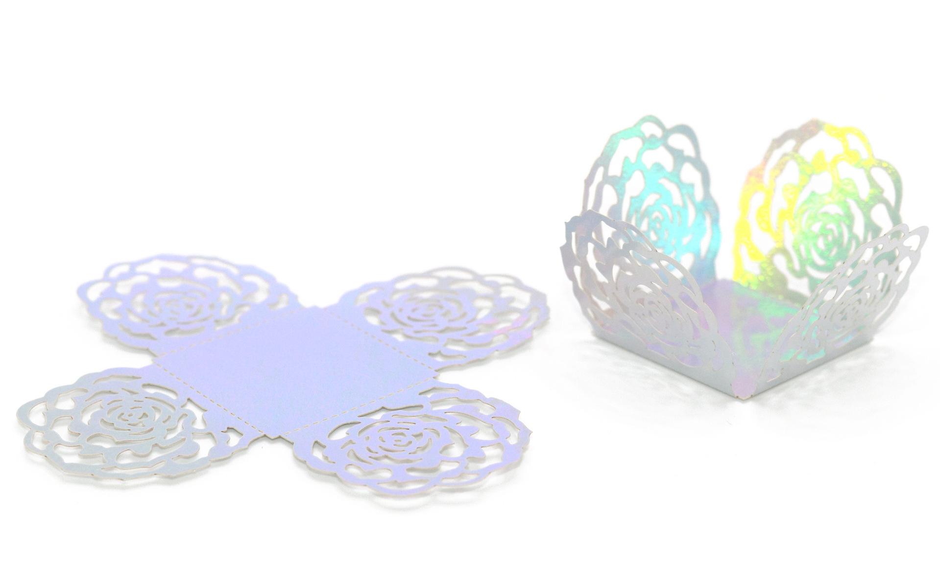 Podemos realizar la personalización de varias flores de papel huecas para regalos de bodas/bordes de pasteles/cajas de dulces de boda huecas con láser/todo tipo de juegos de cajas de papel huecas con láser para embalaje/tarjetas de felicitación huecas/invitaciones huecas/tarjetas de asiento y otros diversos accesorios artesanales relacionados con el láser.