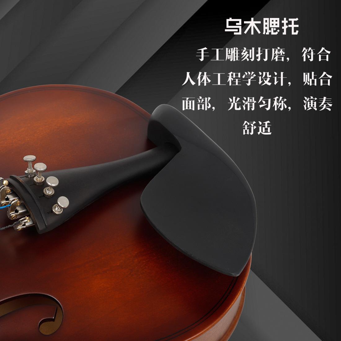 Punto de venta: Maestría artesanal, líneas suaves, tallado y pulido meticulosos, textura clara, resaltando el encanto, hace que la gente lo deje, agujero de sonido preciso, tallado y pulido a mano, para que la cavidad interior del violín esté moderadamente aireada, y la pronunciación esté en un estado ideal. La mentonera de ébano está diseñada ergonómicamente, se ajusta a la cara, es suave y simétrica, cómoda para tocar, incrustada puramente a mano, previene eficazmente que el violín se agriete debido a la expansión y contracción térmica, y realza el efecto artístico