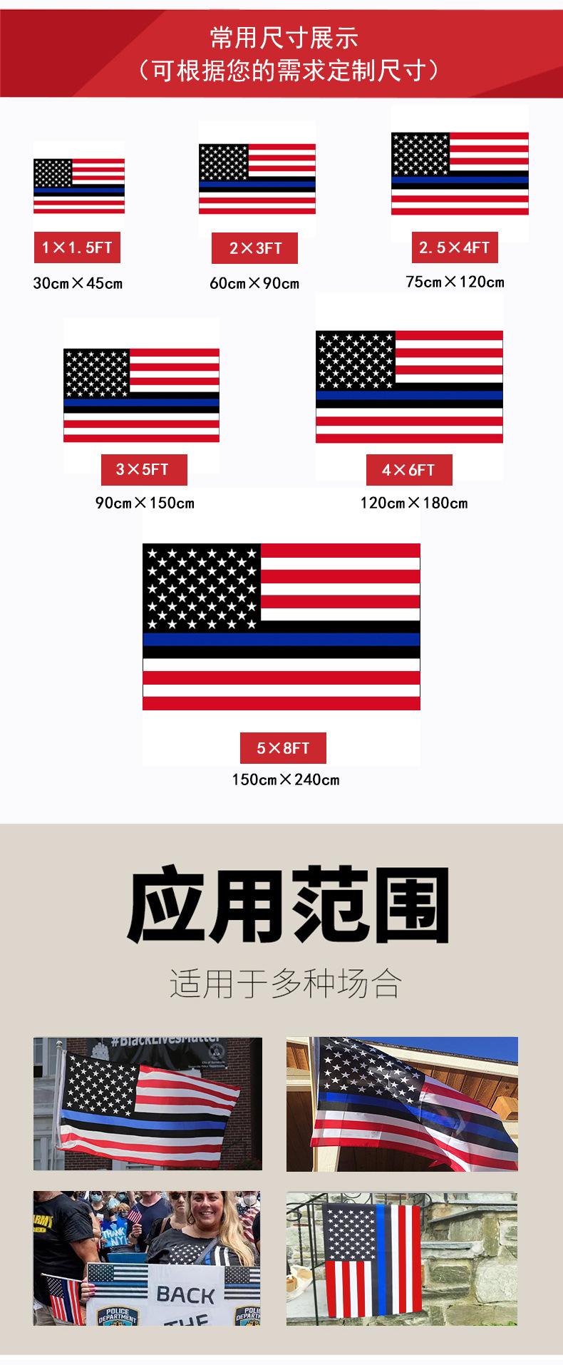 Punto de fábrica 3 * 5 pies Bandera de Policía Estrella Línea Azul de EE. UU. 90*150 cm Rojo Azul Gris Bandera de EE. UU.