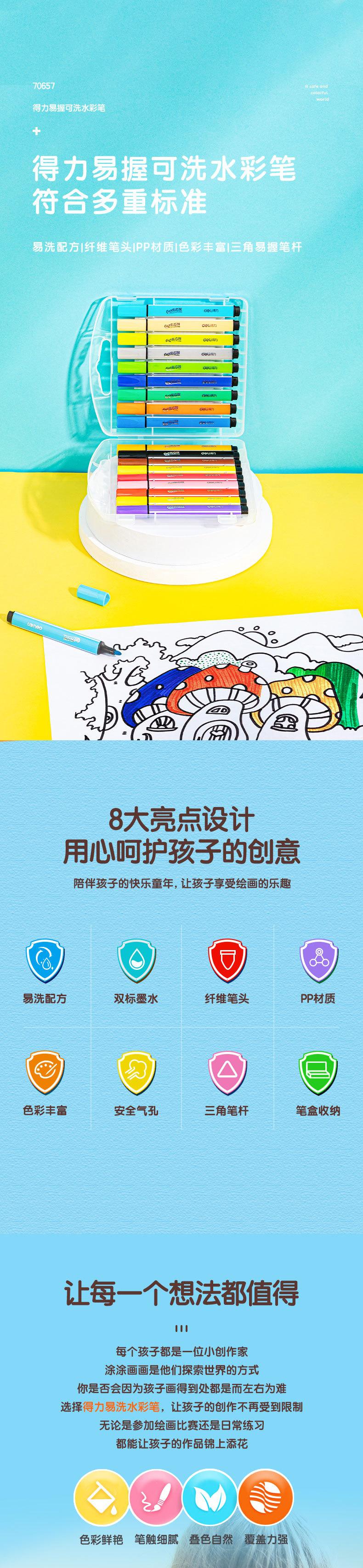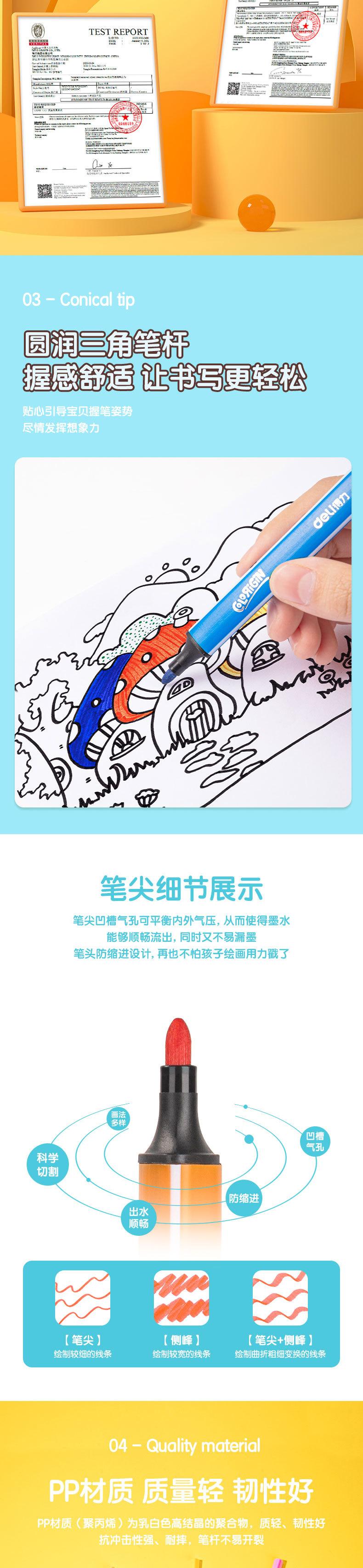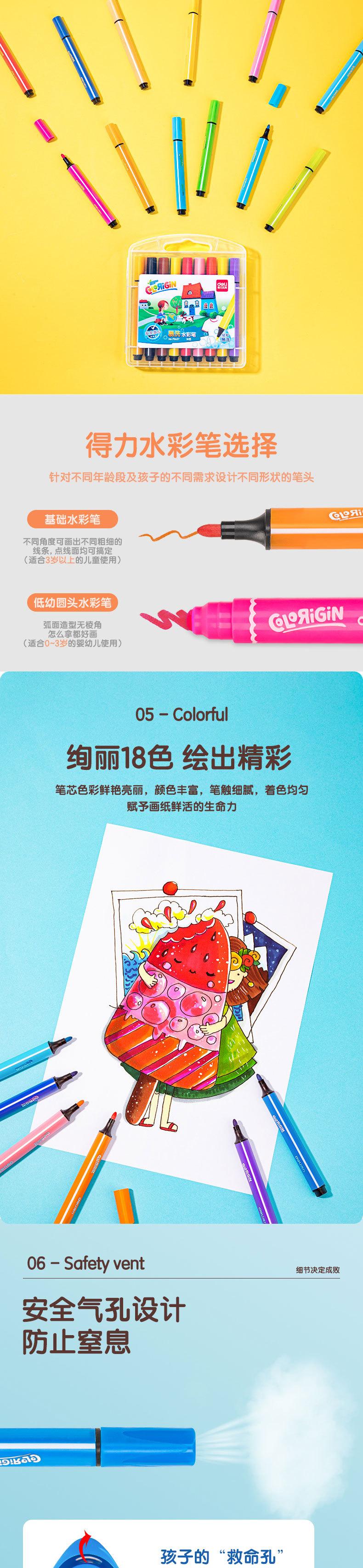 Deli 70657-18 Pluma de Acuarela de Color Triangular de Barra Gruesa Lavable Pluma de Acuarela Pluma para Pintar Pluma para Graffiti