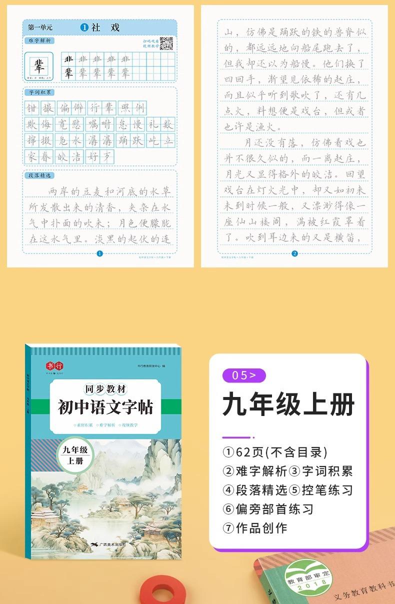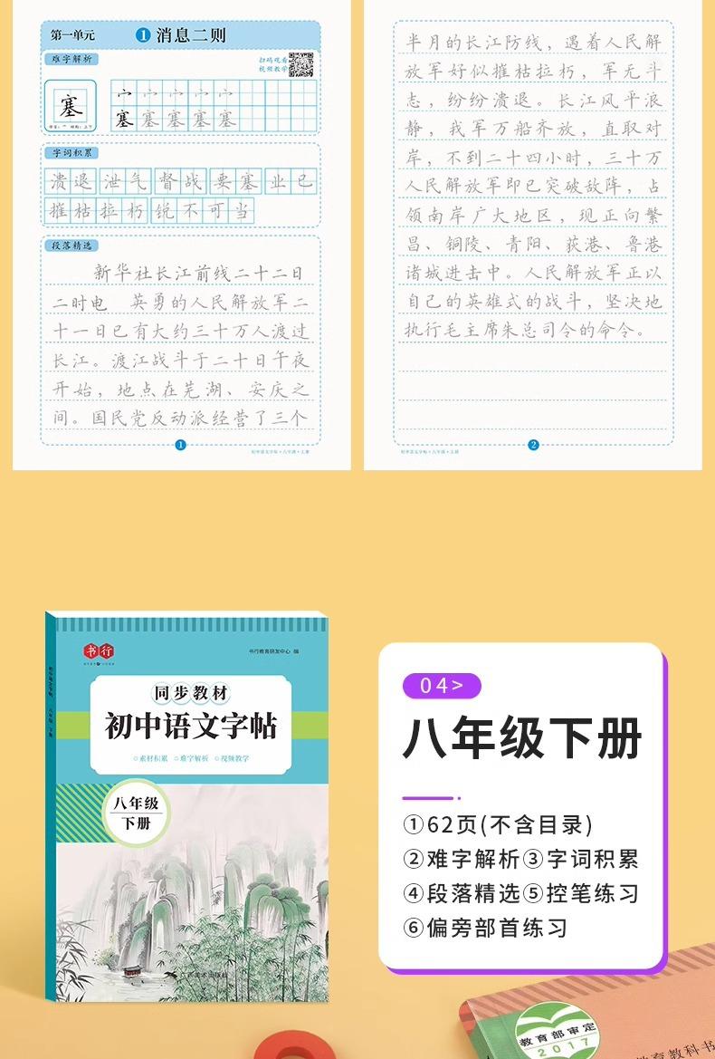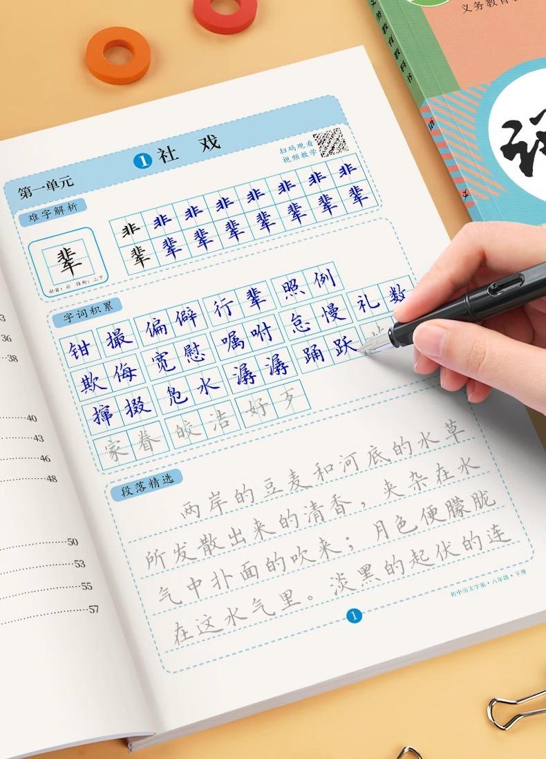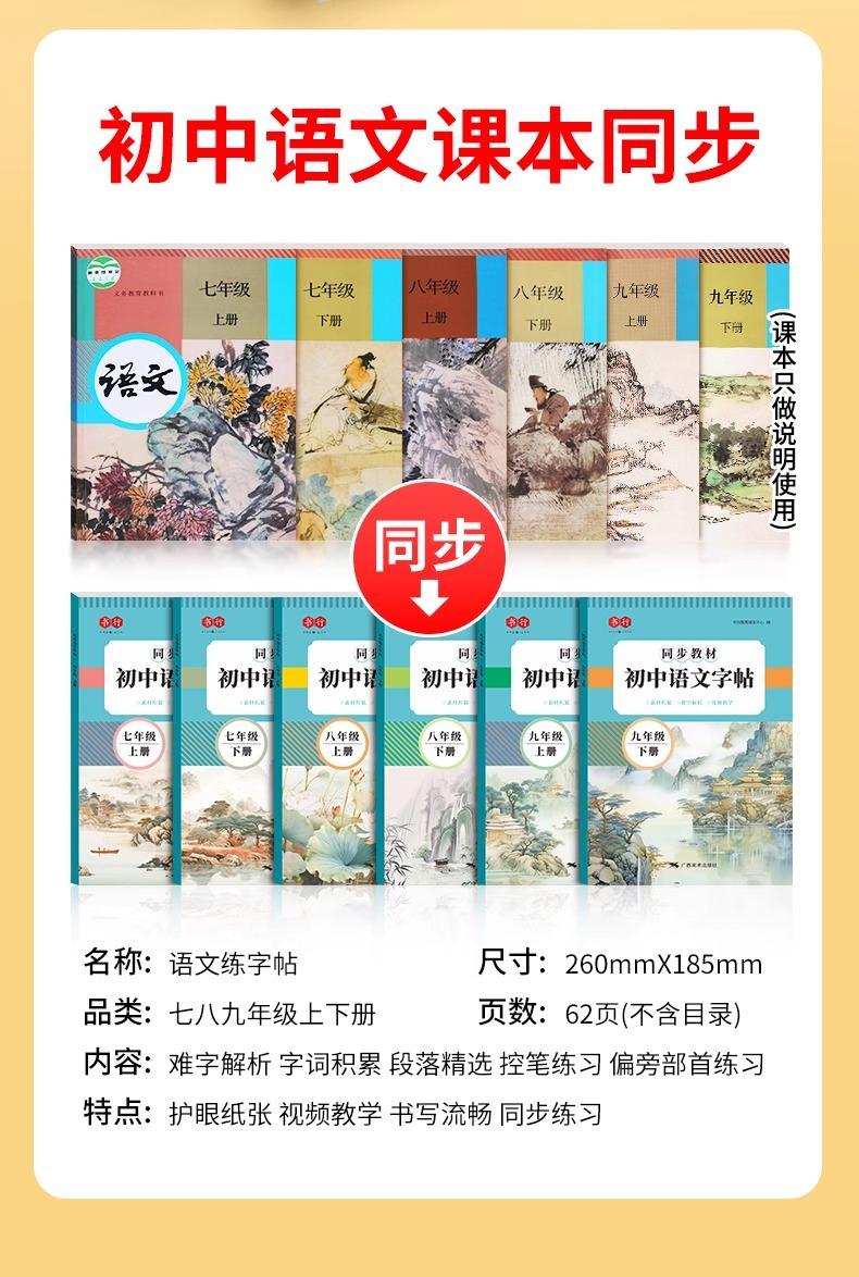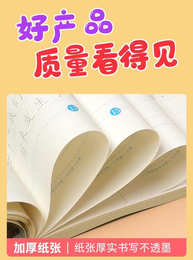 Primer volumen del cuaderno de práctica sincrónica de chino de grado 789 para estudiantes de secundaria, primer volumen y segundo volumen de caligrafía con pluma dura PEP, escritura regular.