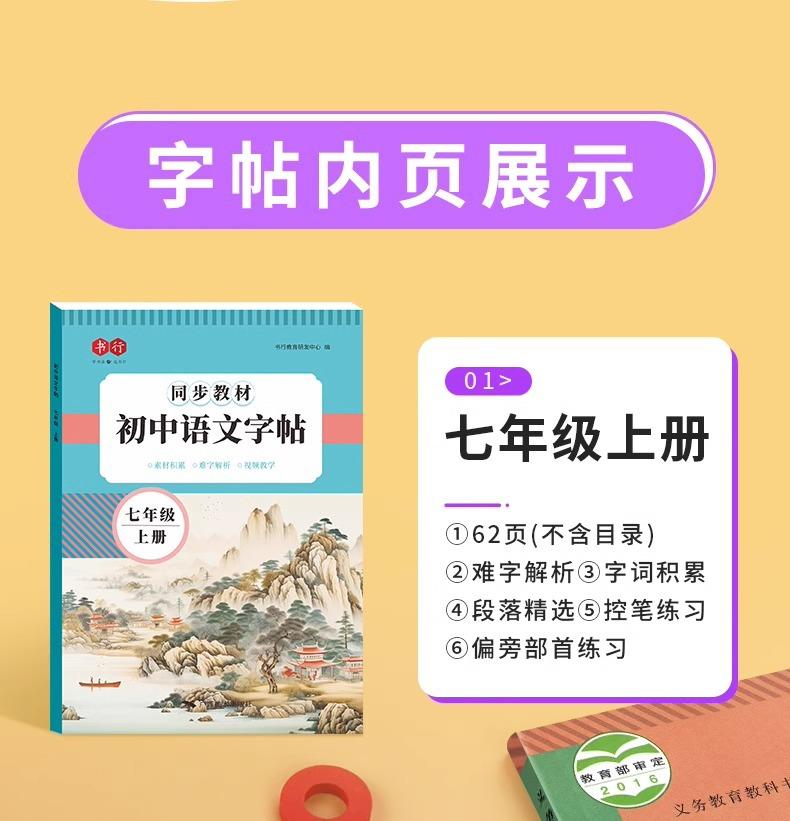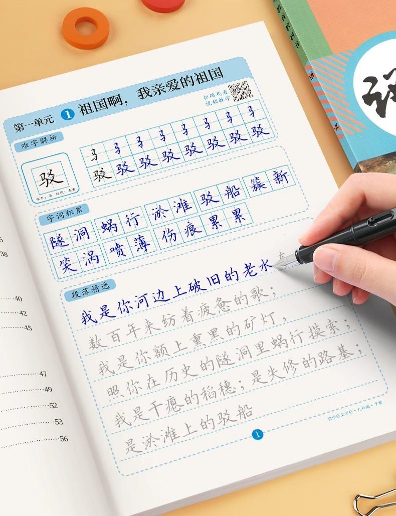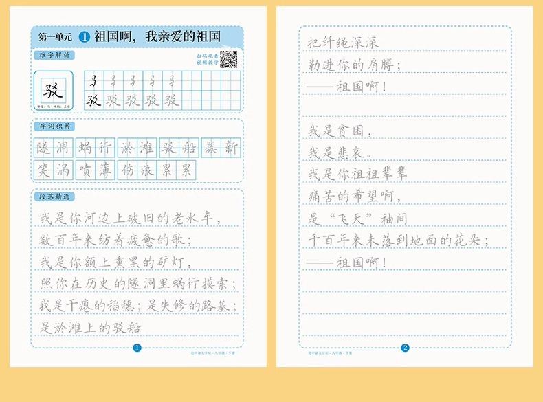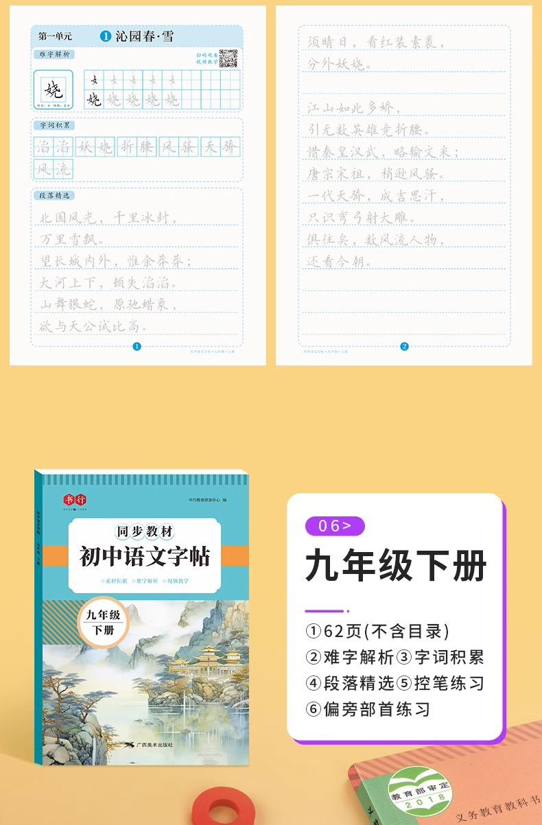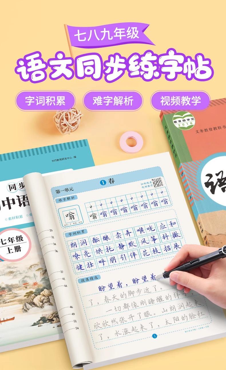 Primer volumen del cuaderno de práctica sincrónica de chino de grado 789 para estudiantes de secundaria, primer volumen y segundo volumen de caligrafía con pluma dura PEP, escritura regular.