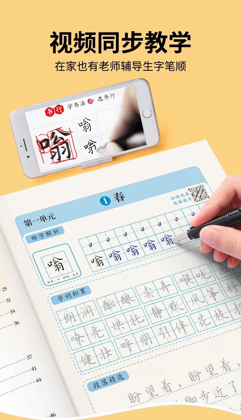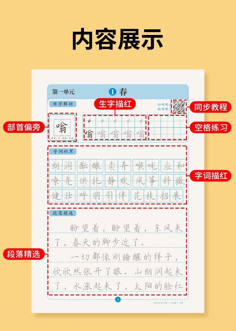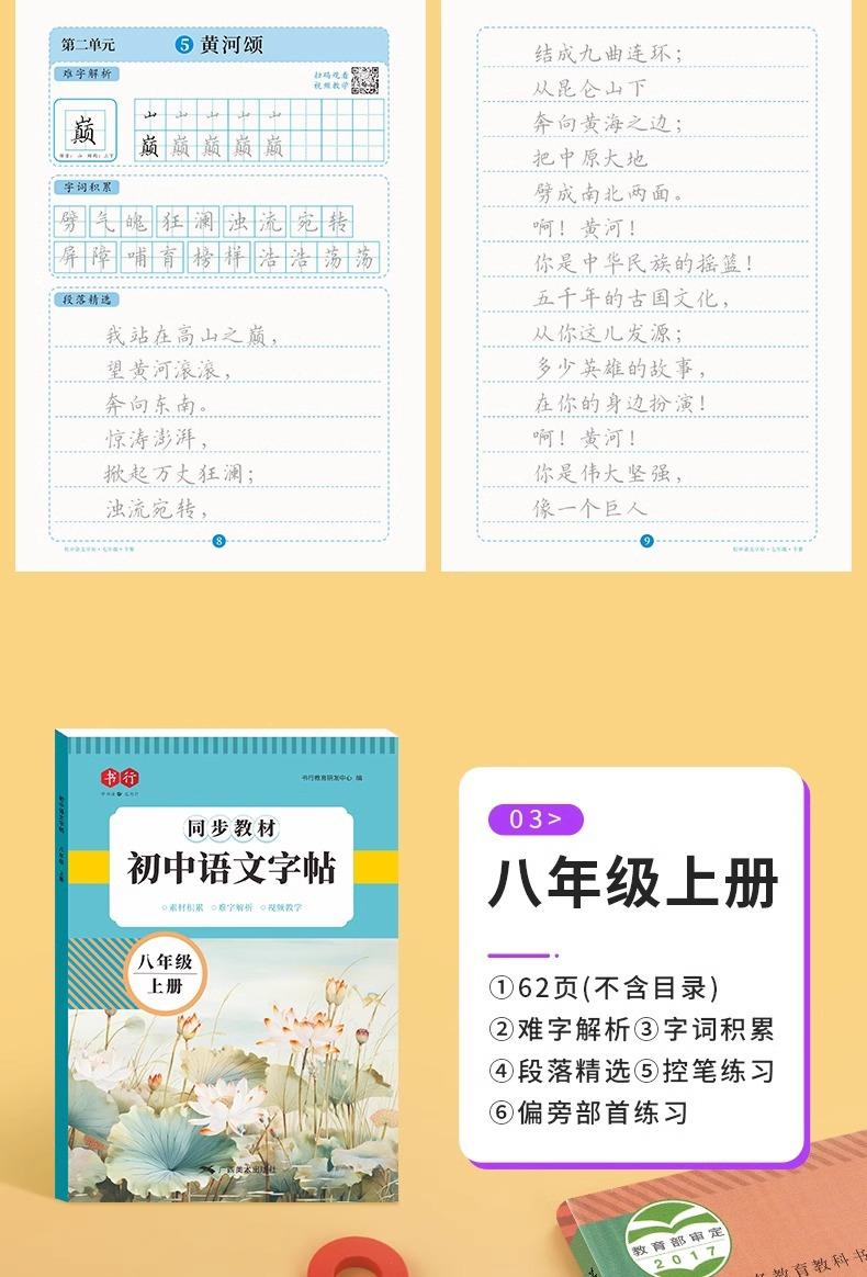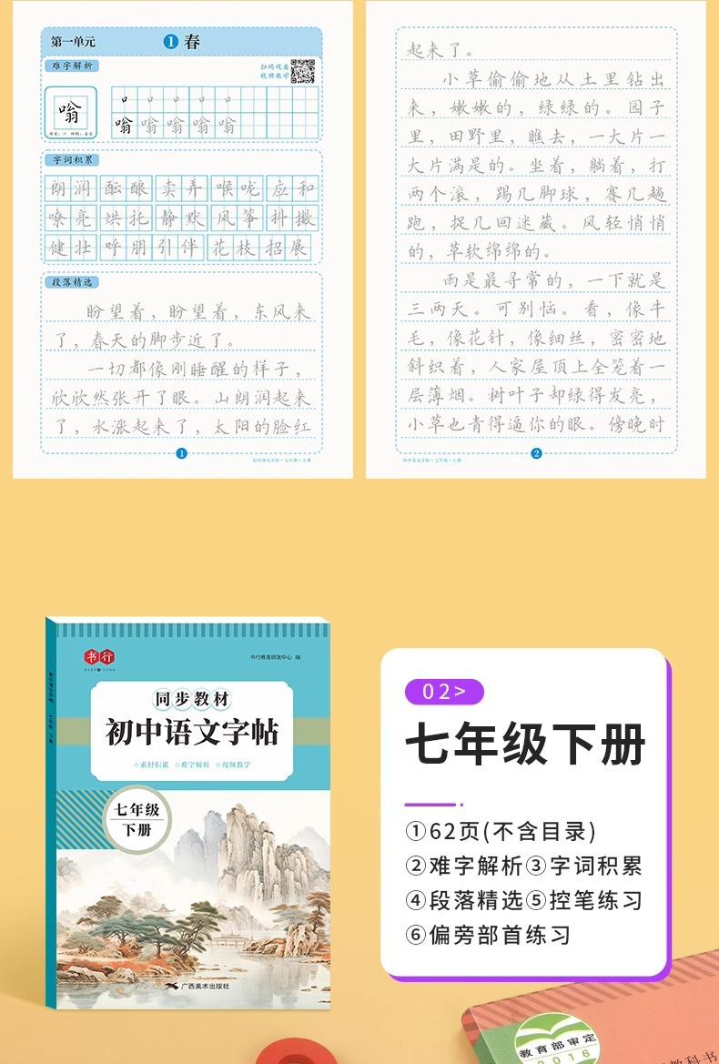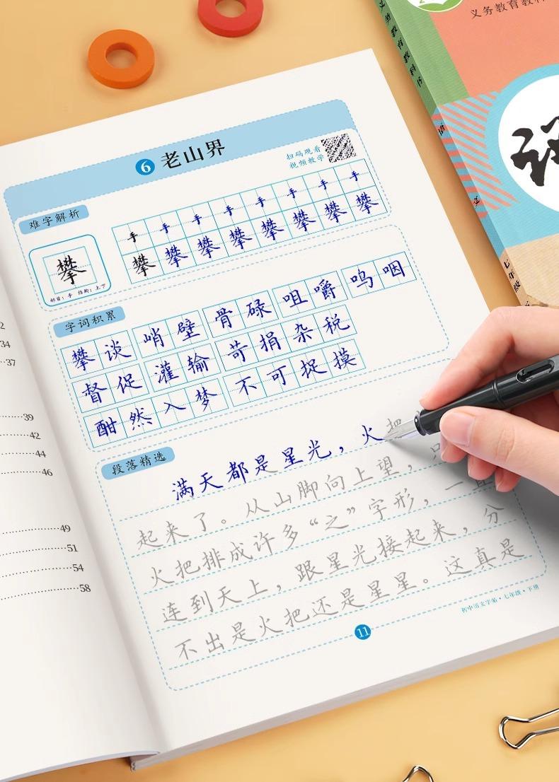 Primer volumen del cuaderno de práctica sincrónica de chino de grado 789 para estudiantes de secundaria, primer volumen y segundo volumen de caligrafía con pluma dura PEP, escritura regular.