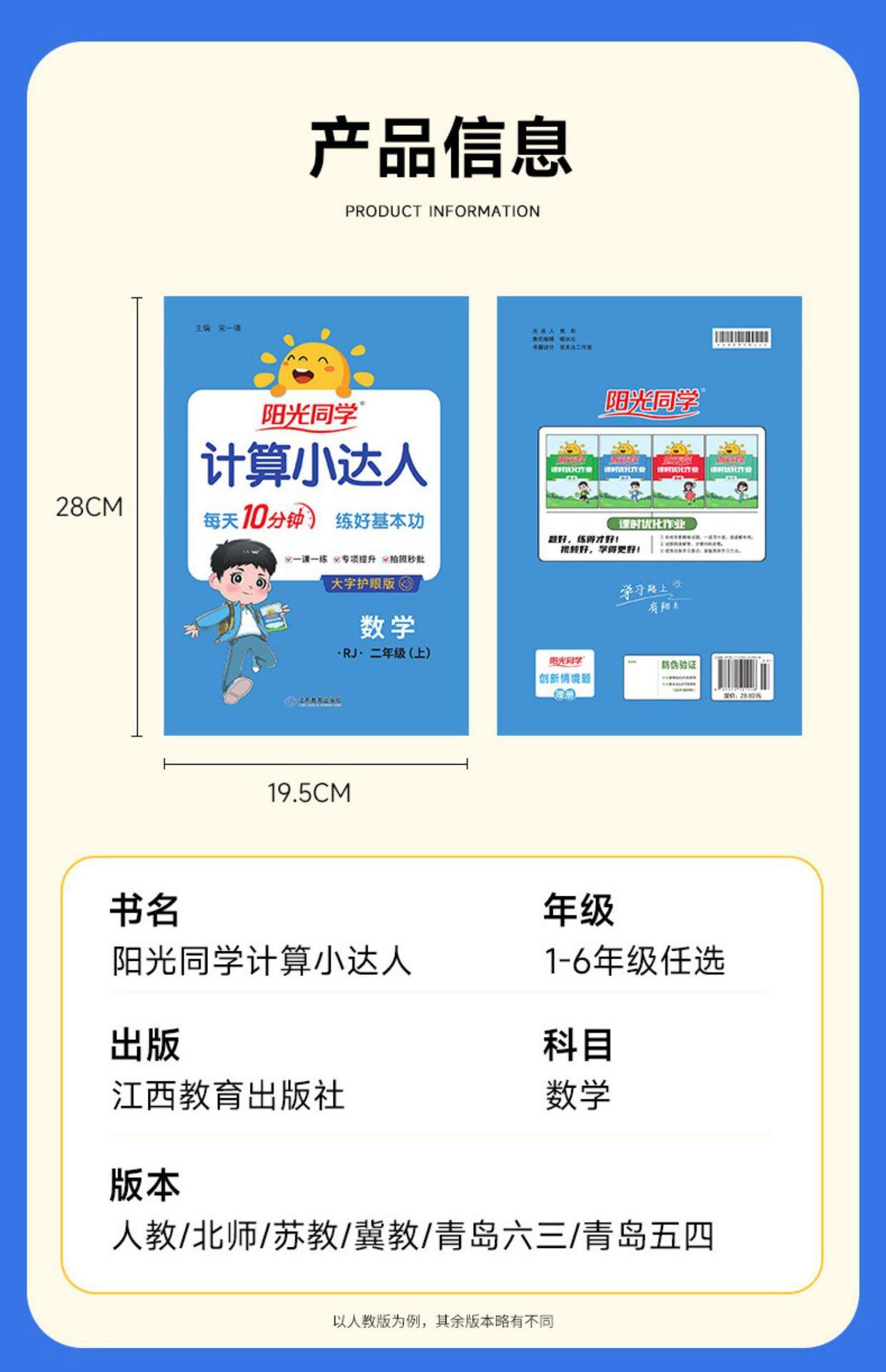 [Nueva edición de primavera de 2025] Los estudiantes de Sunshine calculan problemas de matemáticas en el primer y segundo libro del grado 123456