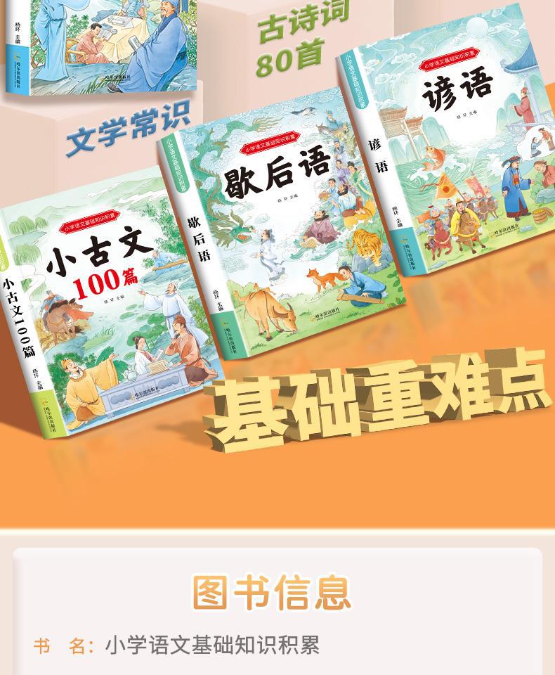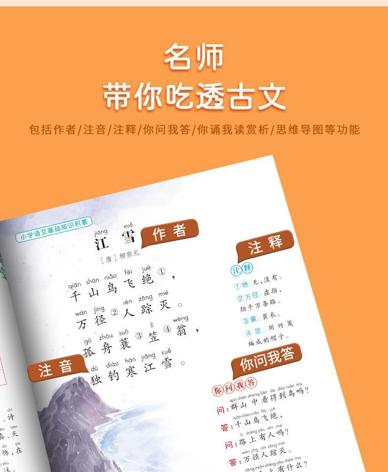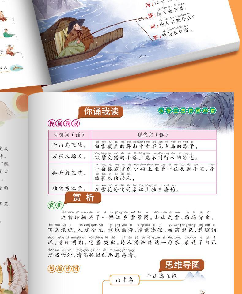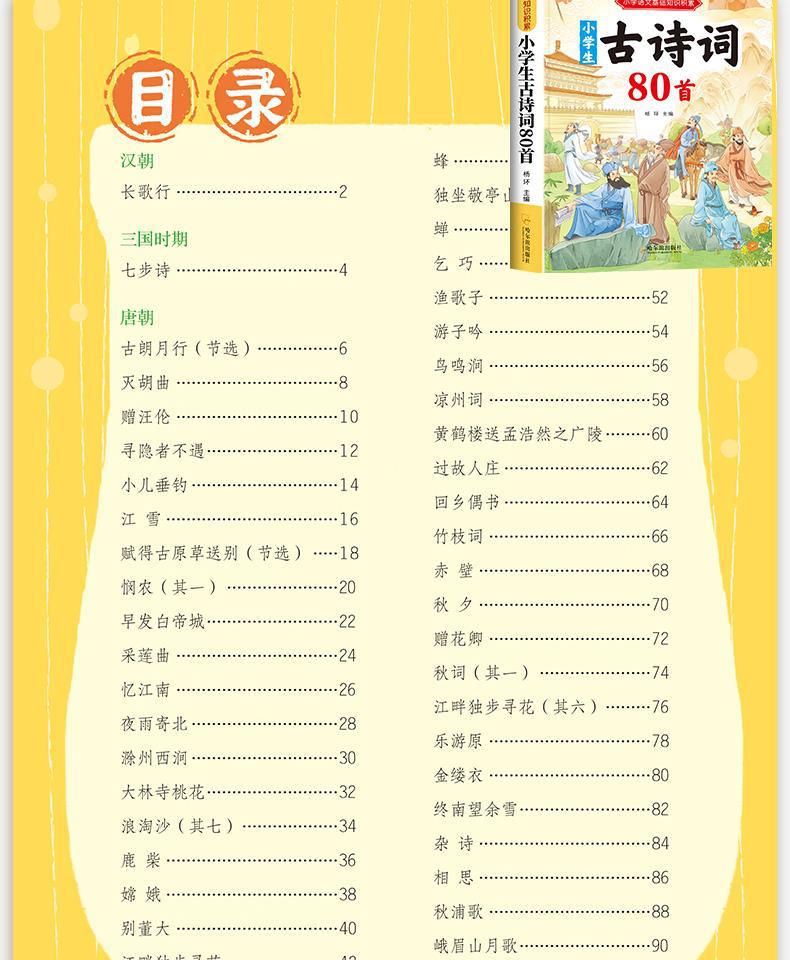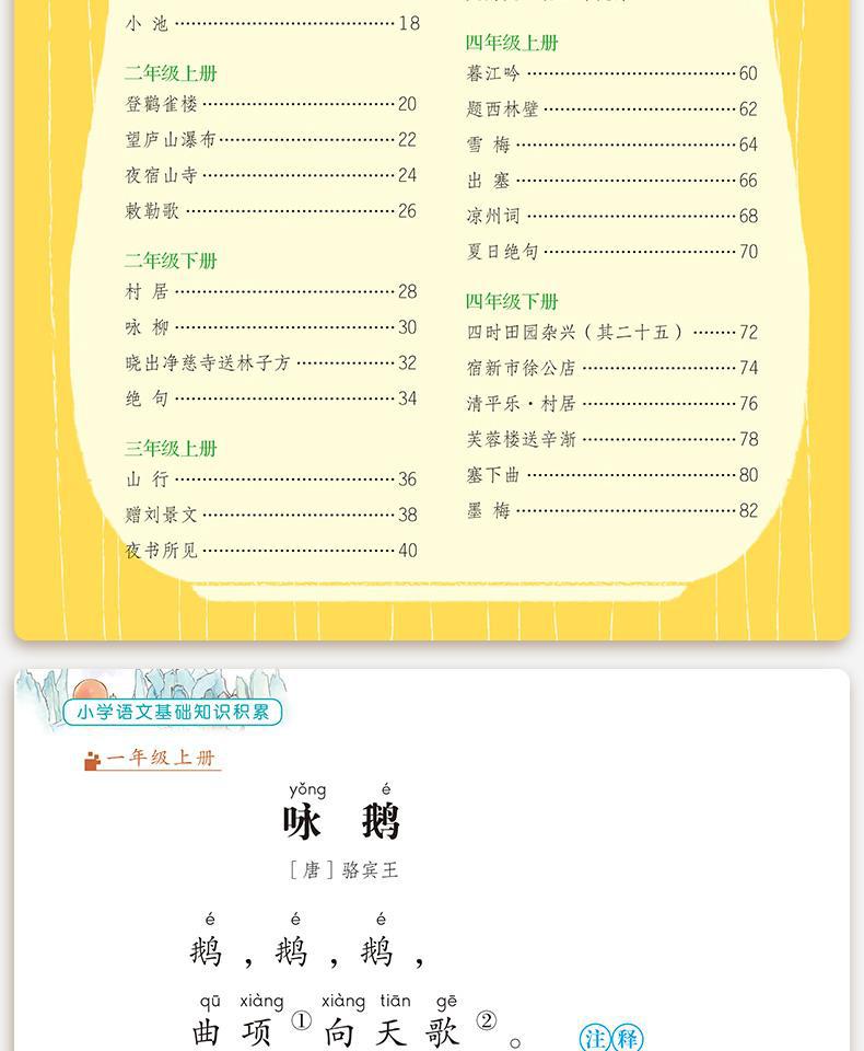 80 Conocimientos Básicos de Chino de Primaria Acumulación de Poemas Antiguos Tabla de Colores Edición Zhuyin Edición Educación del Pueblo Chino Síncrono