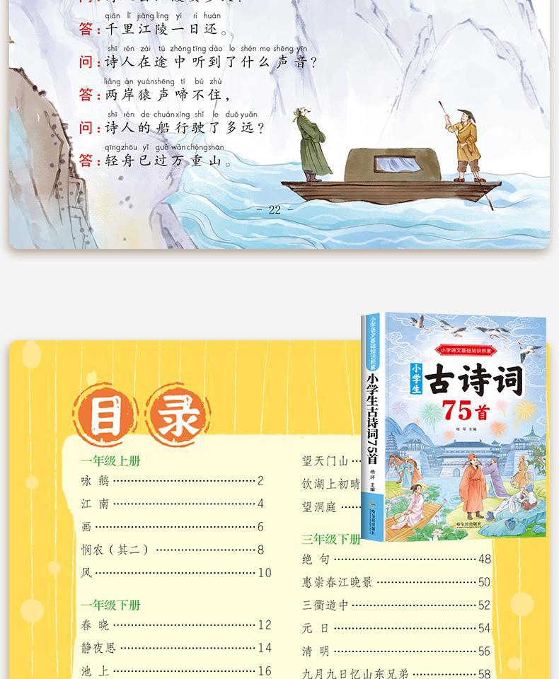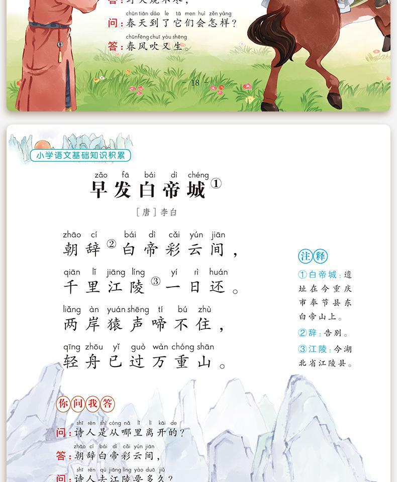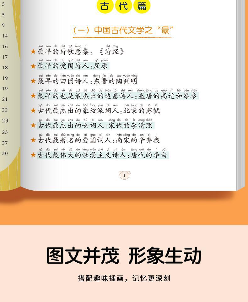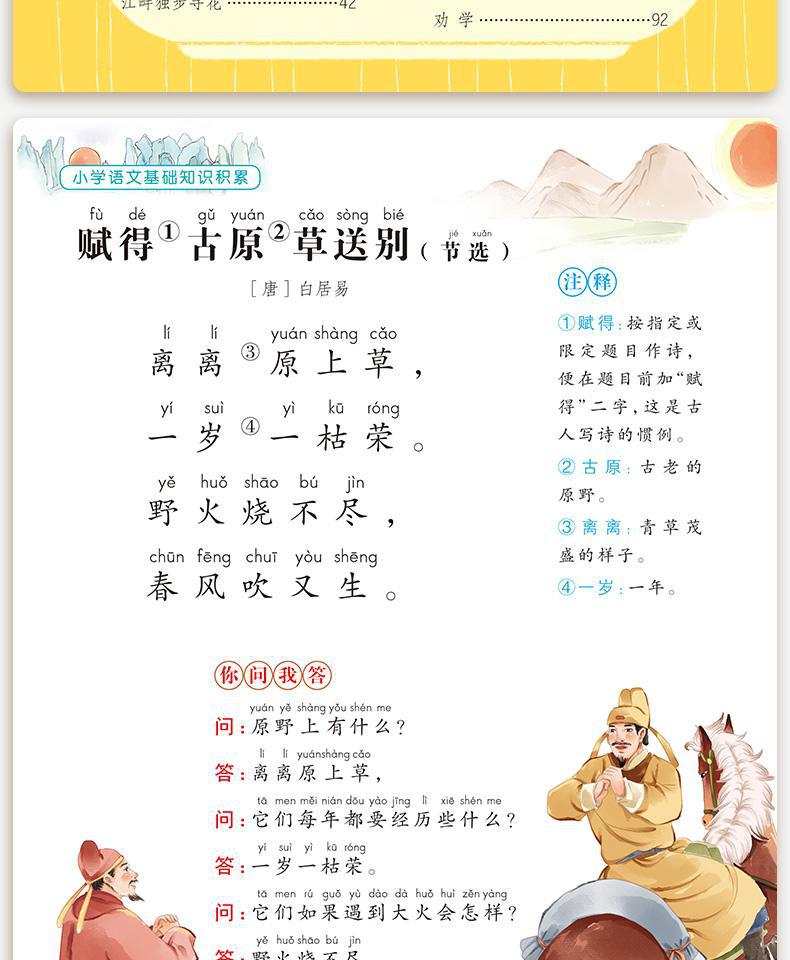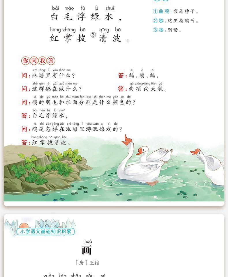 80 Conocimientos Básicos de Chino de Primaria Acumulación de Poemas Antiguos Tabla de Colores Edición Zhuyin Edición Educación del Pueblo Chino Síncrono
