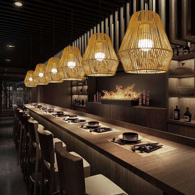 Lámpara de Araña Tejida Retro China Dormitorio Tienda de Ropa Sala de Estar Café Restaurante Hot Pot Estilo Industrial Lámparas de Cuerda de Papel al Por Mayor