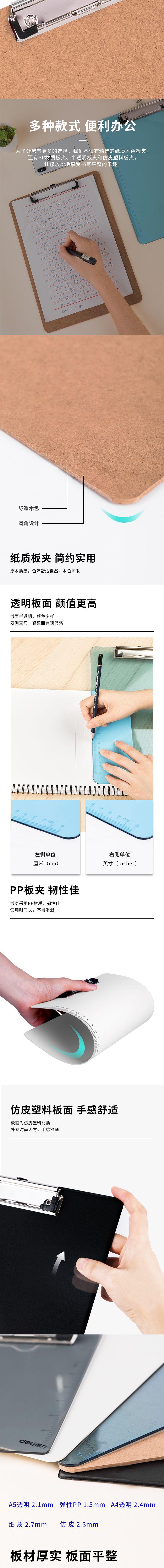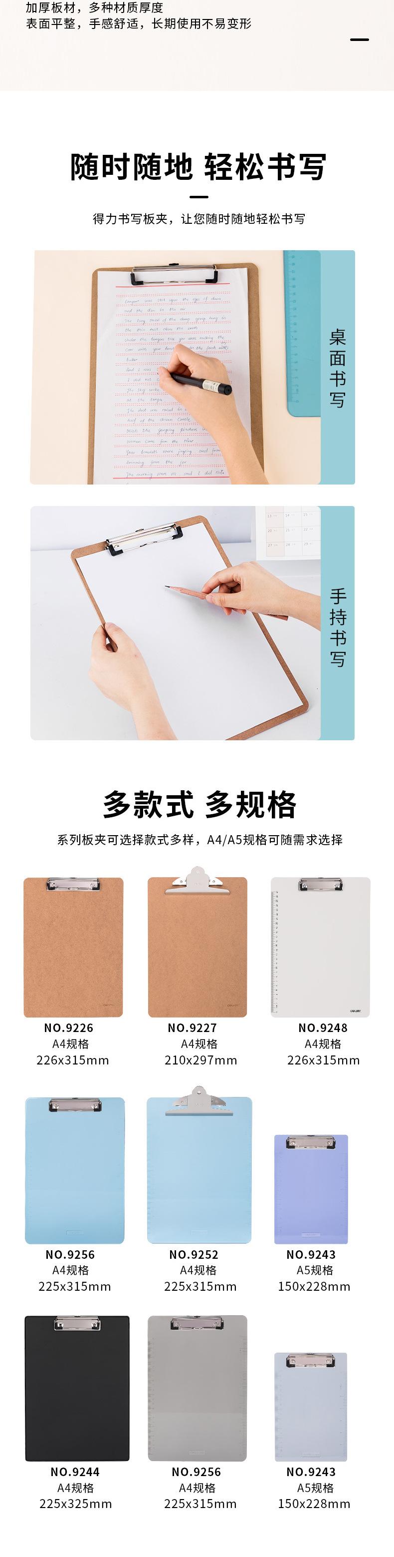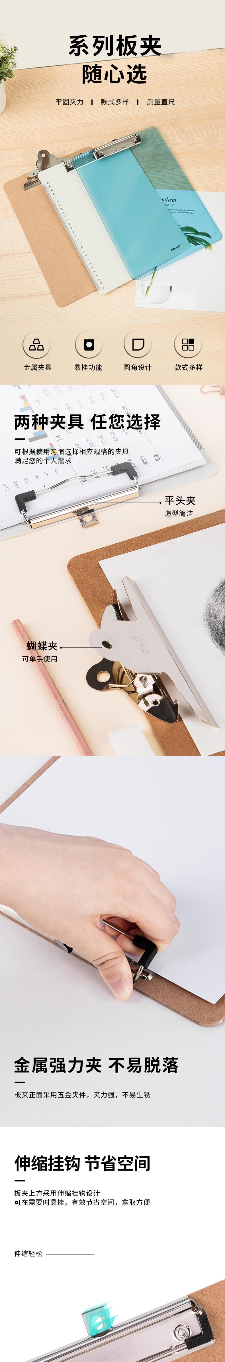 Deli 9226 - Clip para carpeta de notas (A4), madera dura, plástico, para oficina