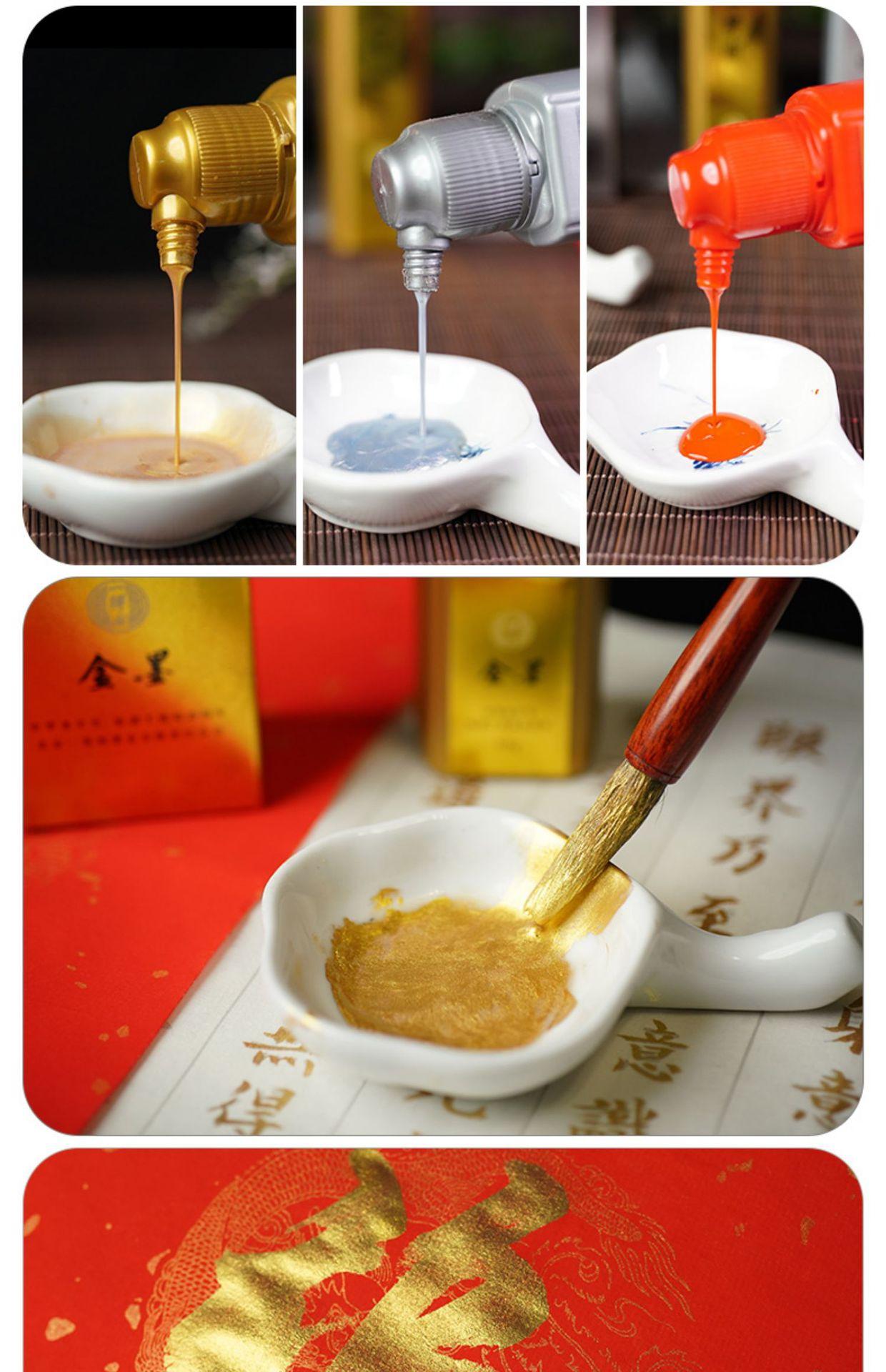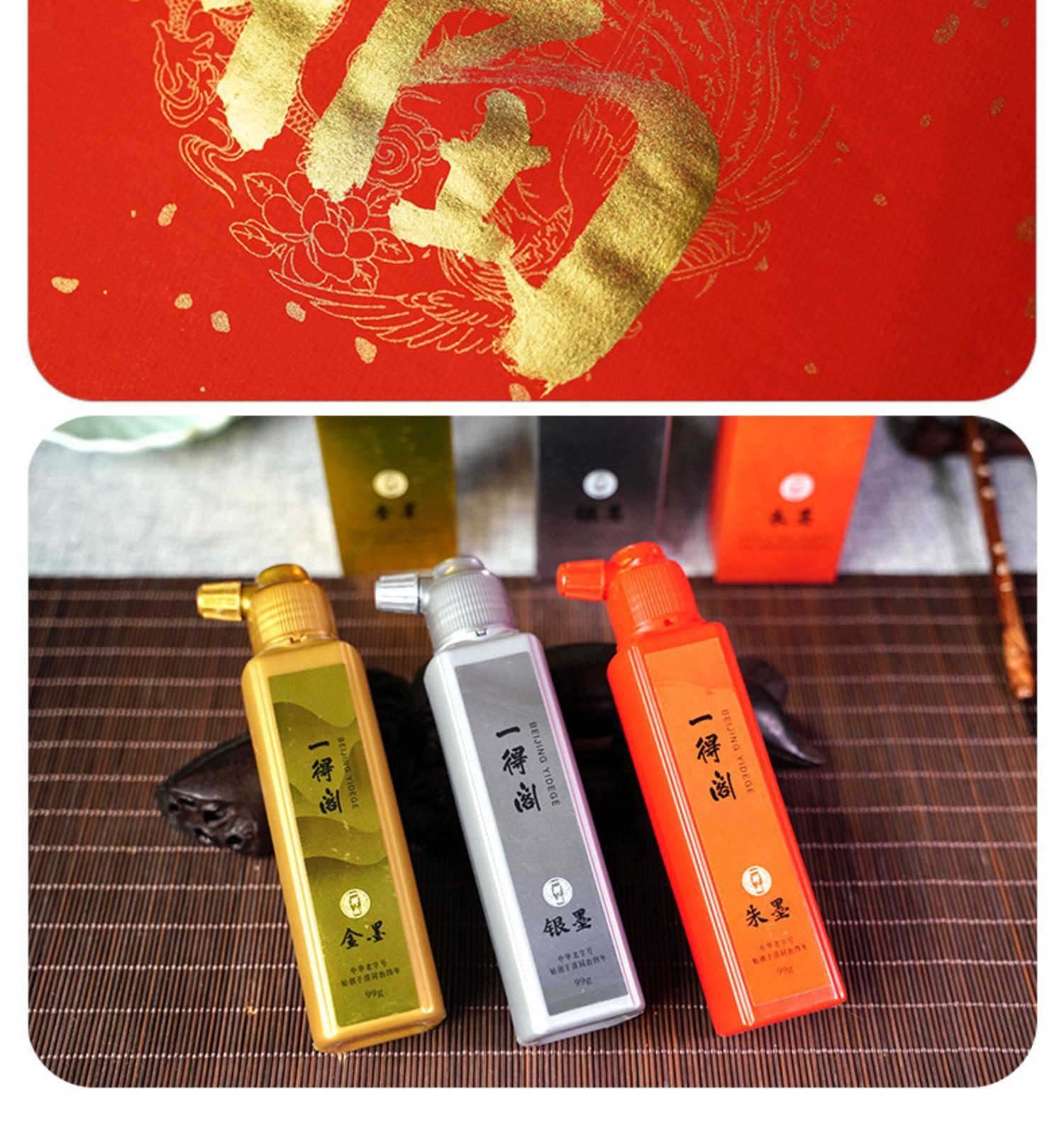 Tinta dorada Yidege de 99 g para escritura de festivales de primavera, tinta dorada especial para caligrafía y pintura, escritura regular pequeña, tinta dorada rosa dorada
