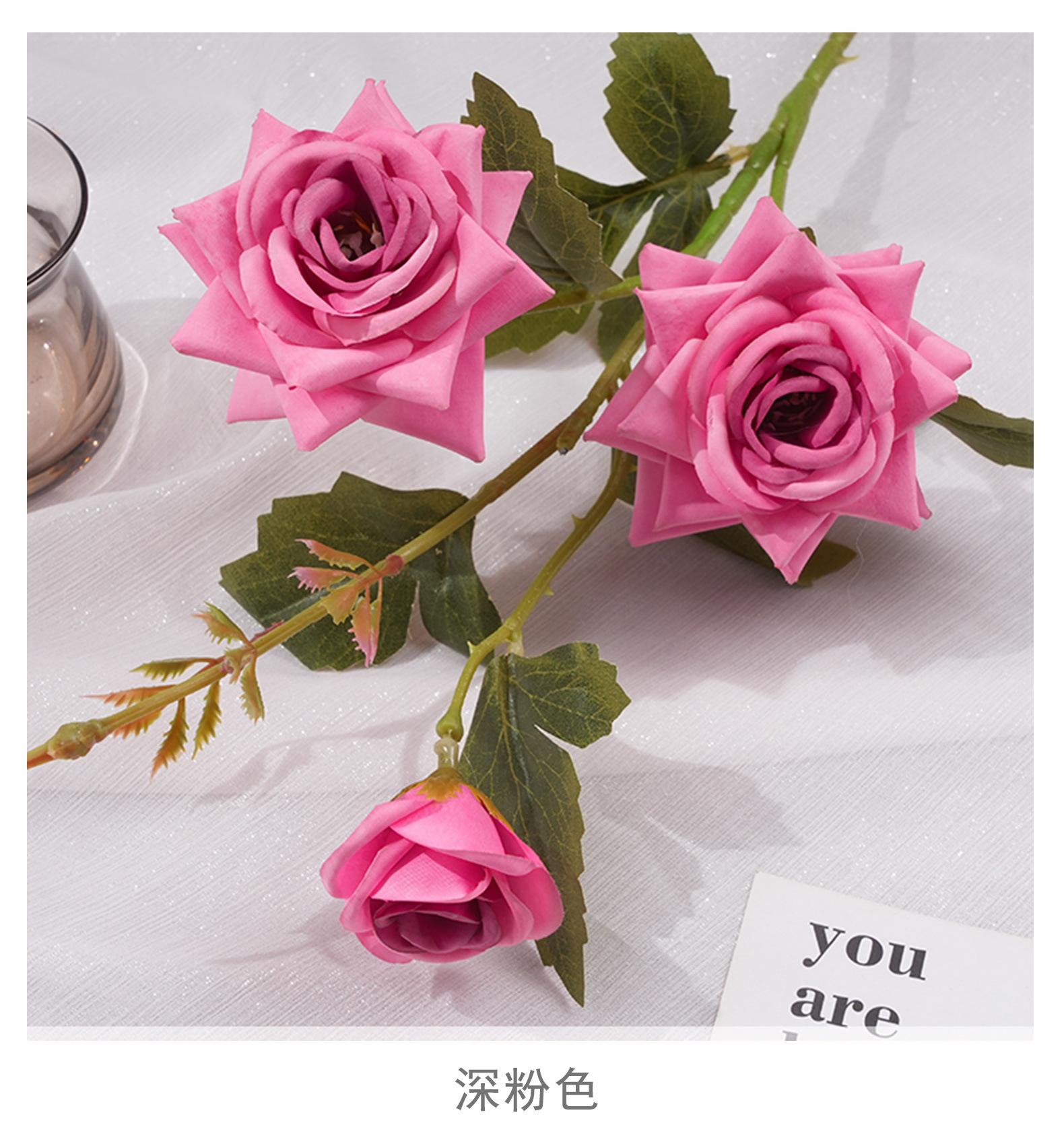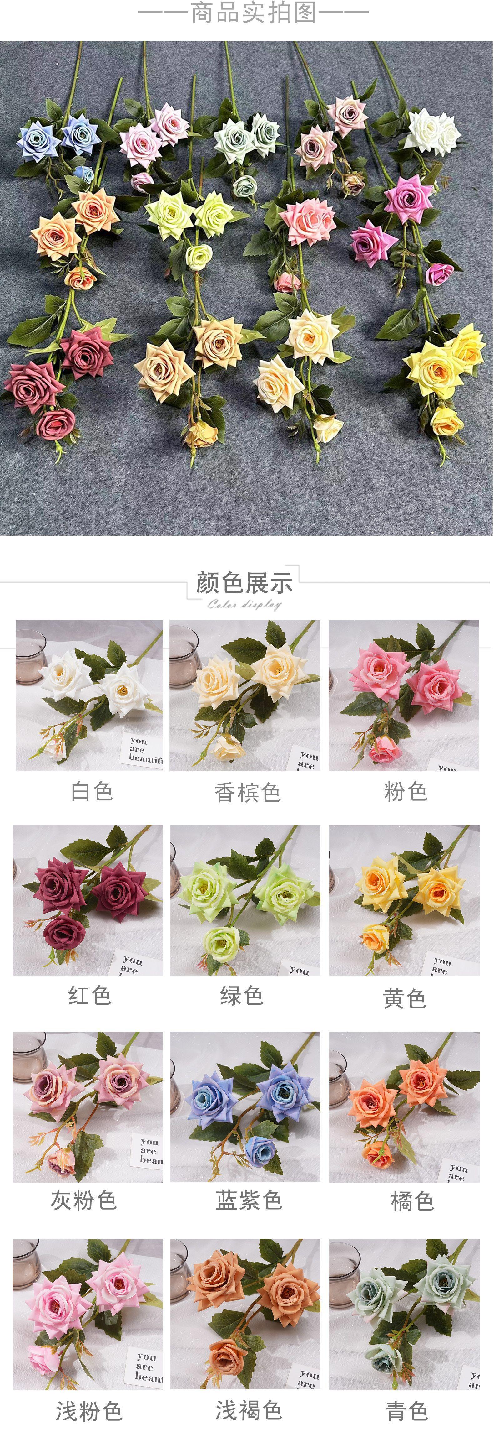 Ramo de Flores Artificiales de Rosa de Cuerno de 3 Cabezas Simuladas para Uso en Bodas, Flor de Seda Flor Decorativa Artificial para Arreglo de Bodas y Exhibición de Piso