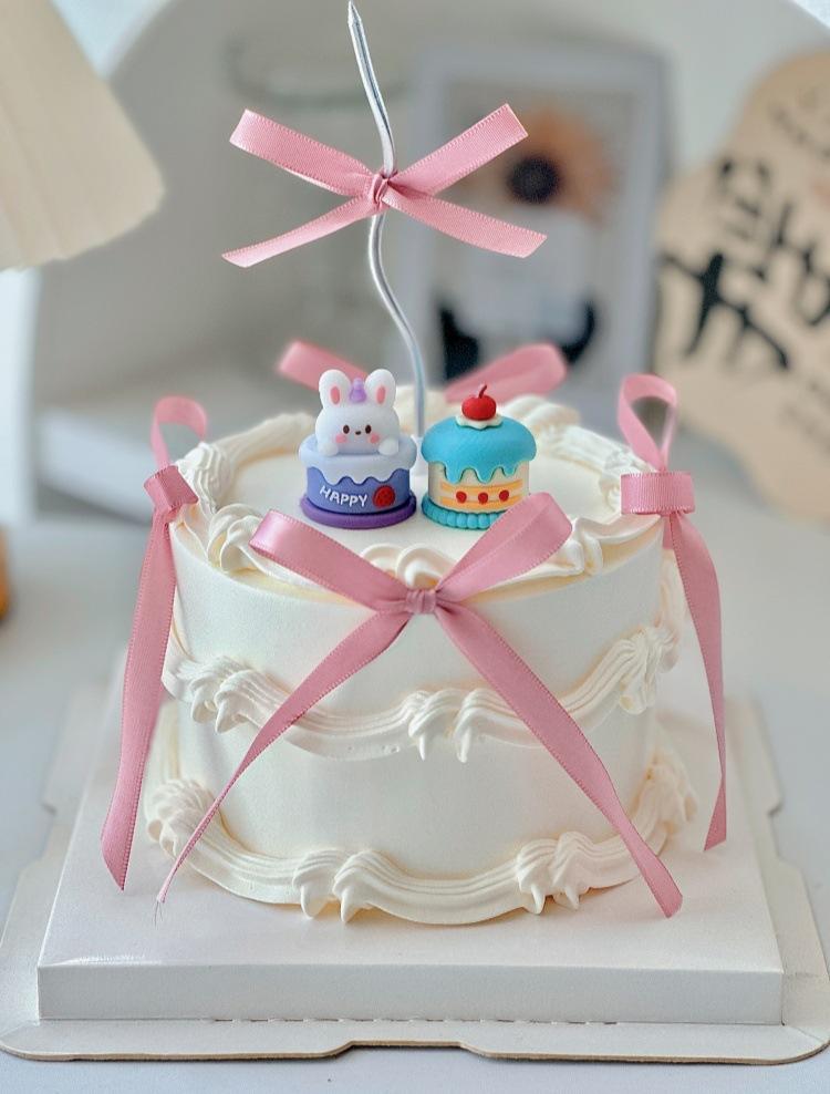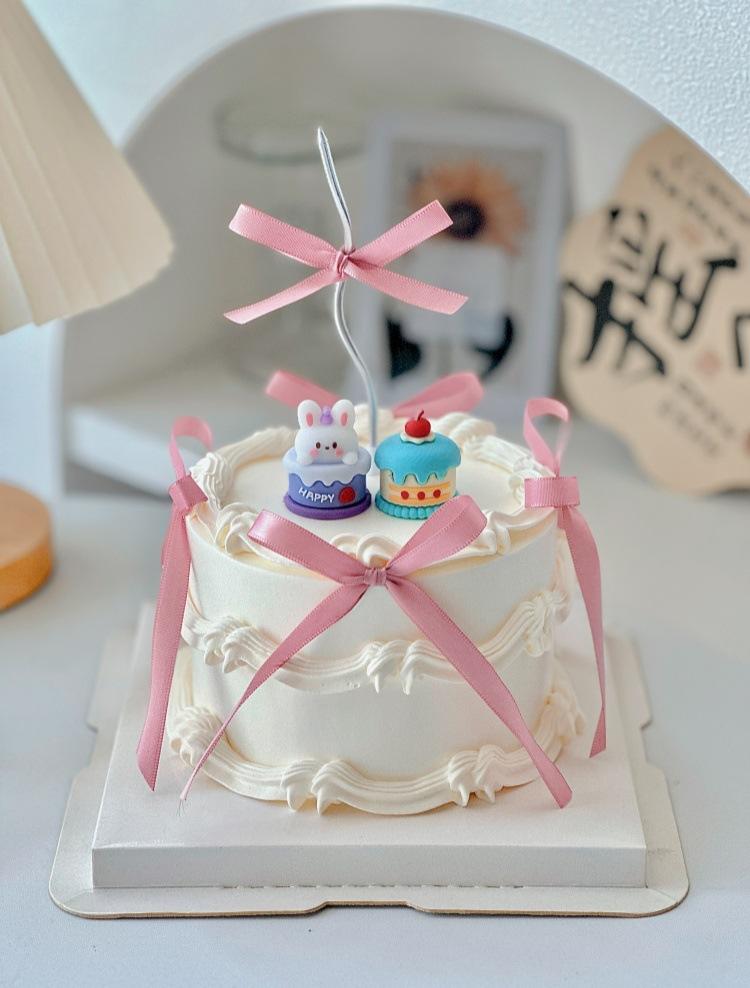 Soft chocolate cream cake, Soft cherry cake, Soft glue happy rabbit cake, Soft glue pink and yellow hbd small ...