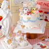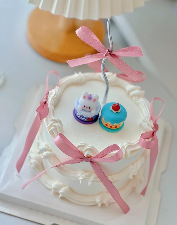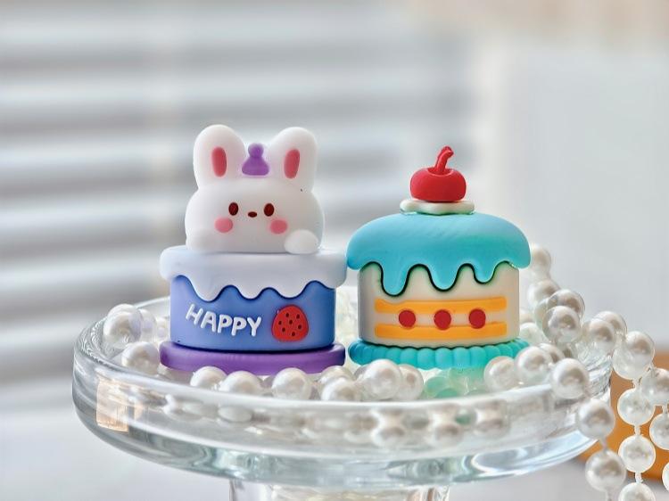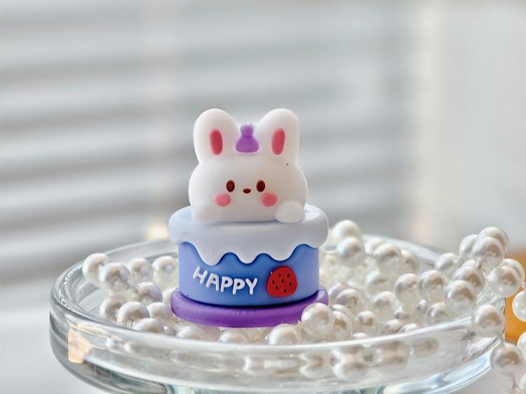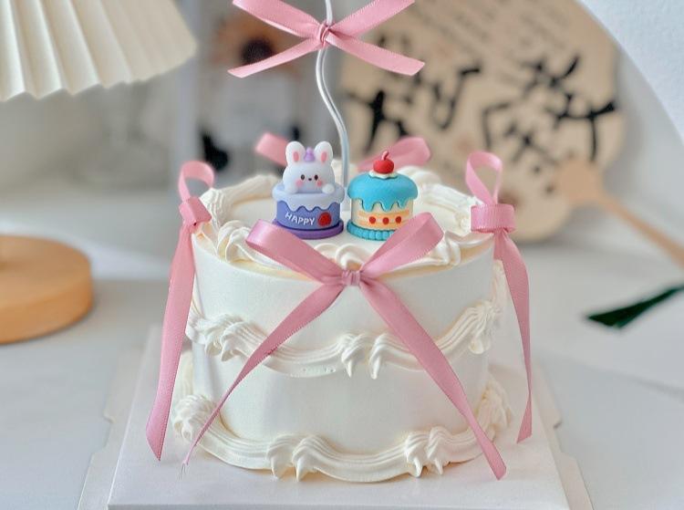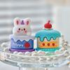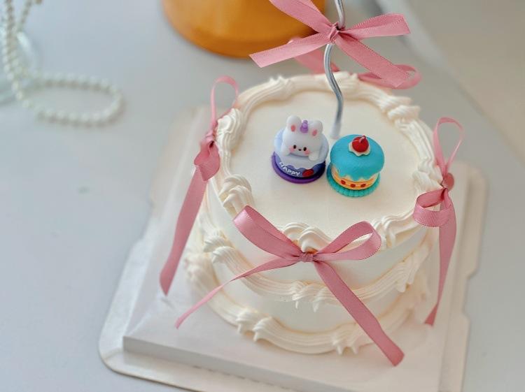 Pegamento suave de dibujos animados, lindo conejito, lazo, pastel pequeño, pastel de cumpleaños, postre, mesa, decoración, tarjeta de decoración, complemento