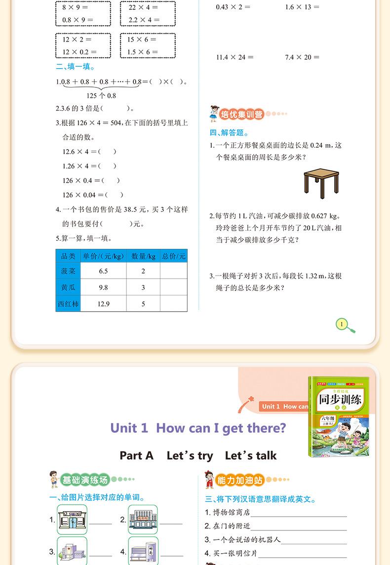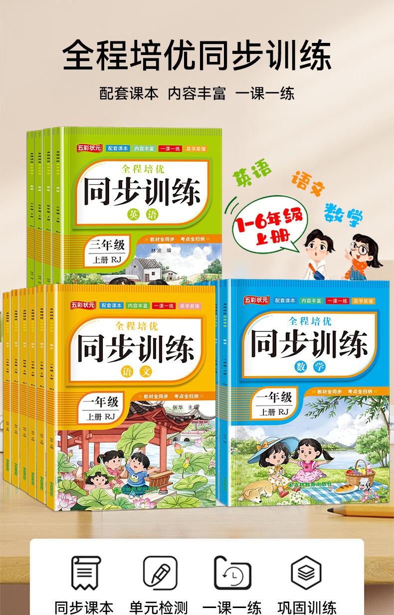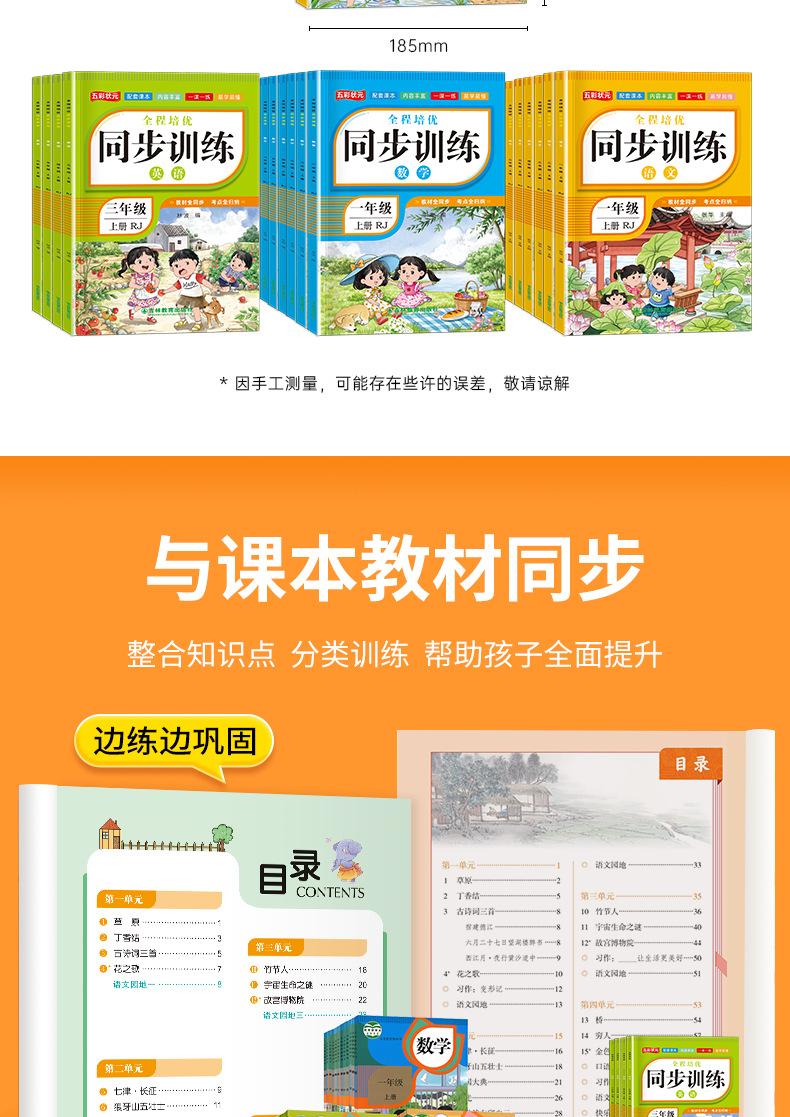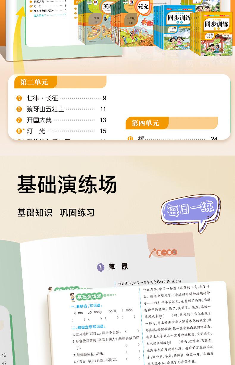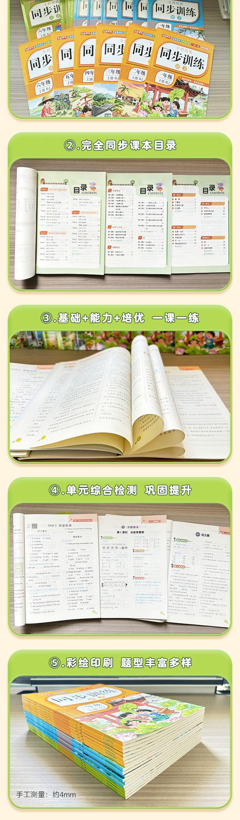 Los libros primero y segundo de los grados 1-6 están sincronizados con el entrenamiento de chino, matemáticas e inglés, una lección y una práctica de entrenamiento especial.