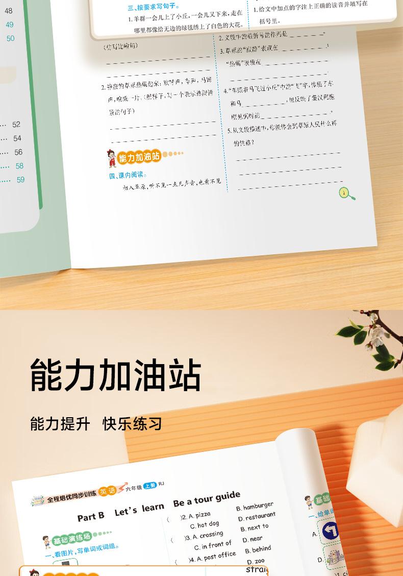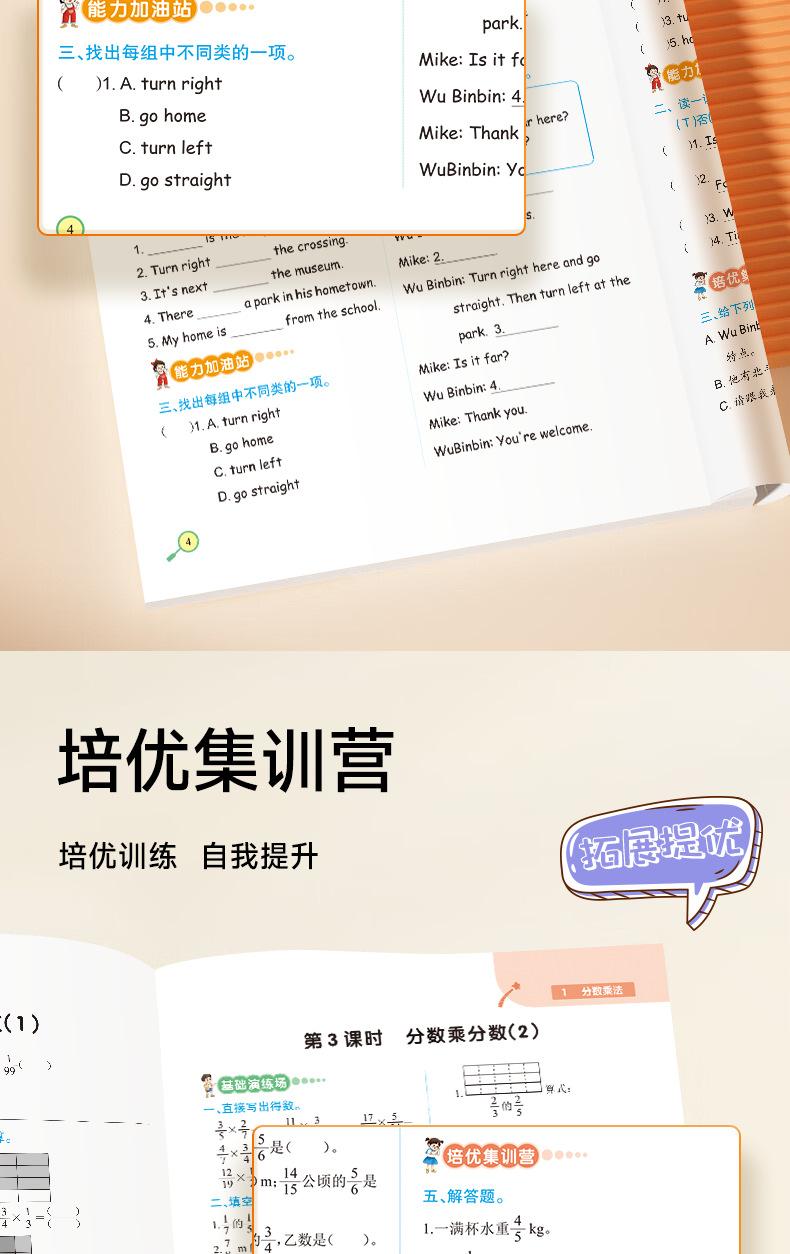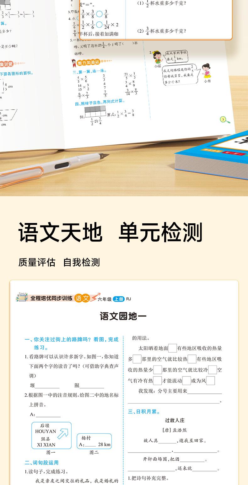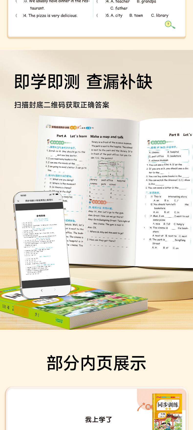 Los libros primero y segundo de los grados 1-6 están sincronizados con el entrenamiento de chino, matemáticas e inglés, una lección y una práctica de entrenamiento especial.