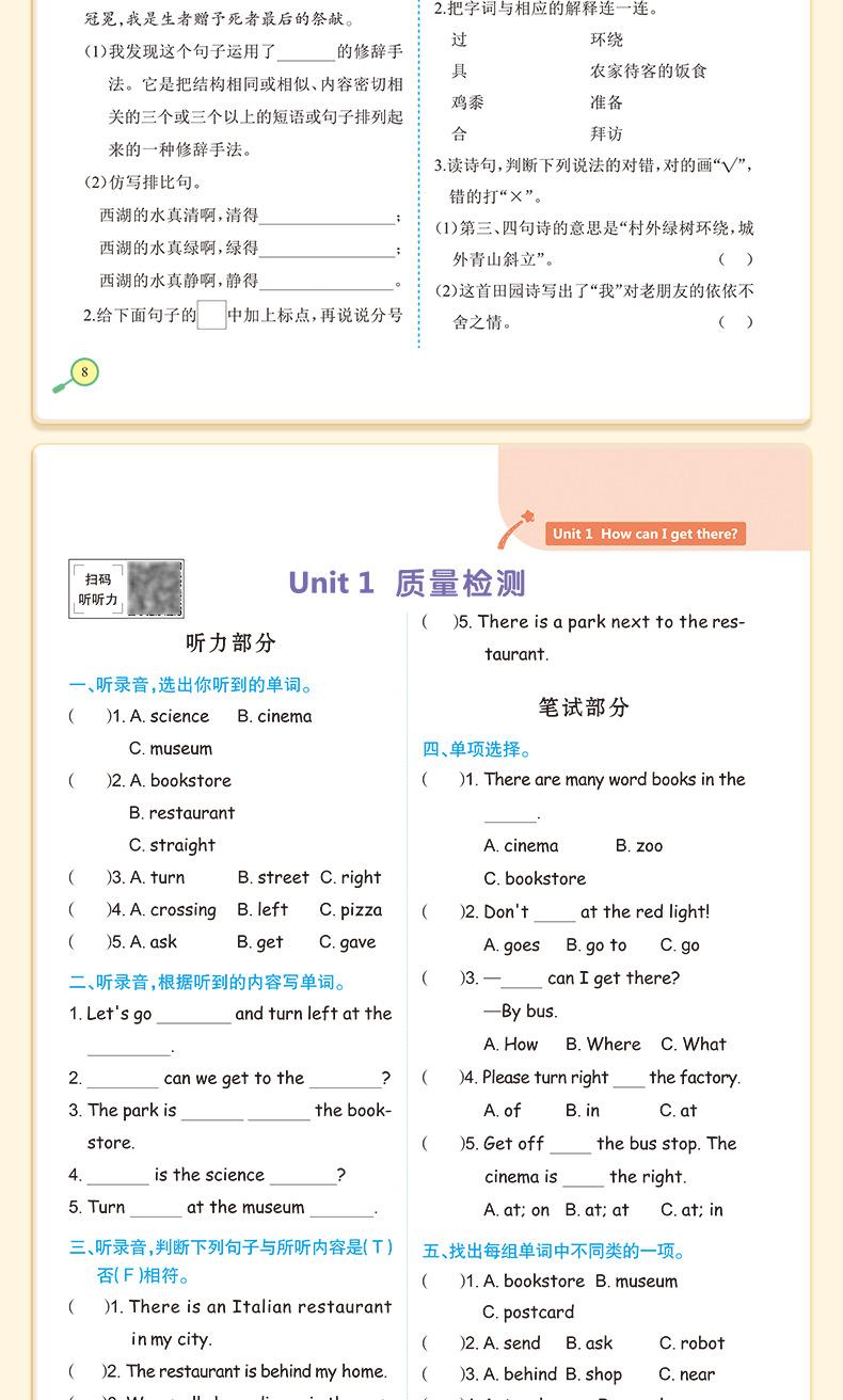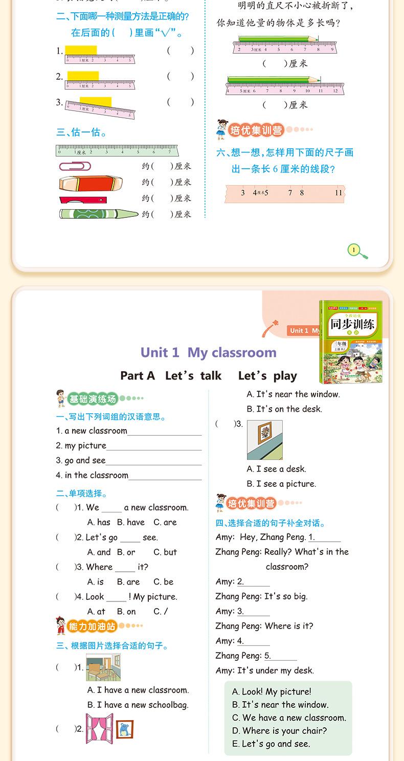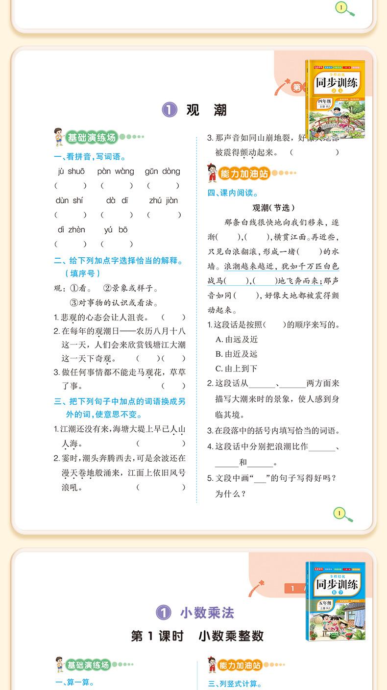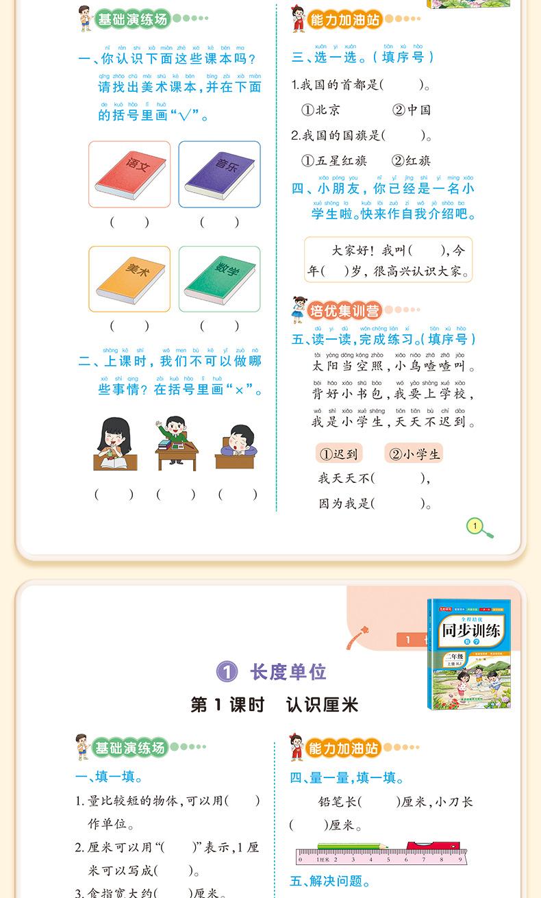 Los libros primero y segundo de los grados 1-6 están sincronizados con el entrenamiento de chino, matemáticas e inglés, una lección y una práctica de entrenamiento especial.