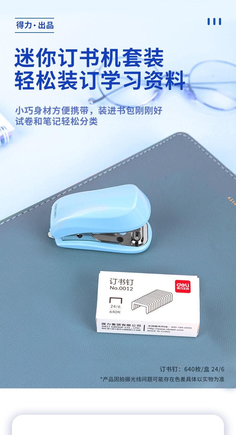 Grapadora Deli 0255 para estudiantes, mini grapadora portátil pequeña que ahorra trabajo, grapadora de encuadernación