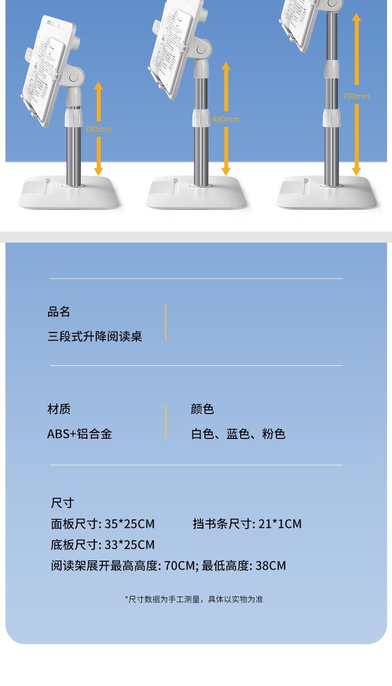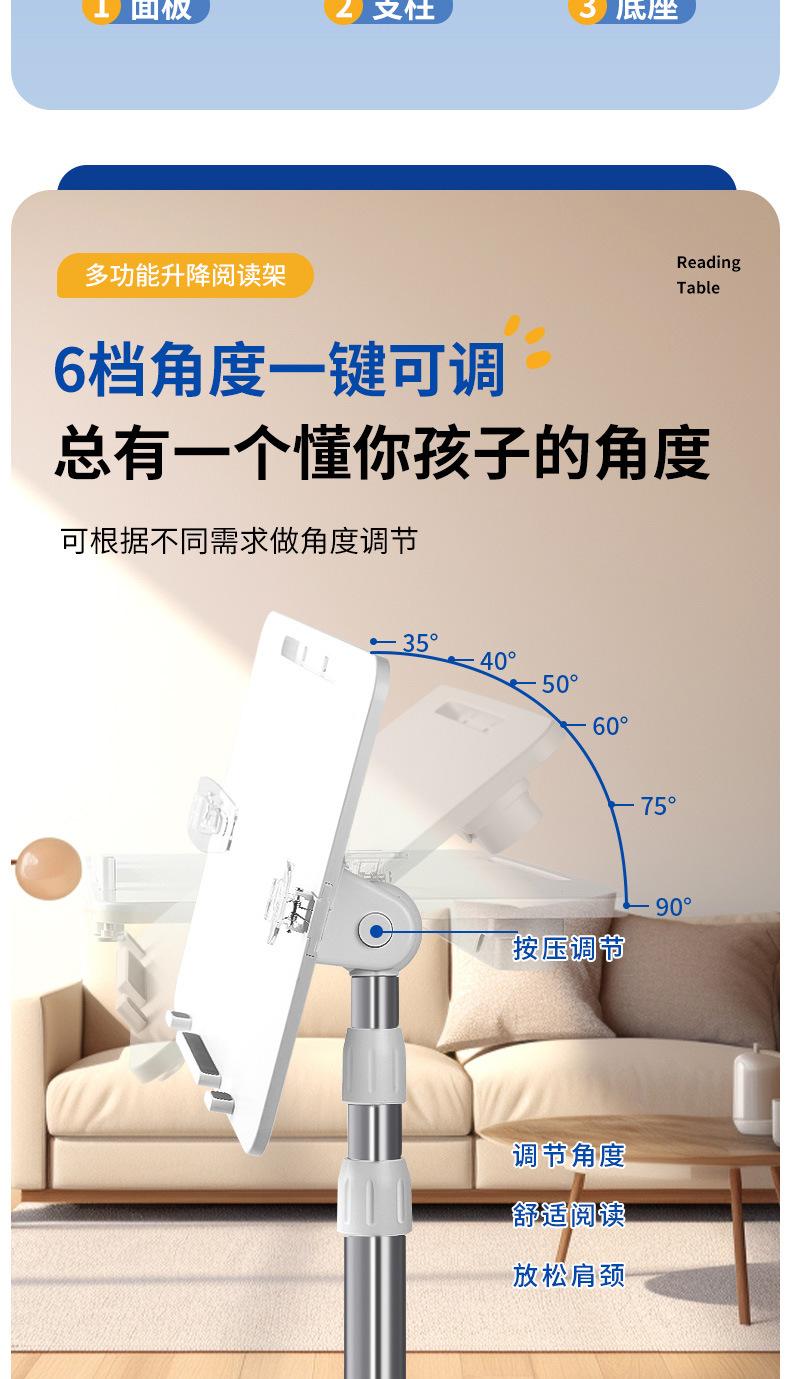 Soporte de lectura ajustable para estudiantes, multifunción, para escribir, aprender a leer, estantería de tres secciones de aleación de aluminio, soporte de lectura de piso