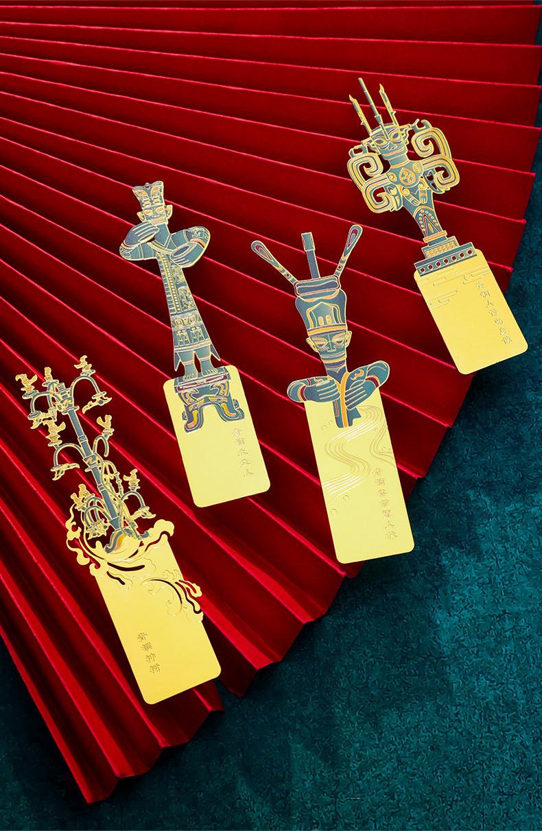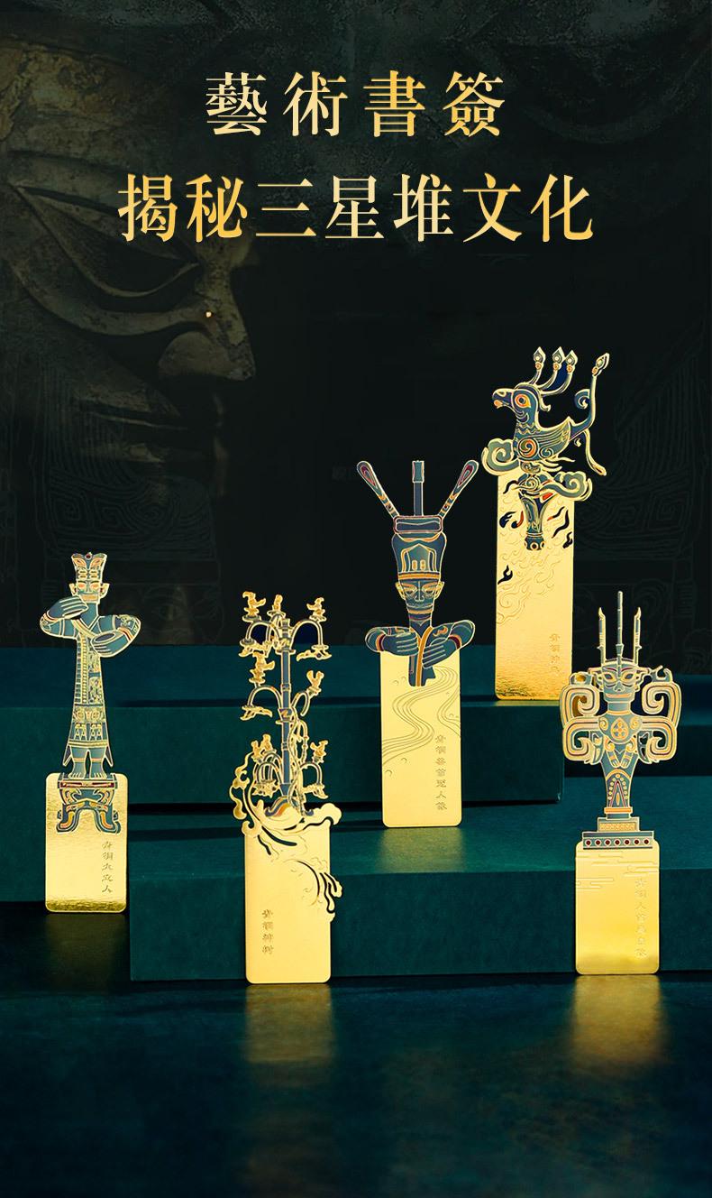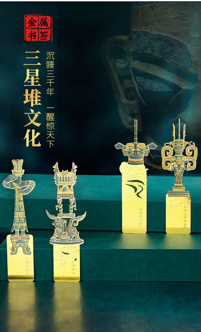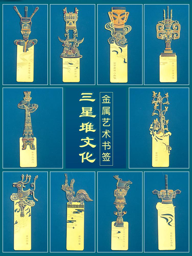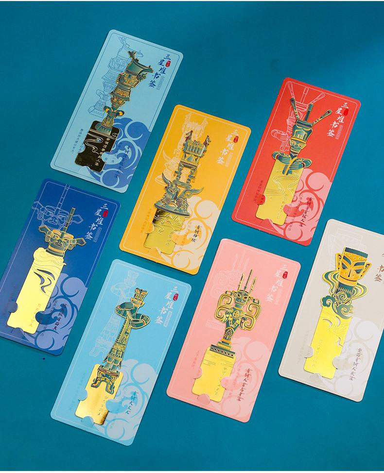 New Sanxingdui Bookmark-Crown Wear Vertical Mask, New Sanxingdui Bookmark-Gold Face Bronze Head, New Sanxingdu...