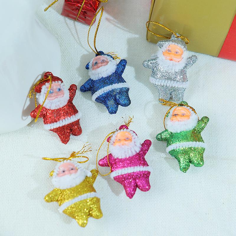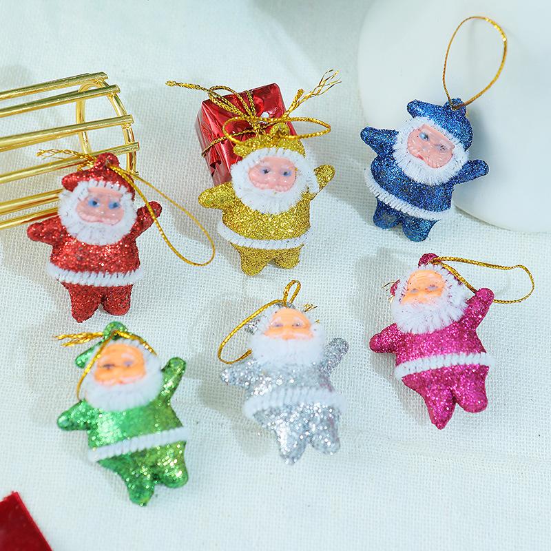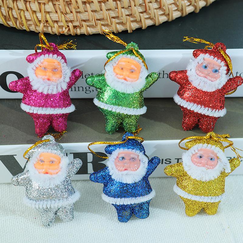 Nuevo mini colgante de Papá Noel para fiestas navideñas, decoración para árbol de Navidad, adornos colgantes, muñeco navideño de color dorado en polvo.