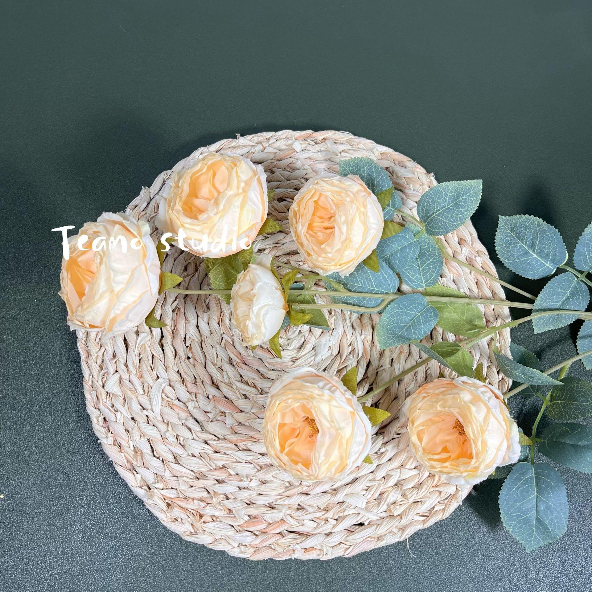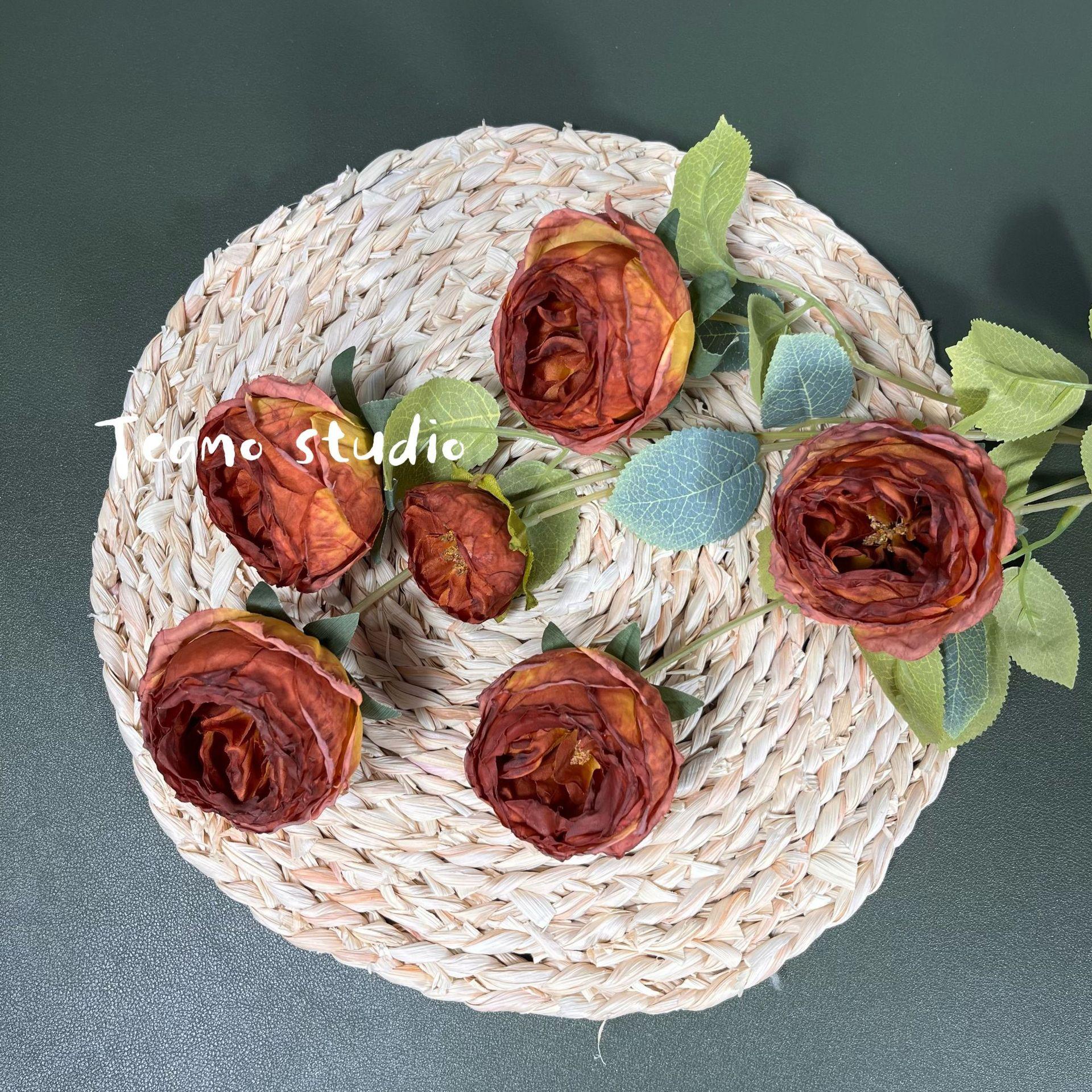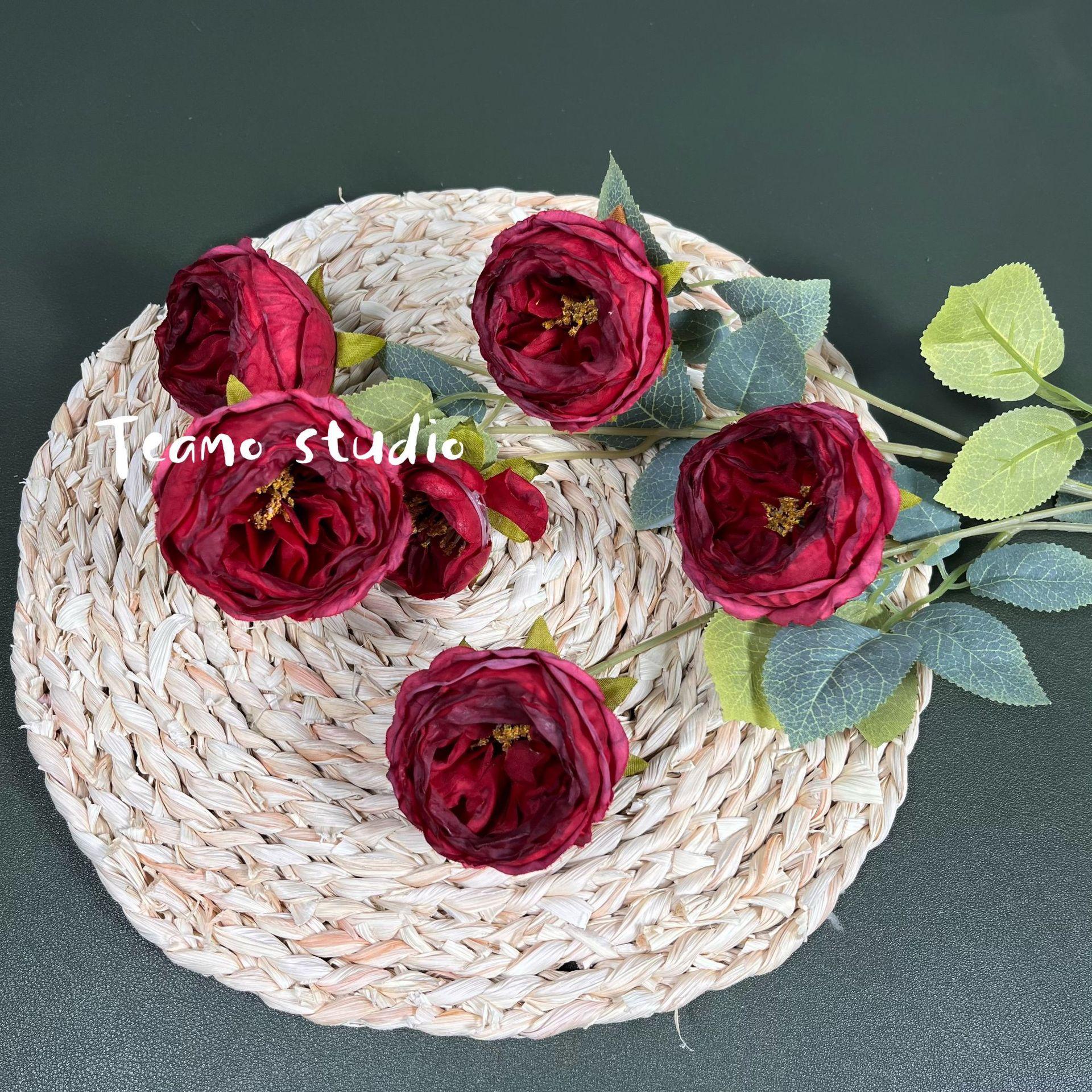 Nuevo estilo de flor artificial de múltiples cabezas Austin rosa roja decoración de boda Rosa terminada arreglo de compromiso al por mayor