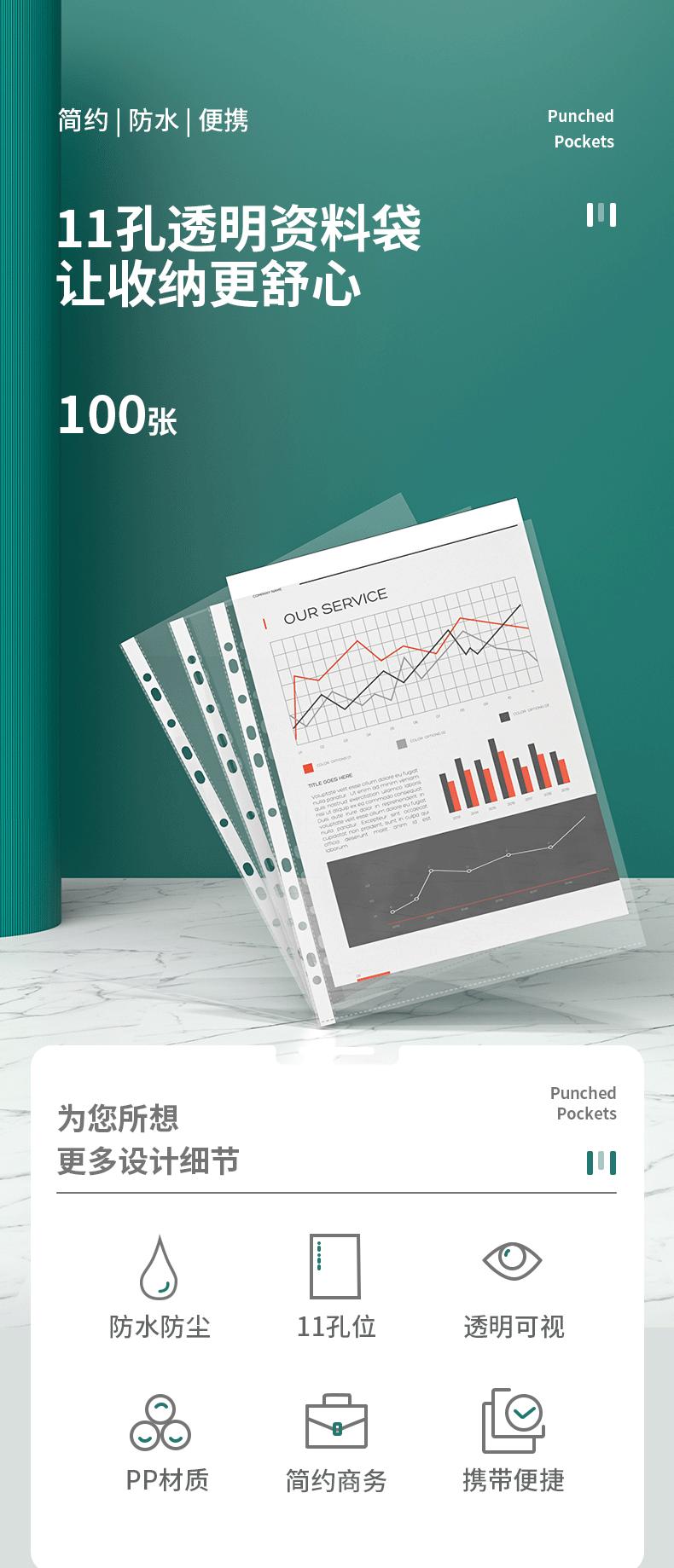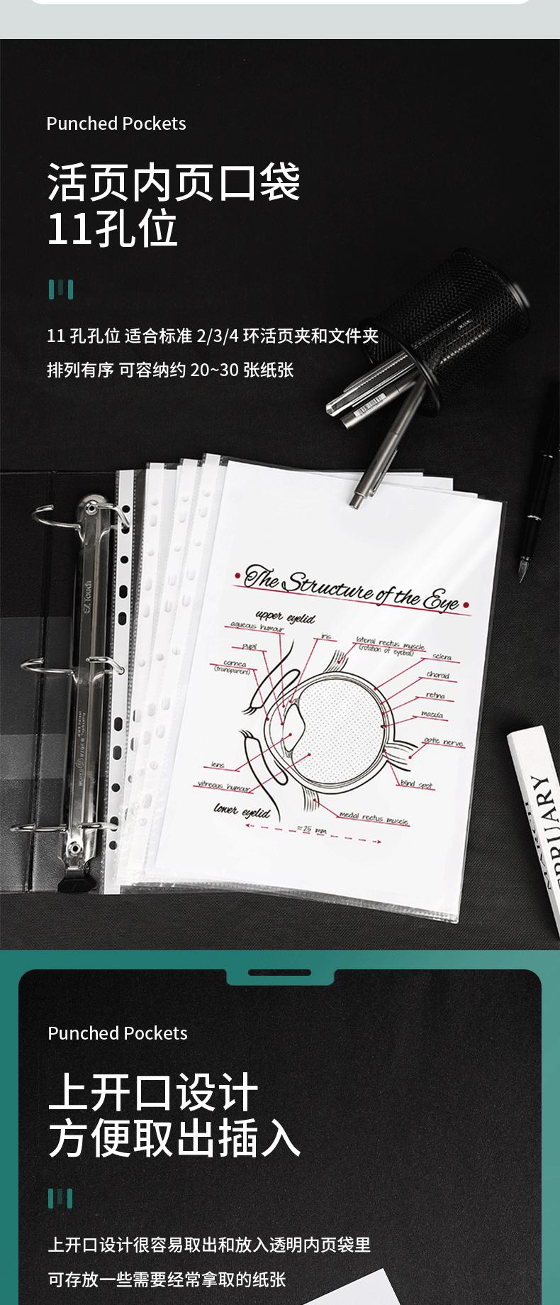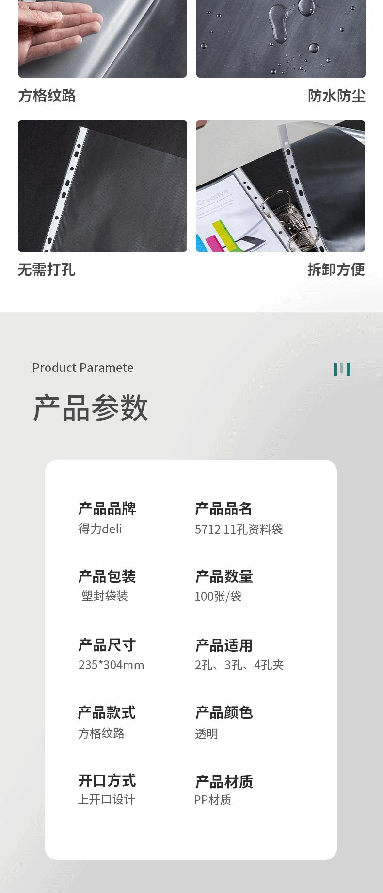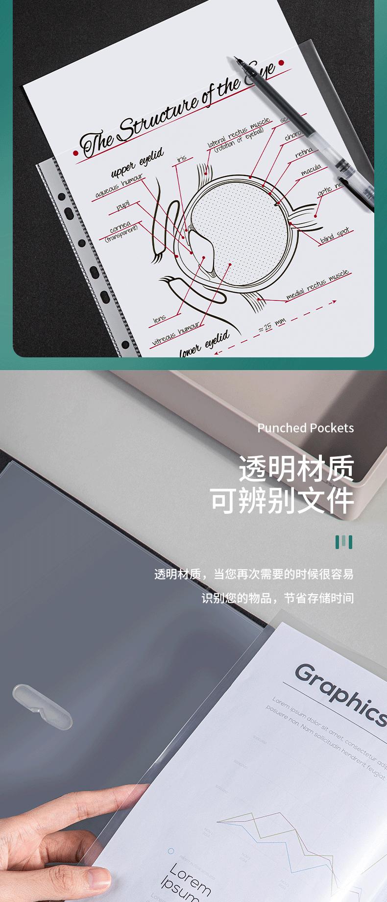 Deli 5712_11 Kit de Información de Agujeros Cubierta Protectora Transparente A4 Kit de Información de Papel de Prueba Bolsa para Documentos Papelería de Oficina