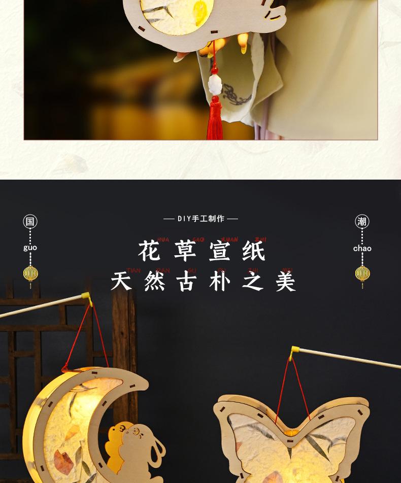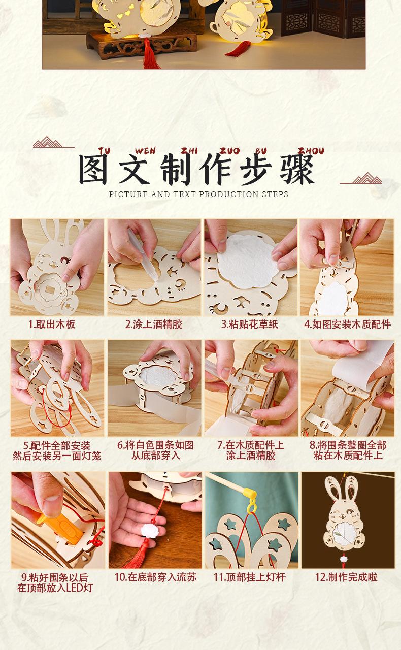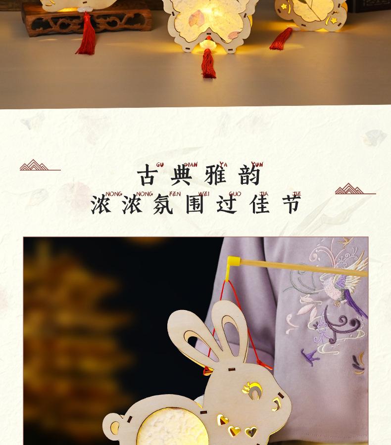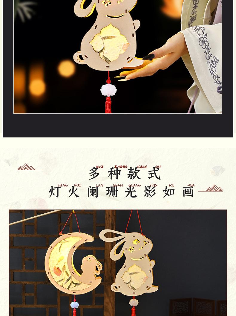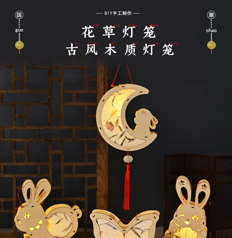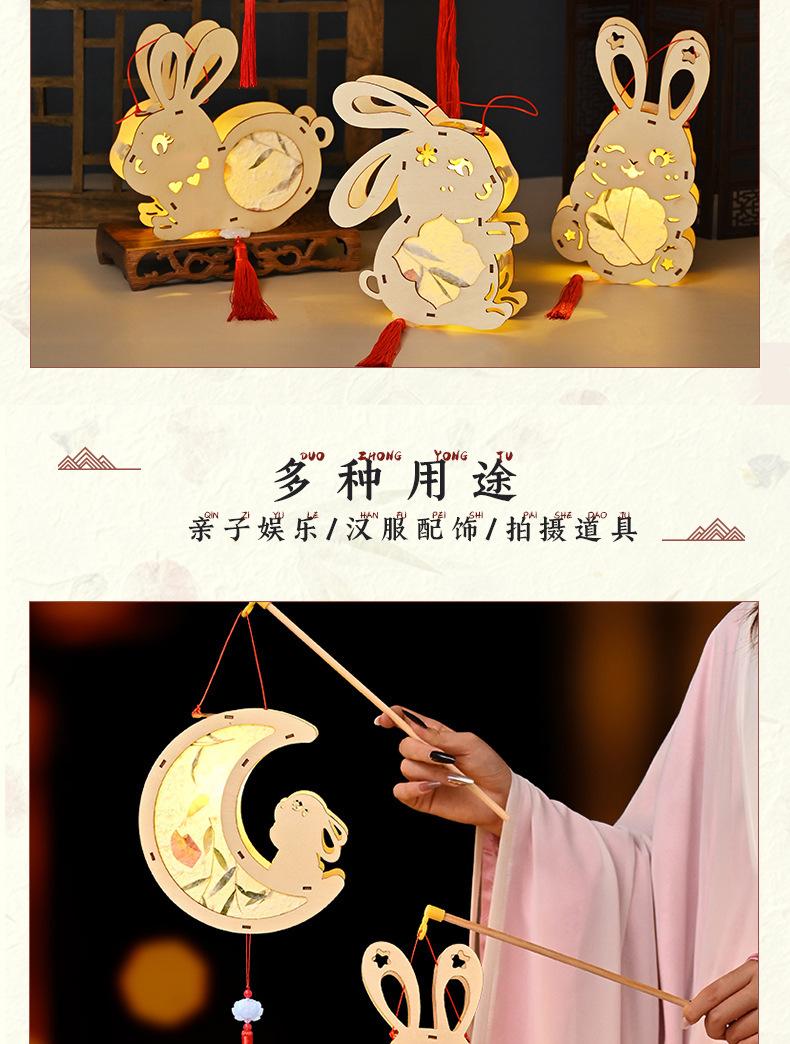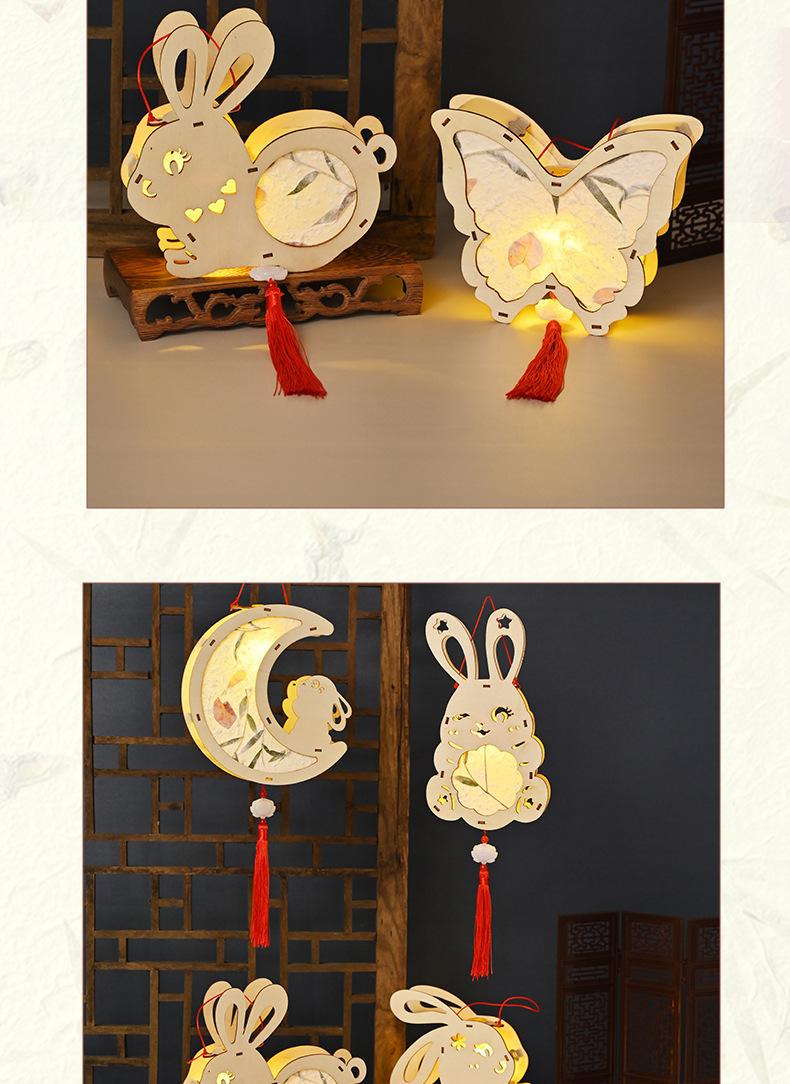 Farol de madera para el Festival del Medio Otoño, hecho a mano, para niños, portátil, con forma de conejo, antiguo y luminoso.