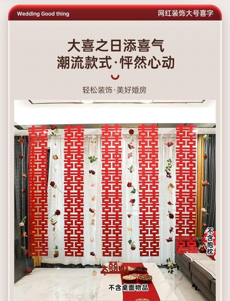 Long strip [2 classical happiness] comes with 4 sticky hooks, Long strip [2 pieces of zhengxi] comes with 4 st...