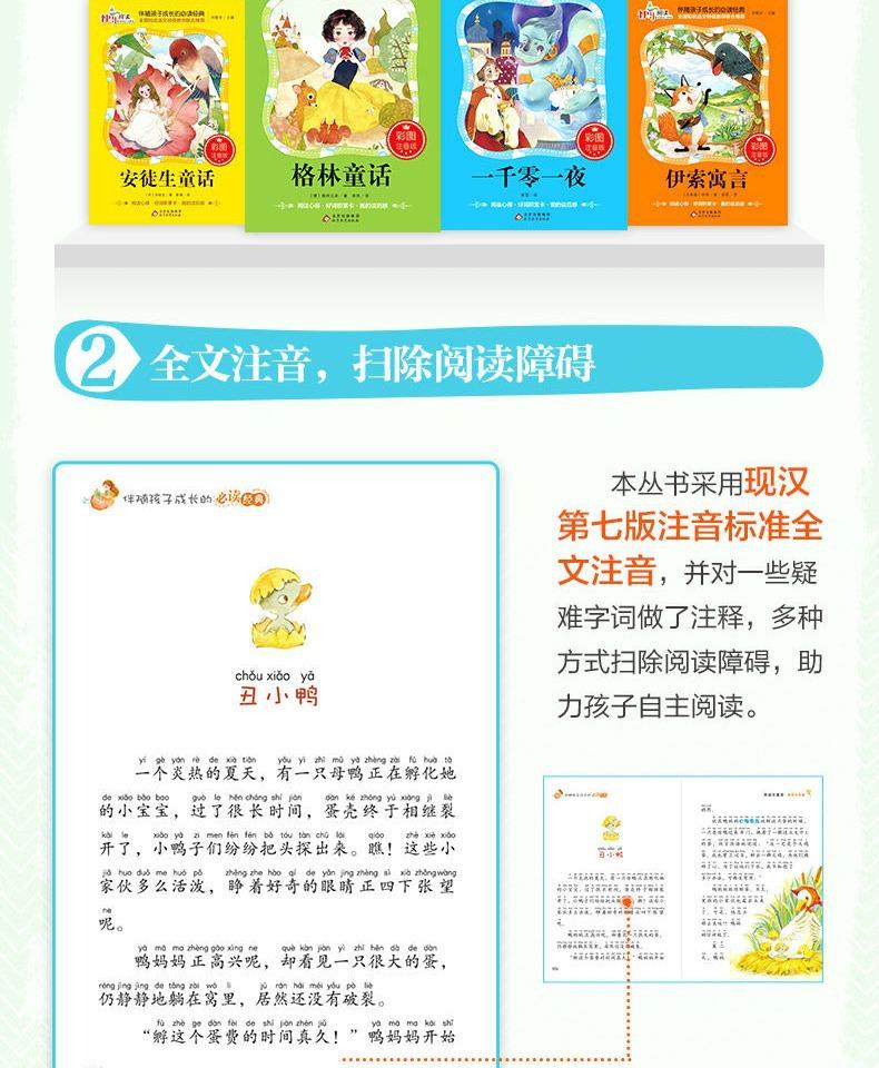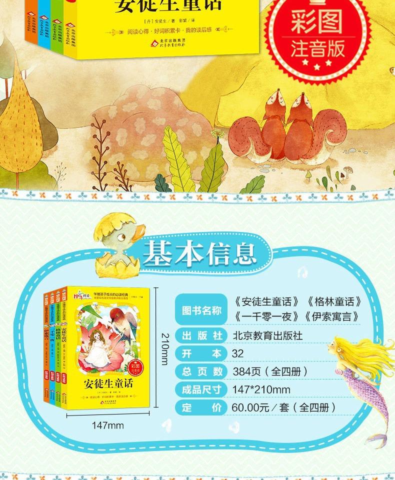 Cuentos de hadas completos de Andersen Grimm Las mil y una noches Fábulas de Esopo Tabla de colores Edición Zhuyin Estudiantes de primaria Un año