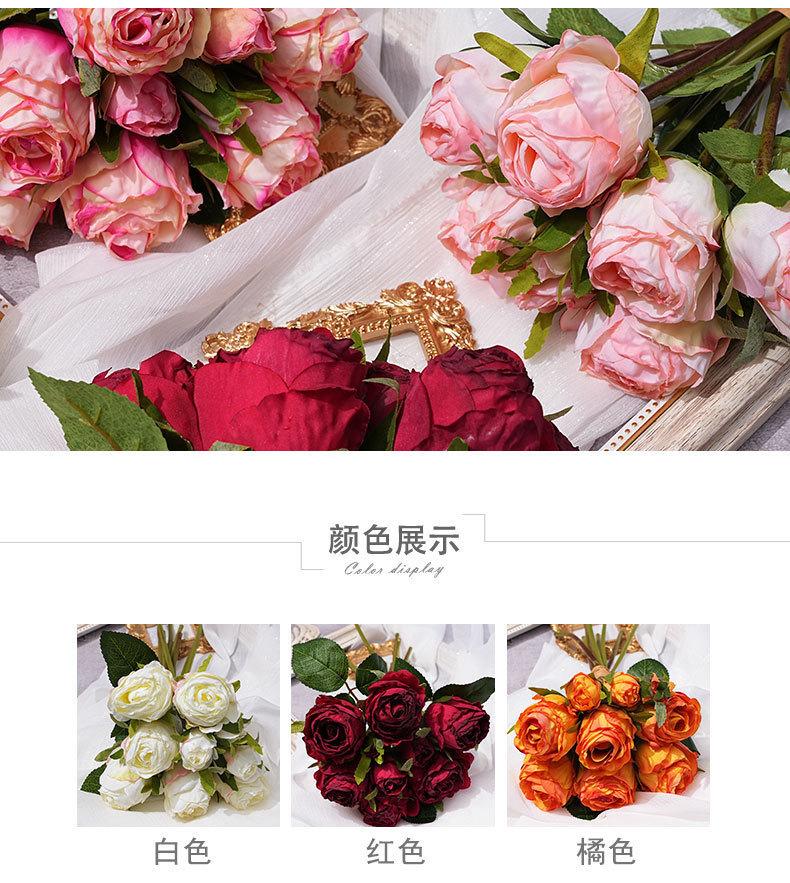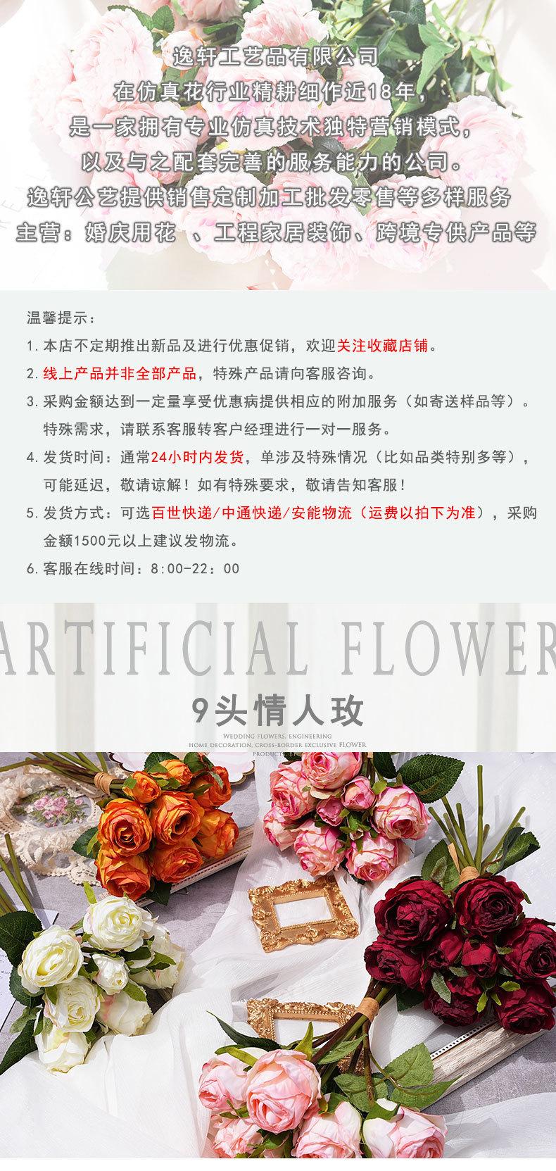 Ramo Falso de Rosas Lover de 9 Cabezas Simuladas Flor Artificial de Seda Arreglo Floral de Plástico Decoración de Boda Decoración de Sala de Estar