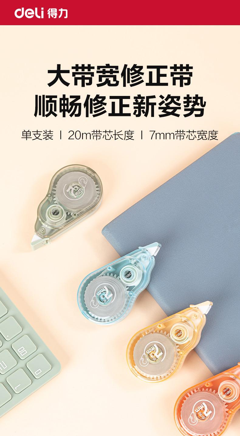 Cinta correctora Deli 8149 de 5 mm x 12 m para estudiantes, suave y continua.