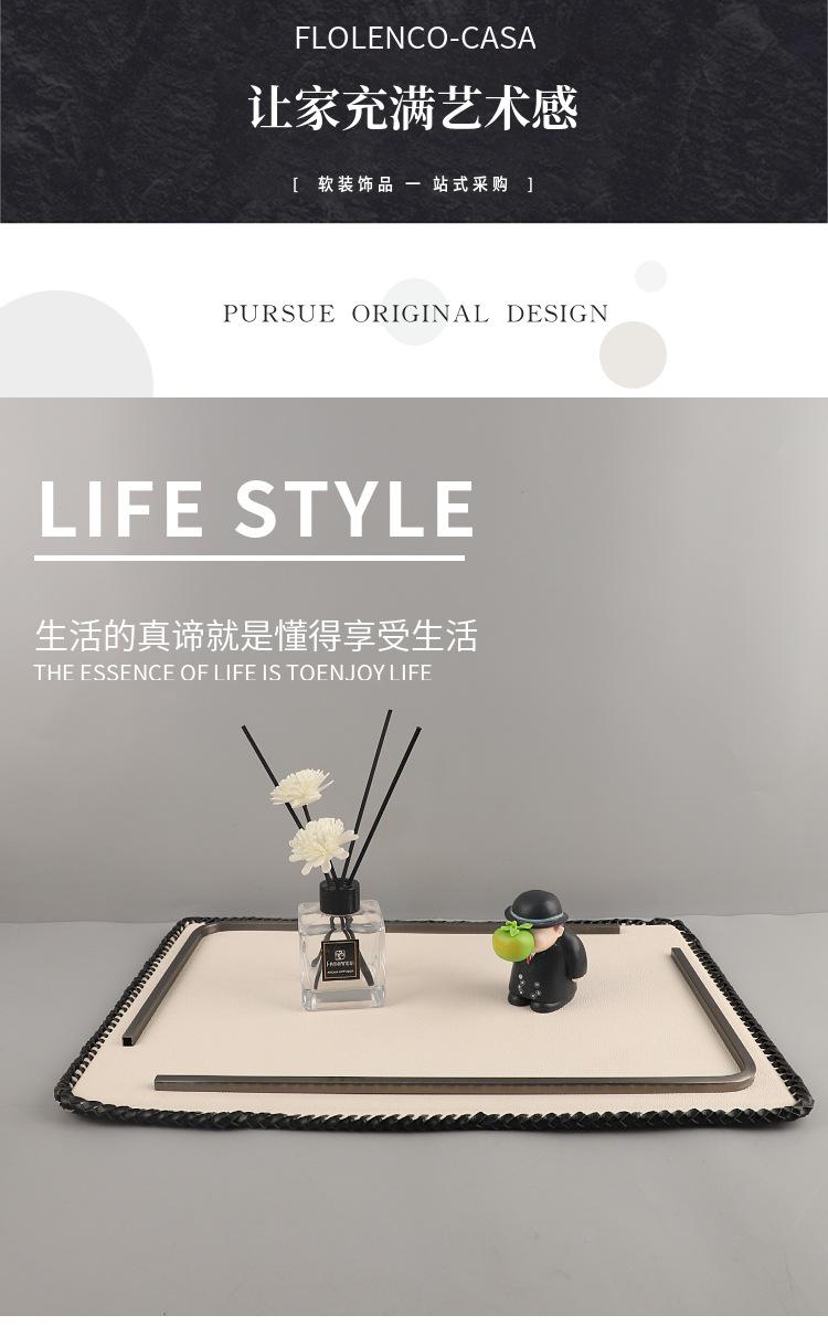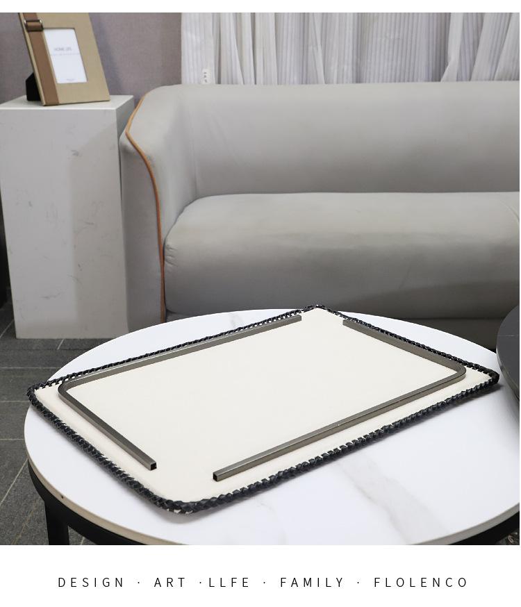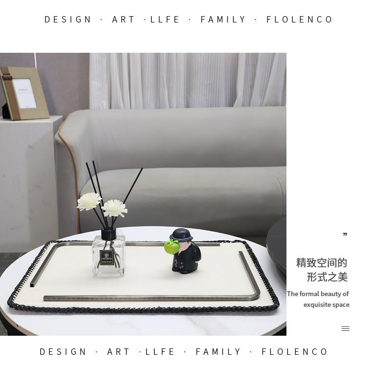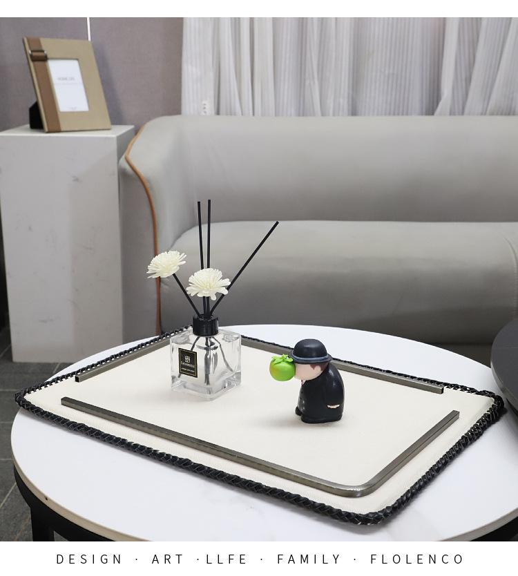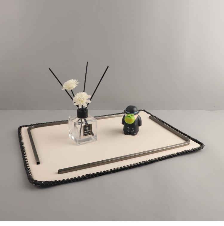 Bandeja rectangular de aromaterapia de cuero metálico creativo nórdico para sala de estar, dormitorio, entrada, hotel, decoración del hogar