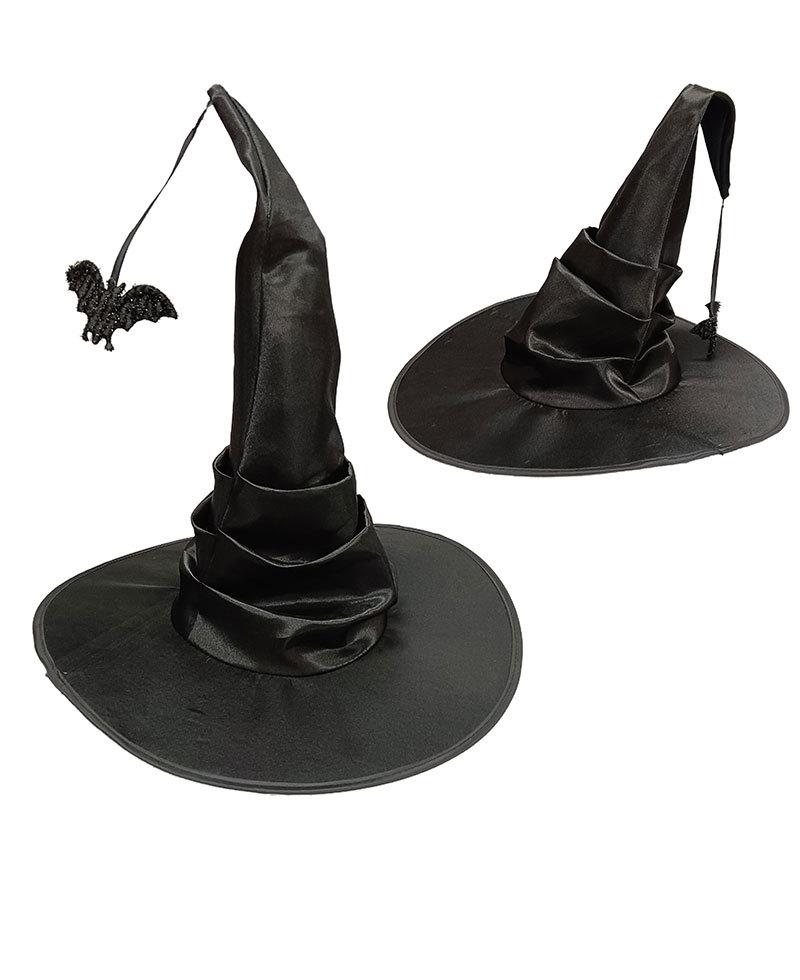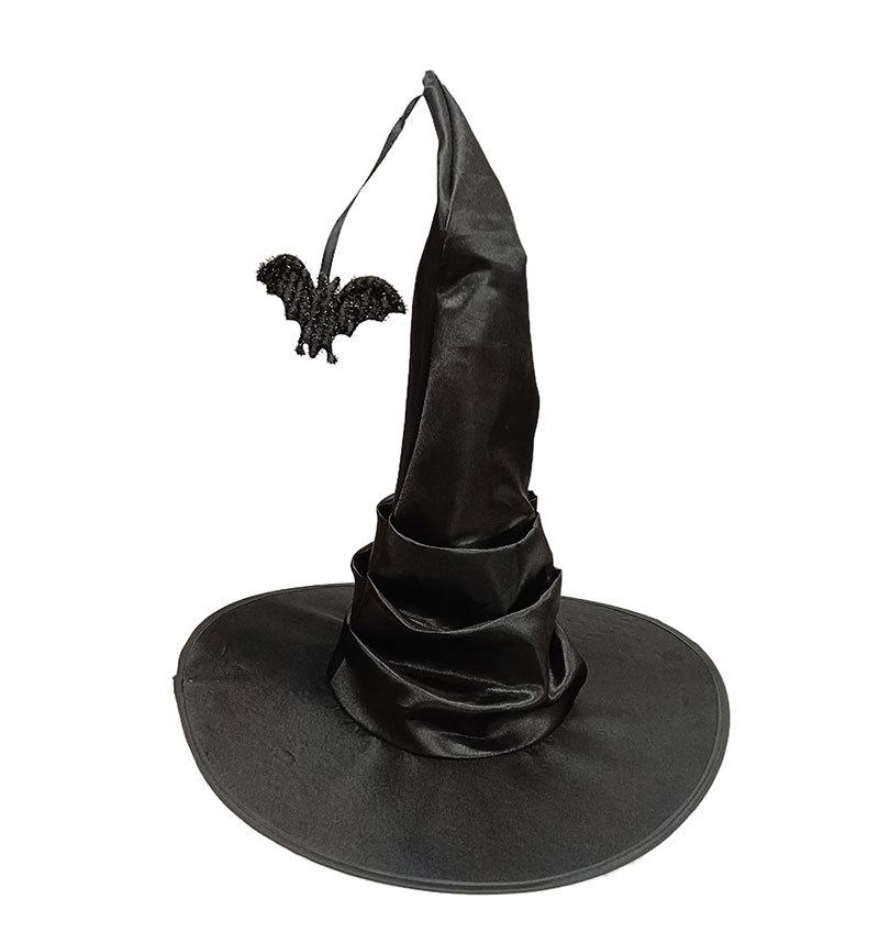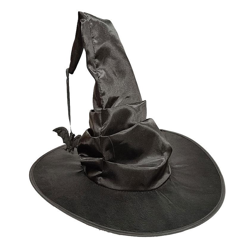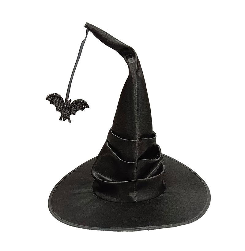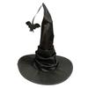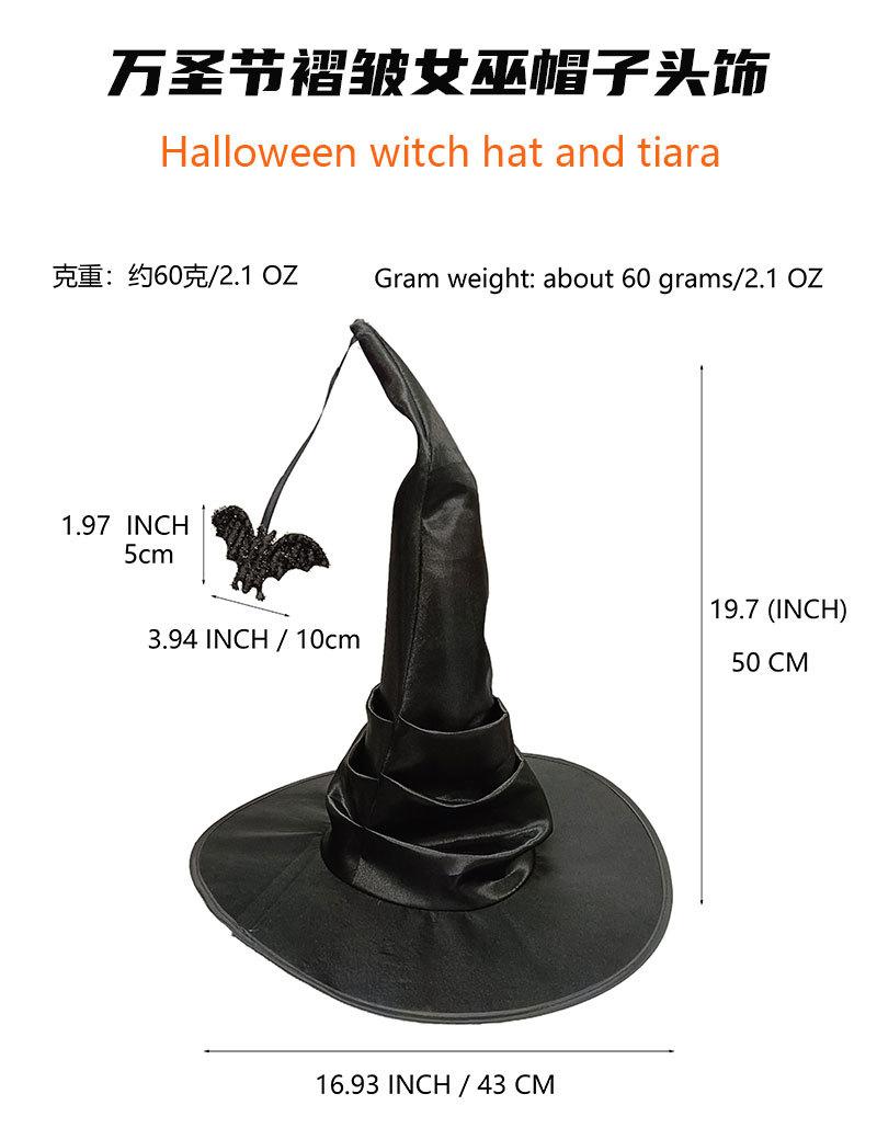 Sombrero de bruja negro de Halloween, tocado, sombrero de mago, sombrero de bruja murciélago, sombrero negro plisado, sombrero de copa puntiagudo, accesorios para el cabello