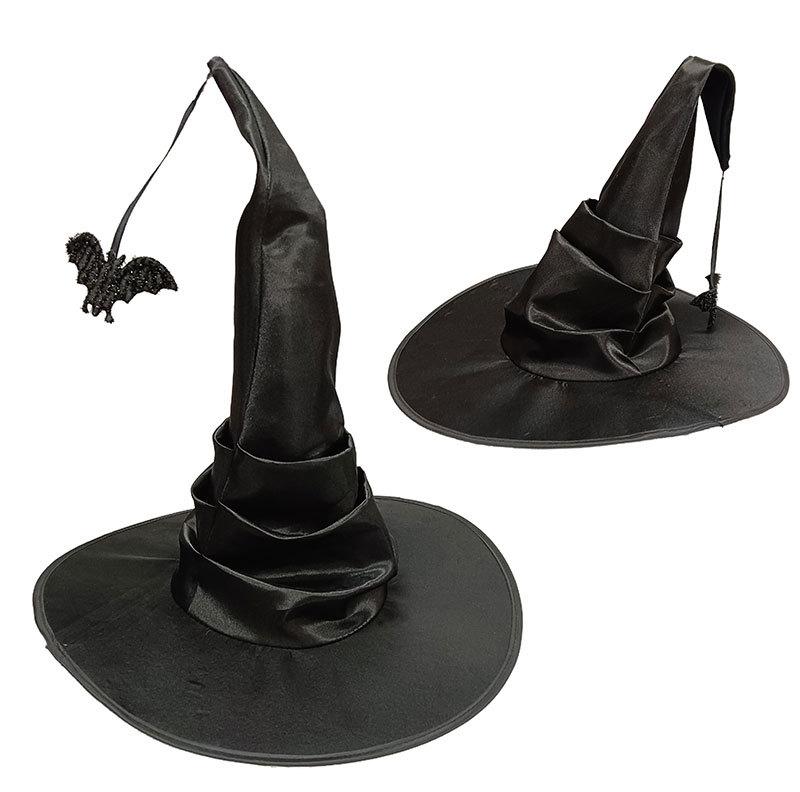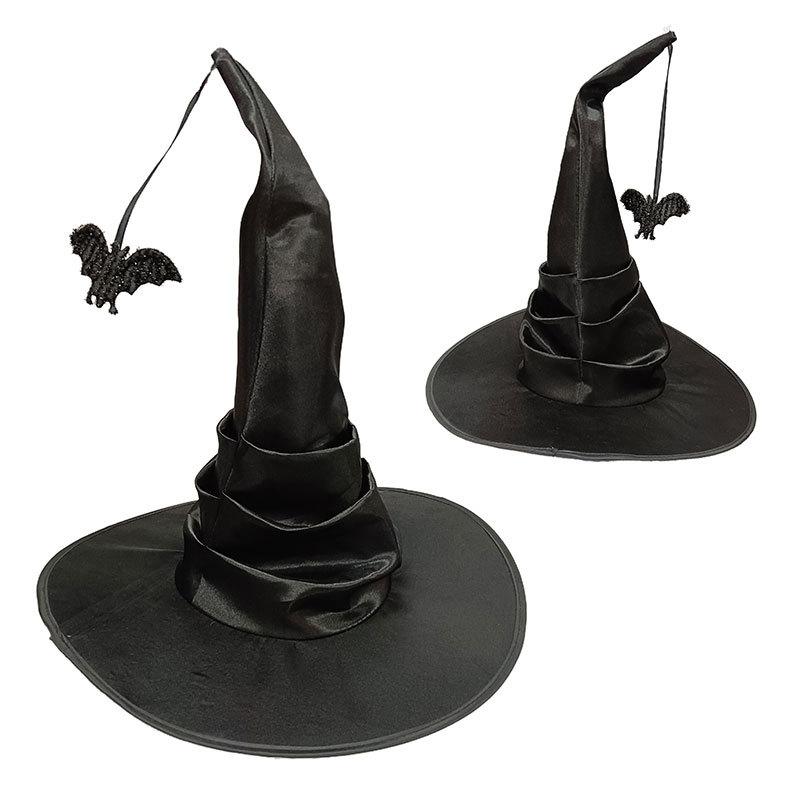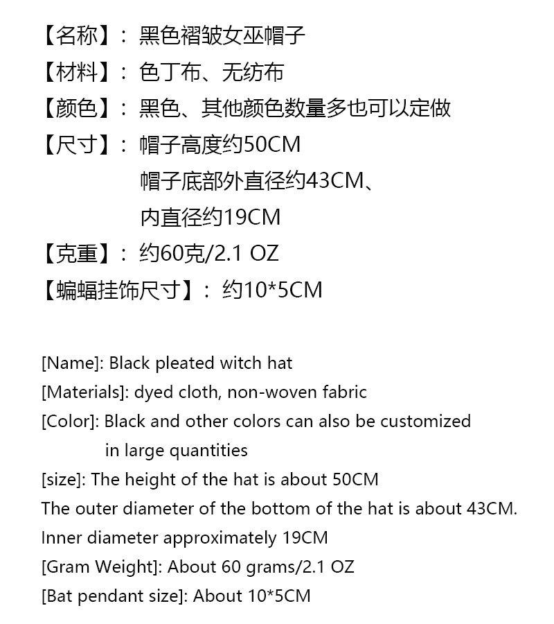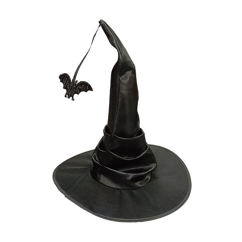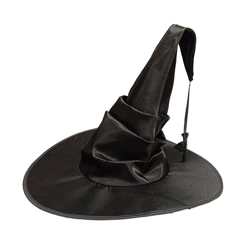 Sombrero de bruja negro de Halloween, tocado, sombrero de mago, sombrero de bruja murciélago, sombrero negro plisado, sombrero de copa puntiagudo, accesorios para el cabello