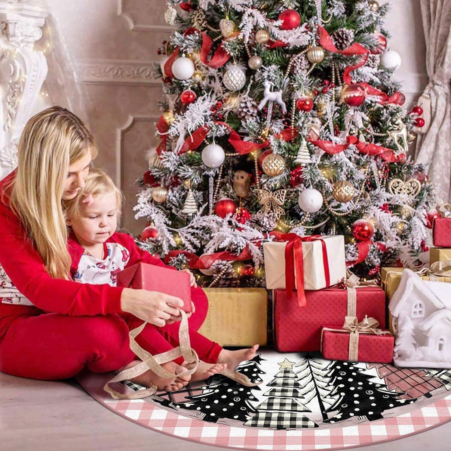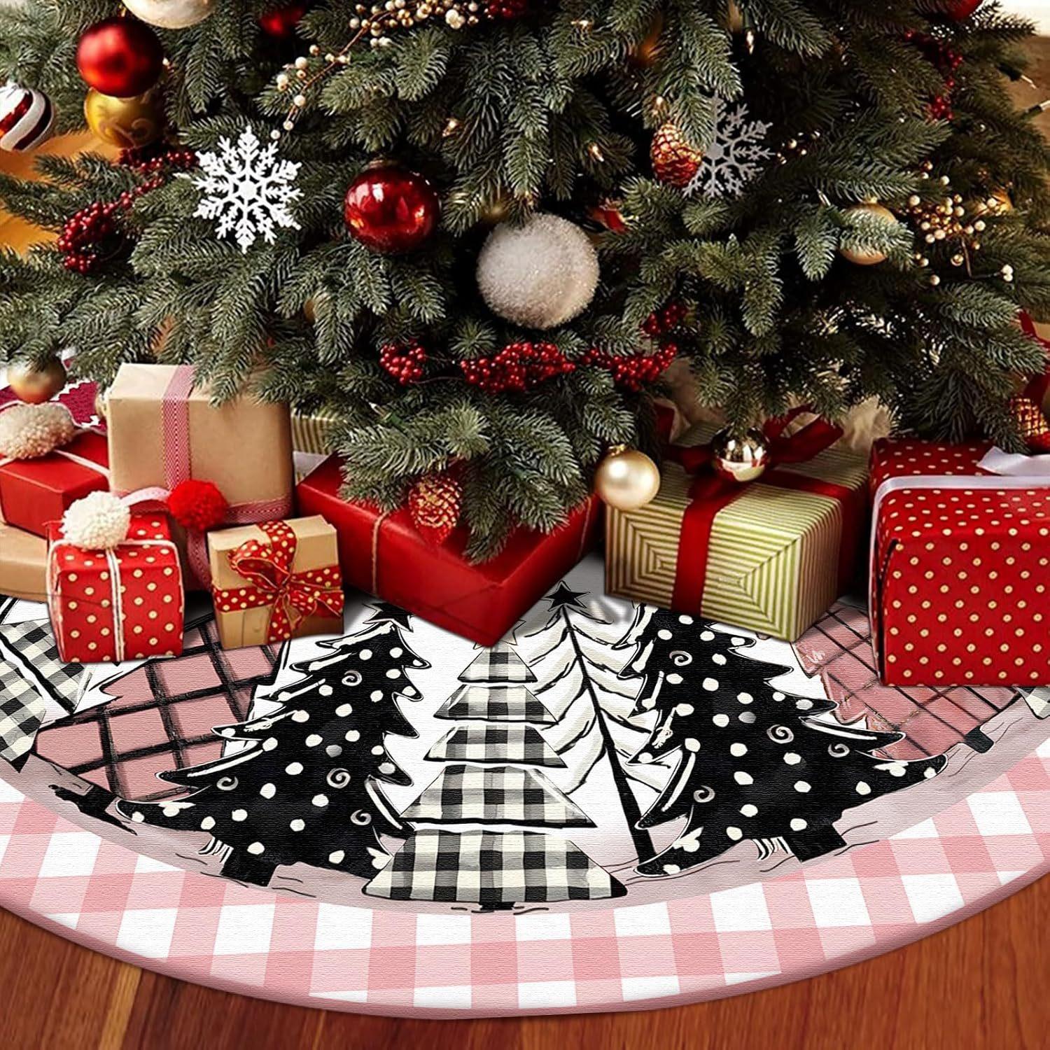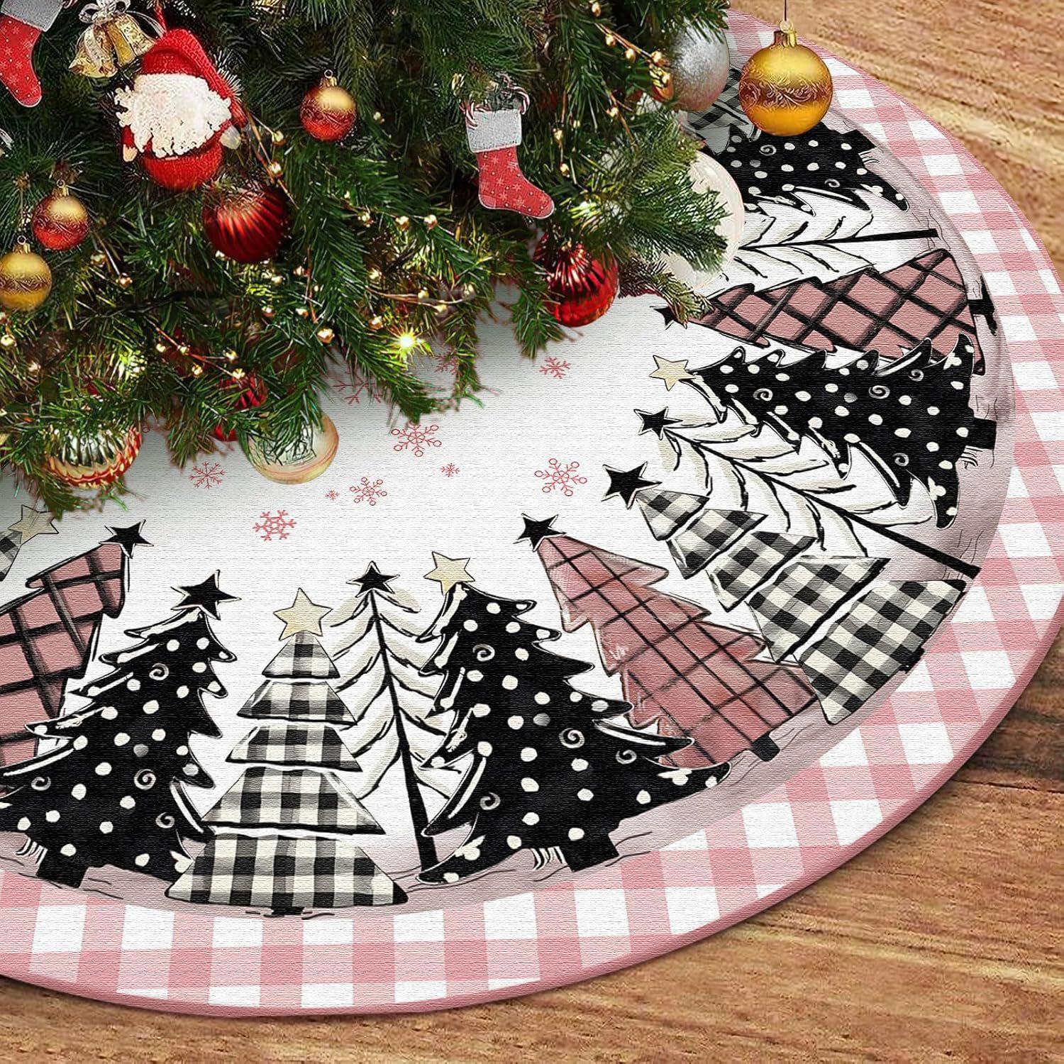 Falda de árbol de Navidad transfronteriza 2024, creativa y exquisita, con estampado, delantal decorativo para la parte inferior del árbol, decoraciones navideñas