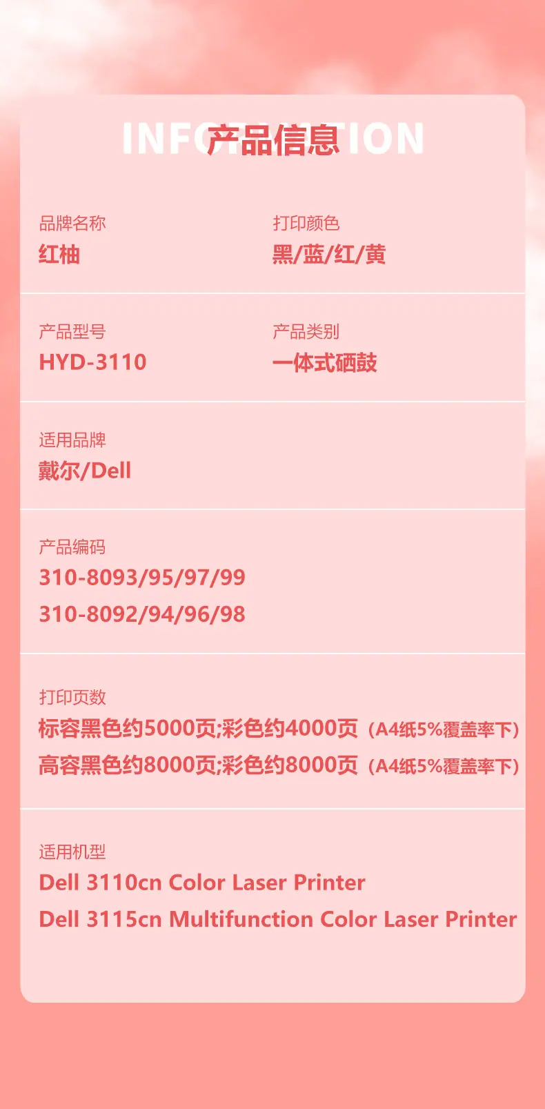 Adecuado para Cartucho de Tóner Dell 3110Cn Cartucho de Tinta Dell 3130Cn Impresora Impresora Cartucho de Tóner 310-8092