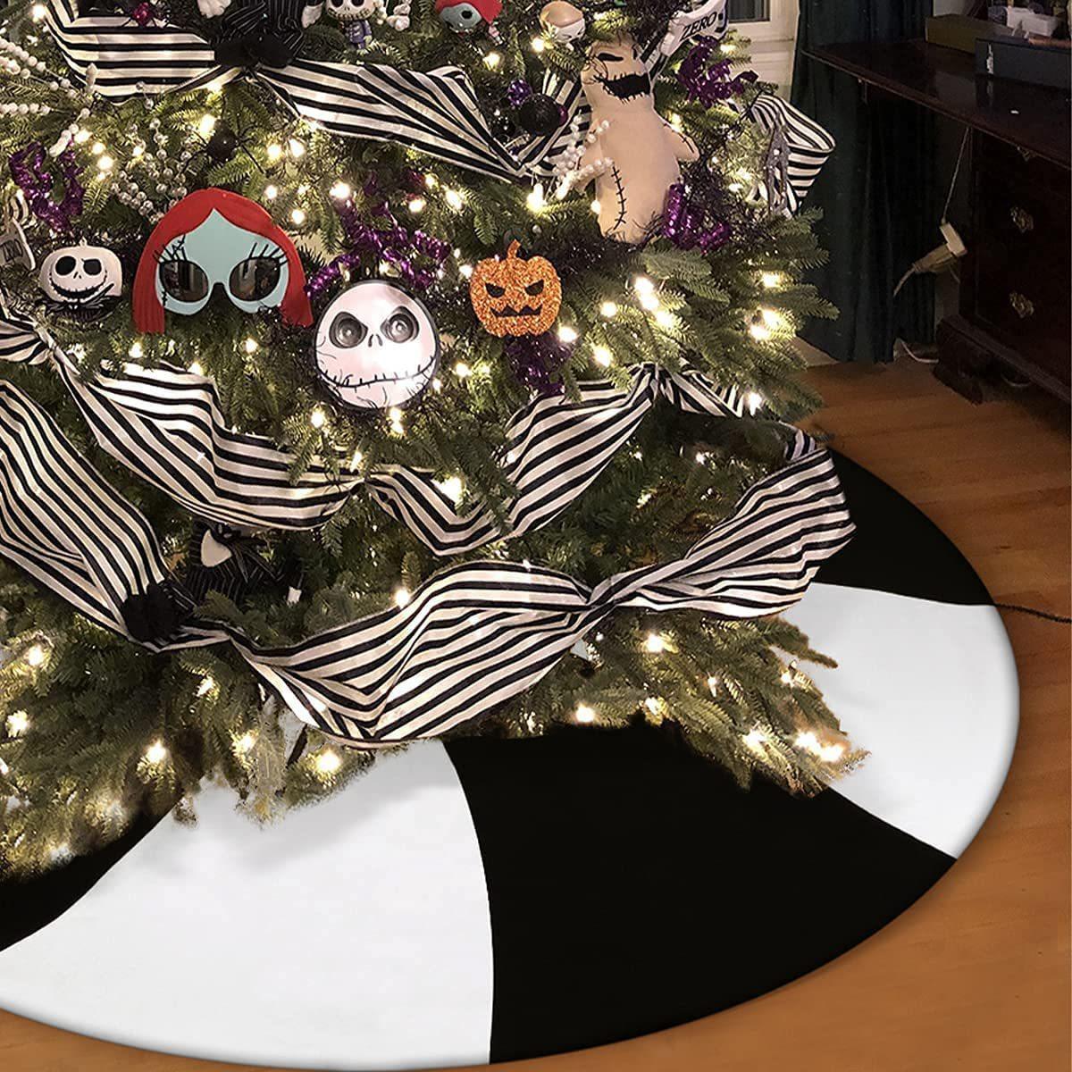 Vestido de árbol de Navidad con diseño de piruleta en blanco y negro para Halloween y Navidad, creativo y exquisito, de felpa corta y doble capa.