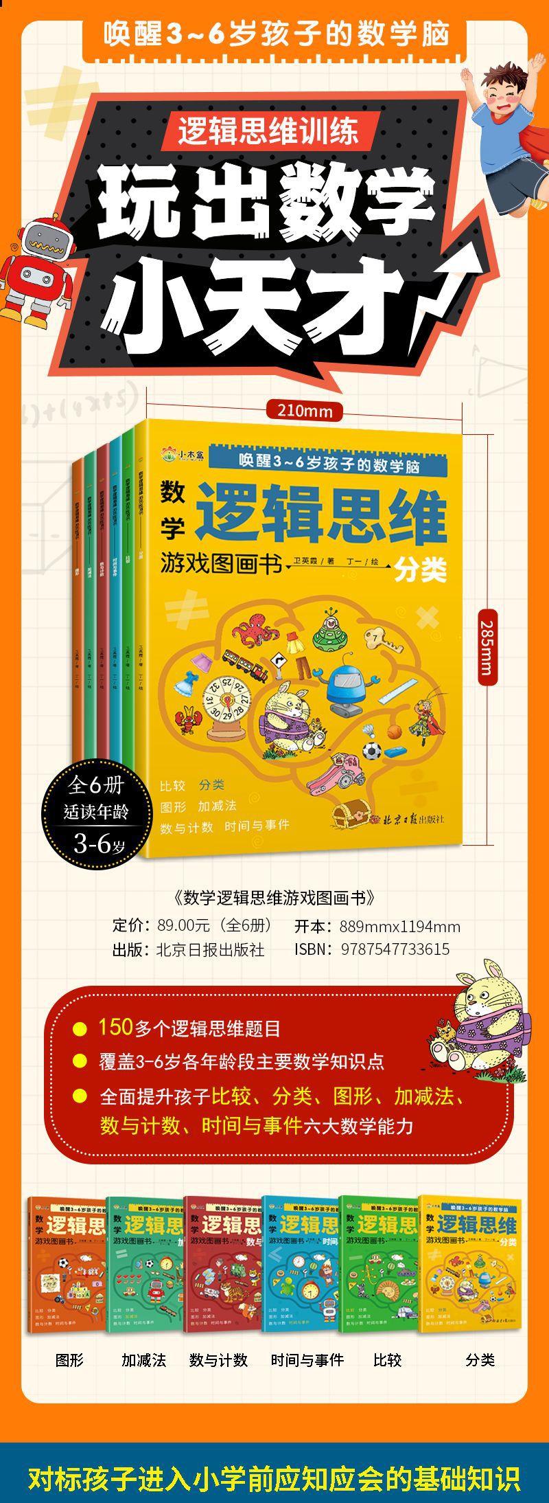 Libro ilustrado de juego de pensamiento lógico matemático, conjunto completo de 6 volúmenes de iluminación matemática para niños de 3 a 6 años, rompecabezas para enseñanza temprana