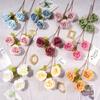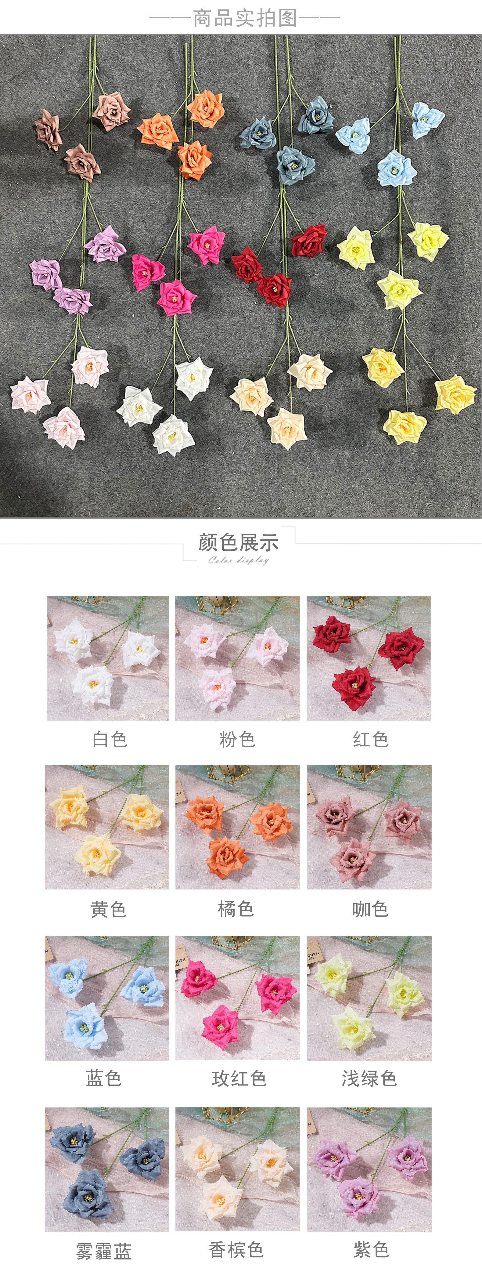 Rosa artificial de 3 cabezas, flor de seda, flor artificial al por mayor, flores para salón de bodas, adornos florales de alta gama para sala de estar
