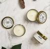Vela perfumada en lata de oro negro con aceite esencial de plantas, sin humo, cera de soja natural, regalo de mano
