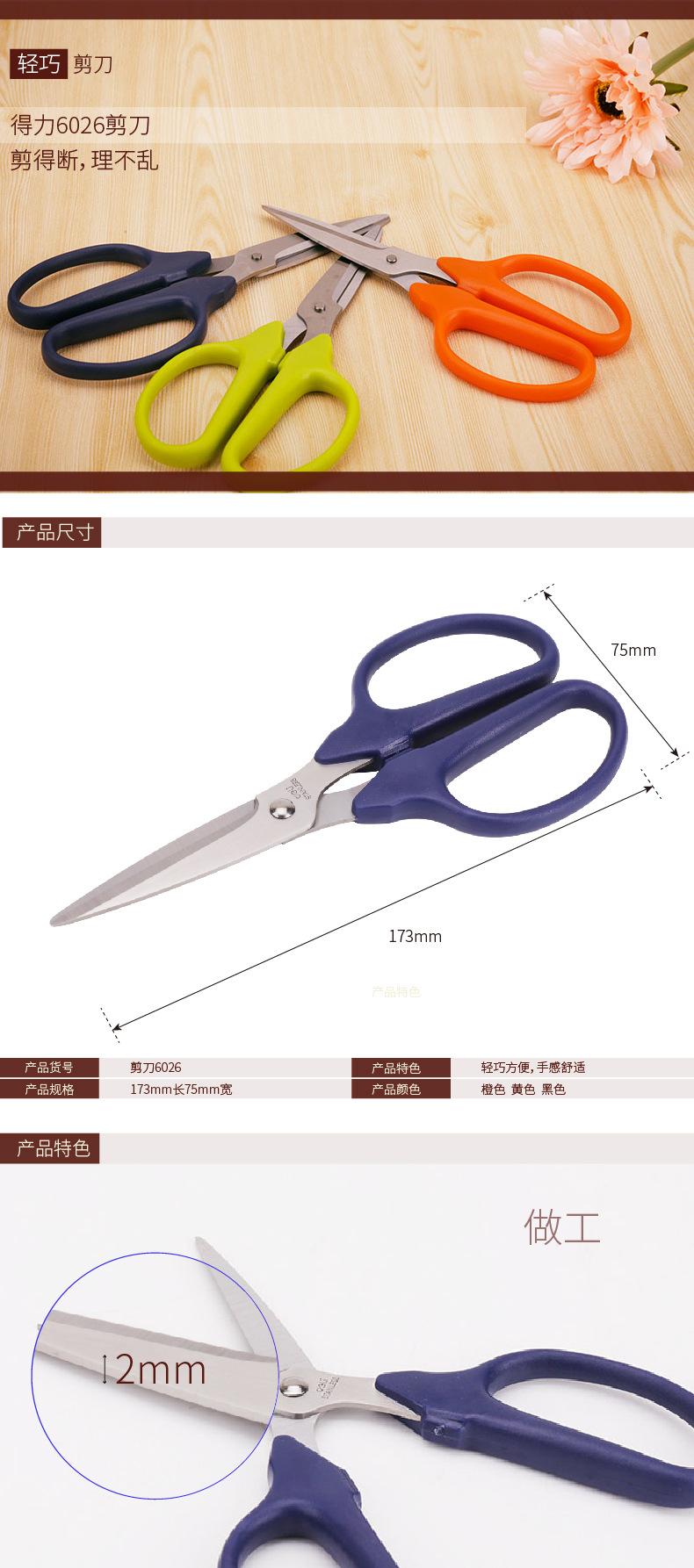 Tijeras Deli 6026, medianas, para oficina, corte de papel, hechas a mano, de acero inoxidable, para estudiantes, papelería, hogar, tijeras pequeñas.