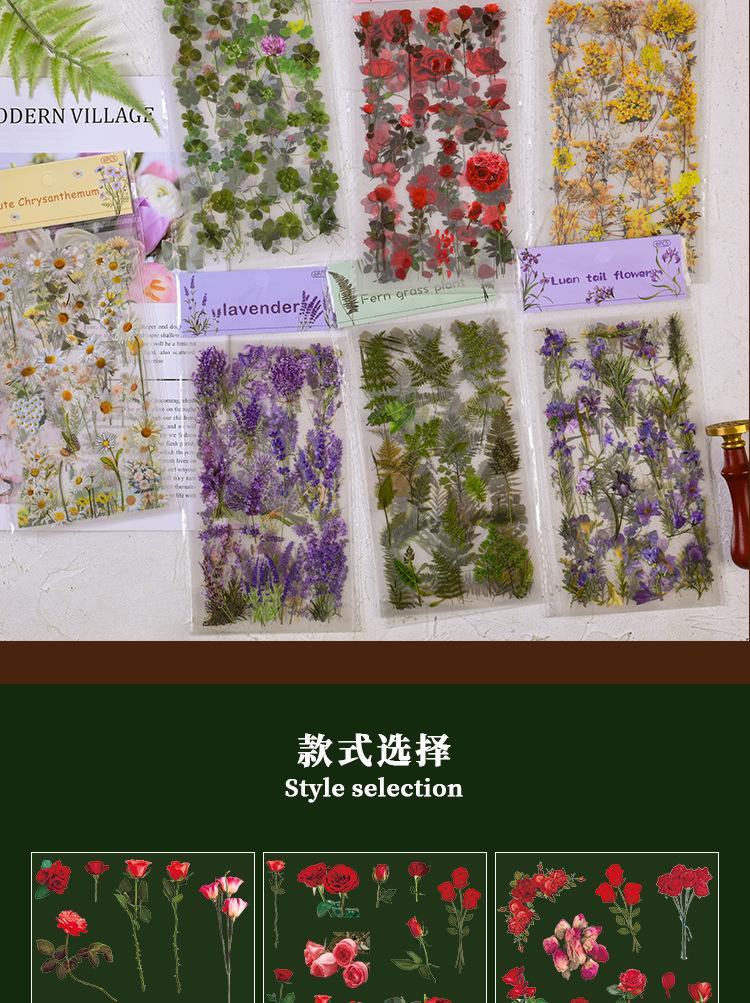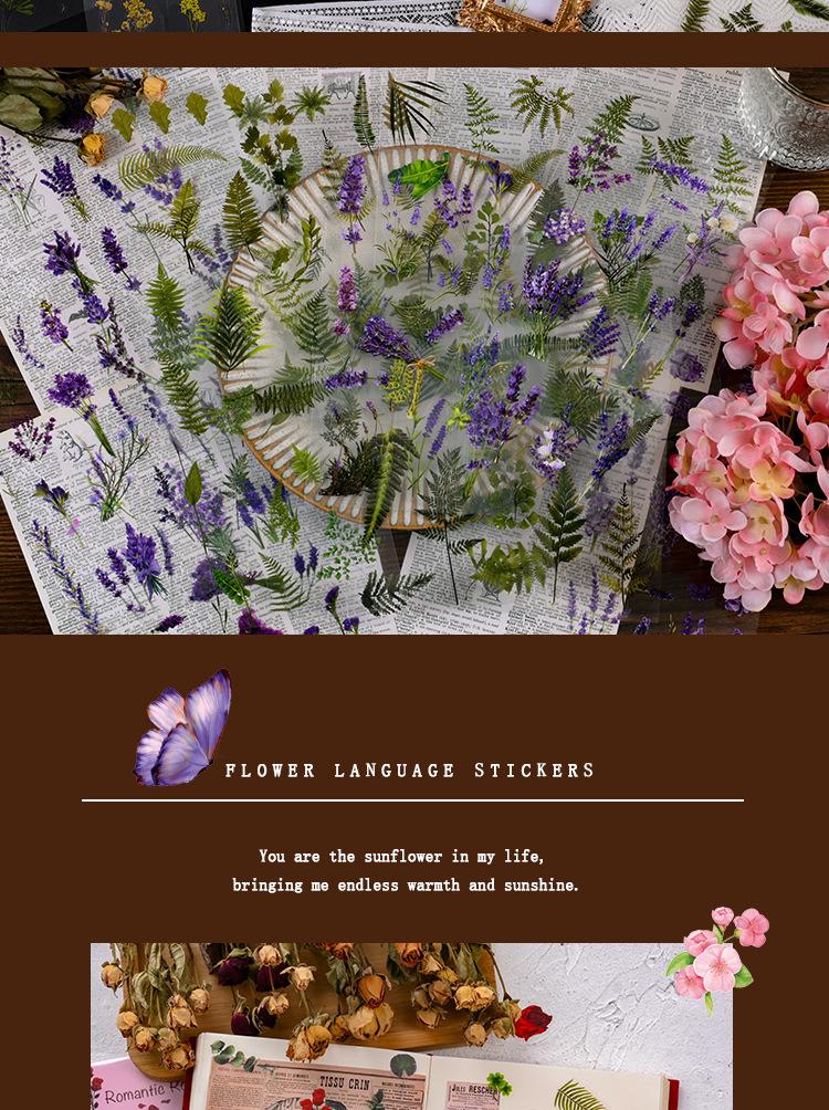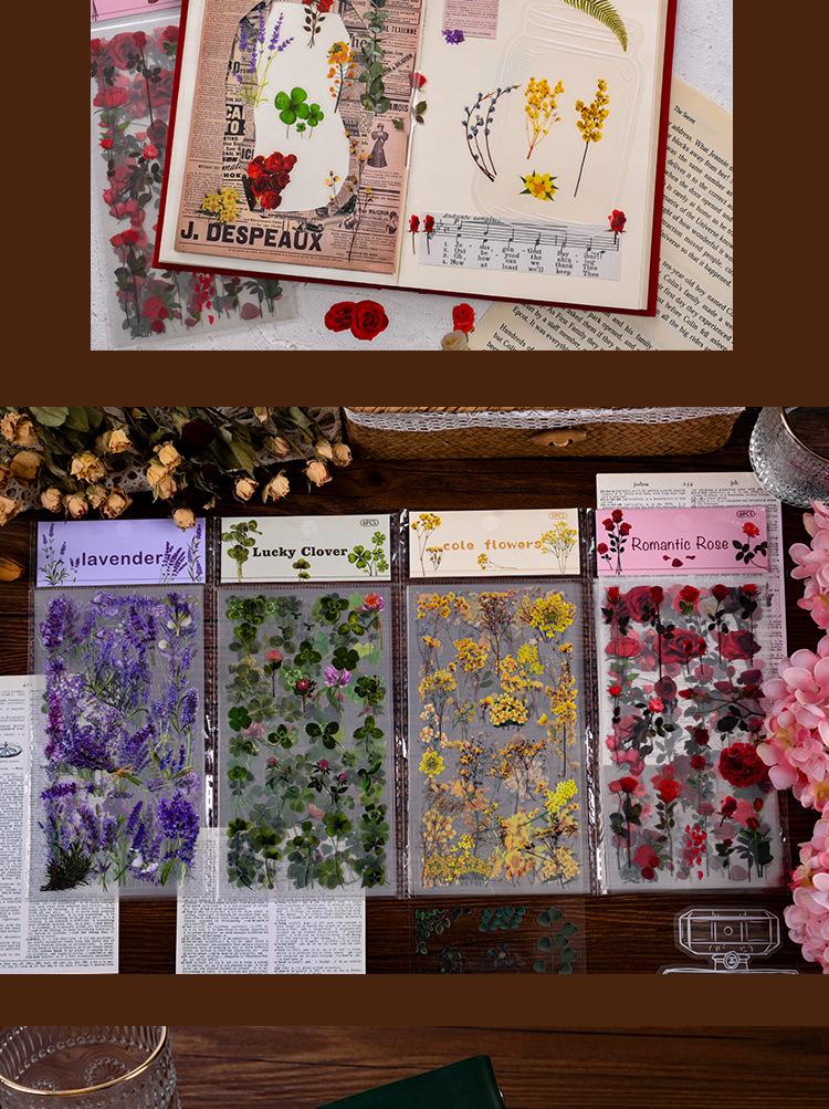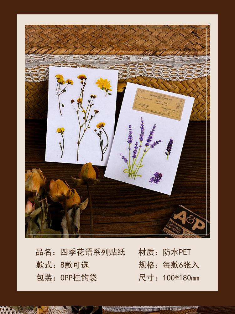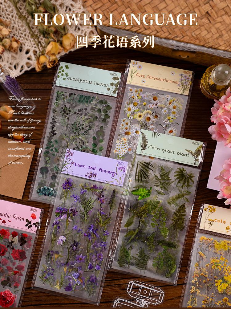 Cuatro Estaciones Lenguaje de las Flores Serie Manual Paquete de Stickers PVC Planta Flor Retro Papel de Material Manual para Niños Sticker DIY